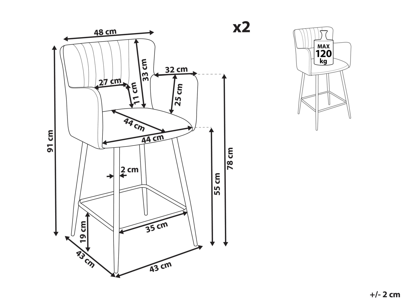 Scaune tapițate cu cotiere. Aceste scaune de bar îmbină designul retro cu accente moderne, aducând un plus de stil și funcționalitate. Șezutul capitonat, cotierele confortabile și spătarul cu detaliu decupat atrag privirile, iar tapițeria din catifea fină adaugă profunzime și luciu. Picioarele metalice negre, completează perfect aspectul elegant. Ideal pentru orice interior, acest set de scaune va aduce un aer sofisticat lângă un blat de bucătărie sau bar. Detalii: Tip de Produs: Scaun de bar. Stil: Modern. Culoare: Gri. Nuanță: Gri deschis. Material: Țesătură. Material primar: Catifea. Material secundar: Fier. Detalii material picioare: Metal. Material scaun: Țesătură. Compoziția materialului: 100% Poliester. Cotiere: Da. Finisaj: Acoperire pulverizată. Stivuire: Nu. Dimensiuni: Înălțimea cotierei: 78 cm. Adâncime: 44 cm. Grosimea scaunului: 5 cm. Înălțimea scaunului: 55 cm. Lățime: 51 cm. Înălțime: 91 cm. Suprafața de ședere: 44x44 cm. Greutate: 7 kg. Capacitatea de greutate: 120 kg. Oferta incude: 2 x Scaun de bar. Caracteristici cheie: Cotiere confortabile, Suprafață de șezut largă și confortabilă, Design mereu actualizat, Finisaje fine, Țesătură de catifea netedă și mătăsoasă, Capace pentru picioare pentru protecția suprafeței. Asamblare: Picioare neasamblate.5-15 min. Informații suplimentare: Pentru o stabilitate și siguranță maximă în utilizare, se recomandă să verificați la aproximativ 2 săptămâni după instalare dacă produsul a fost asamblat corect. De asemenea, se recomandă să verificați dacă șuruburile sunt strânse corect, o dată la 3 luni. Rețineți că țesătura de catifea poate avea un aspect puțin diferit atunci când este expusă la lumină; tinde să fie mai strălucitoare și mai luminoasă în lumina soarelui, în timp ce în lumină artificială are un ton diferit, mai închis. Datorită tipului de țesătură, tonul catifelei poate varia, de asemenea, atunci când este atinsă din direcții diferite. Pentru a uniformiza culoarea și a scăpa de lovituri și cute, materialul trebuie mângâiat cu palma deschisă într-o singură direcție, frecat cu o cârpă umedă sau călcat cu abur. Sfaturi de întreținere: Catifea: 1.Vă rugăm să curățați cu un șampon uscat și un burete umed sau cu un detergent ușor. 2.Aspirati folosind un accesoriu potrivit. Fier: 1.Curățați cu un detergent delicat și o cârpă moale, apoi ștergeți bine. 2.Pentru a evita zgârieturile, nu folosiți produse de curățare abrazive. 3.Pentru elementele din cupru sau crom, folosiți un agent de lustruire.