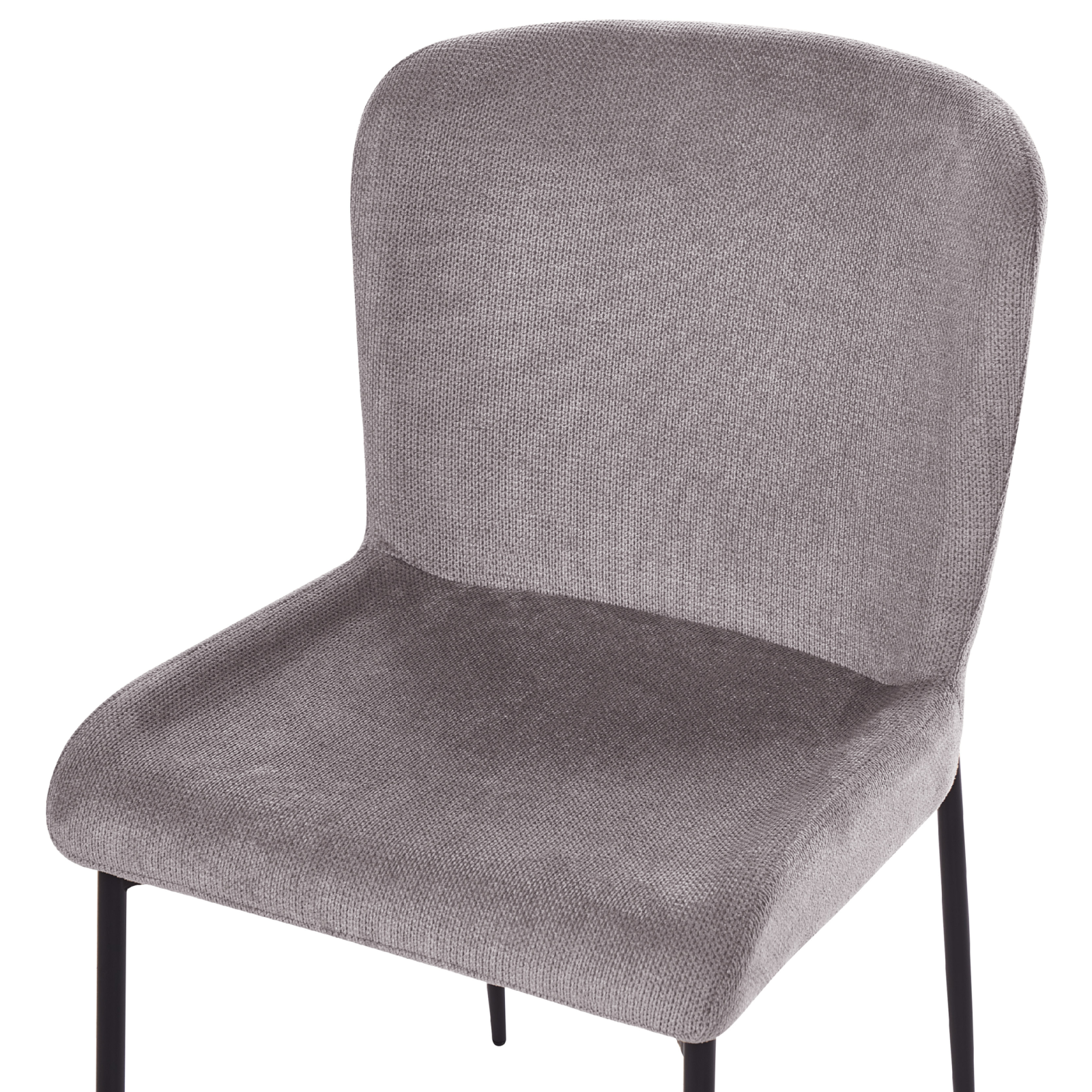 Set de 2 scaune cu tapițerie tricotată. Acest set de două scaune cu tapițerie tricotată îmbină confortul cu eleganța, aducând o atmosferă primitoare în orice încăpere. Picioarele metalice subțiri, cu un design simplu inspirat de stilul Japandi, completează perfect aspectul minimalist. Formele rotunjite oferă senzația de confort, iar lipsa cotierelor și dimensiunile compacte le fac ușor de integrat în orice spațiu. Perfecte pentru momentele de relaxare sau întâlnirile în familie, aceste piese sunt un plus de stil și funcționalitate pentru casa ta. Detalii: Tip de Produs: Scaun dining. Stil: Modern. Culoare: Gri. Culoarea cadrului: Negru. Nuanță: Gri închis. Material: Țesătură. Material primar: Țesătură. Material secundar: Fier. Detalii material picioare: Metal. Material scaun: Țesătură. Compoziția materialului: 93% Poliester. Cotiere: Nu. Stivuire: Nu. Dimensiuni: Adâncime: 48 cm. Înălțimea scaunului: 49 cm. Lățime: 49 cm. Înălțime: 82 cm. Suprafața de ședere: 48x41 cm. Greutate: 5 kg. Capacitatea de greutate: 150 kg. Oferta incude: 2 x Scaun. Caracteristici cheie: Stil minimalist scandinav, Culori calde și elegante, Tapițerie din țesătură de înaltă calitate, Construcție robustă, Capace pentru picioare pentru protecția suprafeței. Asamblare: Picioare neasamblate.20-40 min. Informații suplimentare: Pentru o stabilitate și siguranță maximă în utilizare, se recomandă să verificați la aproximativ 2 săptămâni după instalare dacă produsul a fost asamblat corect. De asemenea, se recomandă să verificați dacă șuruburile sunt strânse corect, o dată la 3 luni. Sfaturi de întreținere: Țesătură: 1.Vă rugăm să curățați cu un șampon uscat și un burete umed sau cu un detergent ușor. 2.Aspirati folosind un accesoriu potrivit. Fier: 1.Curățați cu un detergent delicat și o cârpă moale, apoi ștergeți bine. 2.Pentru a evita zgârieturile, nu folosiți produse de curățare abrazive. 3.Pentru elementele din cupru sau crom, folosiți un agent de lustruire.