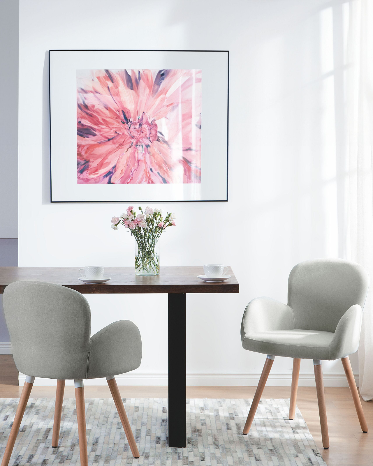 Scaune dining tapițate în stil retro. Acest set de scaune, simplu și fermecător, transformă orice spațiu într-un colț plin de personalitate și căldură. Picioarele înalte, ușor înclinate, evidențiază stilul retro, în timp ce formele rotunjite adaugă echilibru și eleganță. Tapițeria într-o nuanță mată de gri deschis, moale și plăcută la atingere, conferă rafinament fiecărui moment. Indiferent dacă le amplasezi în sufragerie, bucătărie, living sau dormitor, aceste piese vor deveni rapid punctul central al casei tale, invitând la relaxare și voie bună. Detalii: Tip de Produs: Scaun dining. Stil: Retro. Culoare: Gri. Nuanță: Gri deschis. Material: Țesătură. Material primar: Țesătură. Material secundar: Lemn de fag. Detalii material picioare: Lemn. Material scaun: Țesătură. Compoziția materialului: 100% Poliester. Cotiere: Da. Stivuire: Nu. Dimensiuni: Înălțimea cotierei: 64 cm. Adâncime: 52 cm. Grosimea scaunului: 7 cm. Înălțimea scaunului: 48 cm. Lățime: 44 cm. Înălțime: 83 cm. Suprafața de ședere: 42x41 cm. Greutate: 7 kg. Capacitatea de greutate: 150 kg. Oferta incude: 2 x Scaun. Caracteristici cheie: Se potrivește perfect în bucătărie sau în sufragerie, Cotiere confortabile, Se adaptează la orice stil de interior, Tapițată complet, Capace pentru picioare pentru protecția suprafeței. Asamblare: Picioare neasamblate.20-40 min. Informații suplimentare: Pentru o stabilitate și siguranță maximă în utilizare, se recomandă să verificați la aproximativ 2 săptămâni după instalare dacă produsul a fost asamblat corect. De asemenea, se recomandă să verificați dacă șuruburile sunt strânse corect, o dată la 3 luni. Trebuie remarcat faptul că lemnul este un material natural și, prin urmare, fiecare obiect din lemn diferă de celelalte. Diferențele de culoare și de textură a suprafeței (noduri de lemn, dungi etc.) sunt caracteristici intrinseci ale materialului și, prin urmare, nu sunt considerate defecte ale produsului. Sfaturi de întreținere: Țesătură: 1.Vă rugăm să curățați cu un șampon uscat și un burete umed sau cu un detergent ușor. 2.Aspirati folosind un accesoriu potrivit. Lemn de fag: 1.Curățați cu un detergent delicat și o cârpă moale, urmând direcția fibrelor. 2.Ștergeți imediat după curățare pentru a preveni acumularea apei pe produs. 3.Pentru a păstra mobila finisată cu ulei în stare bună, este necesar să o ungeți cu ulei după un timp.