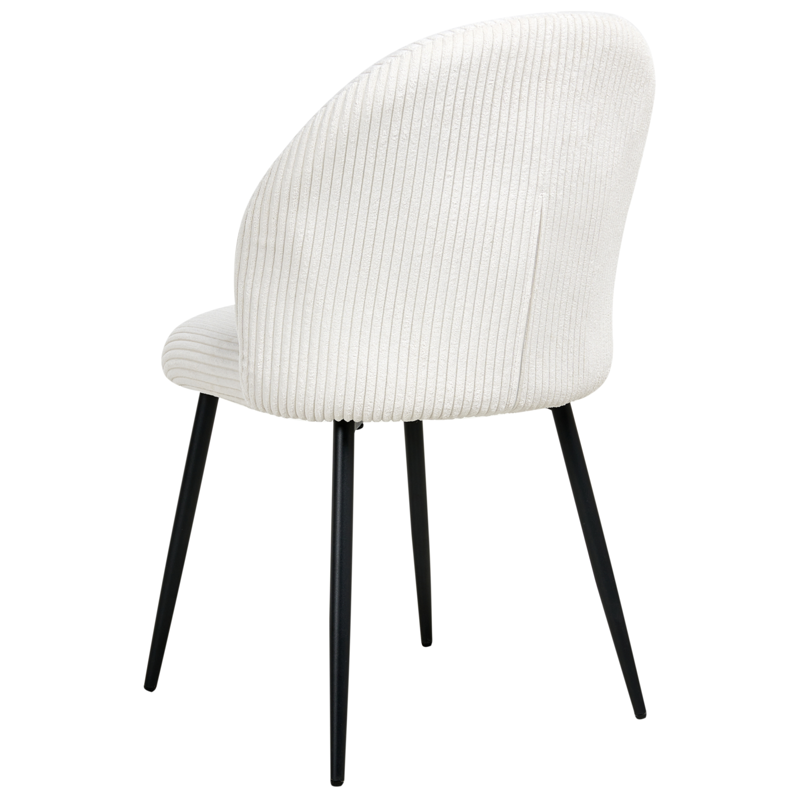 Scaune tapițate fără cotiere cu design modern. Adaugă un plus de eleganță contemporană zonei tale de dining, bucătăriei sau livingului cu acest set de scaune dining. Cu o tapițerie din catifea moale și picioare metalice rezistente, combină confortul cu durabilitatea pe termen lung. În plus, capacele de protecție previn zgârieturile pe podea, fiind potrivite pentru diverse suprafețe și menținând spațiul impecabil. Detalii: Tip de Produs: Scaun dining. Stil: Modern. Culoare: Alb. Culoarea cadrului: Negru. Nuanță: Alb-murdar. Material: Țesătură. Material primar: Velur. Material secundar: Fier. Material scaun: Velur. Compoziția materialului: 100% Poliester. Cotiere: Nu. Finisaj: Acoperire pulverizată. Stivuire: Nu. Dimensiuni: Adâncime: 43 cm. Înălțimea scaunului: 42 cm. Lățime: 52 cm. Înălțime: 86 cm. Suprafața de ședere: 45x43 cm. Greutate: 5 kg. Capacitatea de greutate: 120 kg. Oferta incude: 2 x Scaun. Caracteristici cheie: Se potrivește perfect în bucătărie sau în sufragerie, Confort maxim la șezut, Design modern, Tapițerie din țesătură de înaltă calitate, Capace pentru picioare pentru protecția suprafeței. Asamblare: Necesită asamblare parțială.5-15 min. Informații suplimentare: Pentru o stabilitate și siguranță maximă în utilizare, se recomandă să verificați la aproximativ 2 săptămâni după instalare dacă produsul a fost asamblat corect. De asemenea, se recomandă să verificați dacă șuruburile sunt strânse corect, o dată la 3 luni. Sfaturi de întreținere: Țesătură: 1.Vă rugăm să curățați cu un șampon uscat și un burete umed sau cu un detergent ușor. 2.Aspirati folosind un accesoriu potrivit.