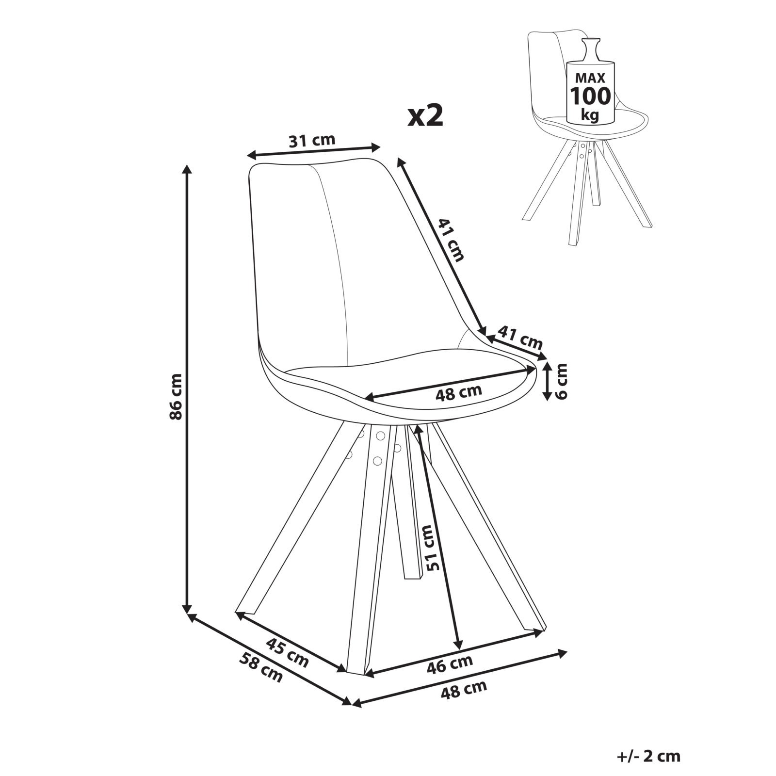 Scaune de dining tapițate fără brațe. Concepute pentru a fi cât mai practice, aceste scaune sunt ideale pentru orice locuință. Șezutul tapițat este bine căptușit pentru un confort sporit, iar lipsa cotierelor le face ușor de glisat sub masă, economisind astfel spațiu. Combinația dintre țesătura deschisă la culoare și baza din metal negru conferă un aspect clasic și atemporal, potrivit pentru orice interior modern. Detalii: Tip de Produs: Scaun dining. Stil: Scandinav. Culoare: Maro. Nuanță: Maro deschis. Material: Țesătură. Material primar: Țesătură. Material secundar: Fier. Materialul cadrului: Metal. Detalii material picioare: Metal. Material scaun: Țesătură. Compoziția materialului: 100% Poliester. Cotiere: Nu. Stivuire: Nu. Dimensiuni: Adâncime: 58 cm. Grosimea scaunului: 6 cm. Înălțimea scaunului: 51 cm. Lățime: 48 cm. Înălțime: 86 cm. Suprafața de ședere: 48x41 cm. Greutate: 7 kg. Capacitatea de greutate: 100 kg. Oferta incude: 2 x Scaun. Caracteristici cheie: Formă curbată pentru a maximiza confortul, Stil minimalist scandinav, Perfect pentru fiecare cameră, Construcție solidă și stabilă, Tapițerie din țesătură de înaltă calitate. Asamblare: Necesită asamblare parțială.5-15 min. Informații suplimentare: Pentru o stabilitate și siguranță maximă în utilizare, se recomandă să verificați la aproximativ 2 săptămâni după instalare dacă produsul a fost asamblat corect. De asemenea, se recomandă să verificați dacă șuruburile sunt strânse corect, o dată la 3 luni. Sfaturi de întreținere: Țesătură: 1.Vă rugăm să curățați cu un șampon uscat și un burete umed sau cu un detergent ușor. 2.Aspirati folosind un accesoriu potrivit. Fier: 1.Curățați cu un detergent delicat și o cârpă moale, apoi ștergeți bine. 2.Pentru a evita zgârieturile, nu folosiți produse de curățare abrazive. 3.Pentru elementele din cupru sau crom, folosiți un agent de lustruire.