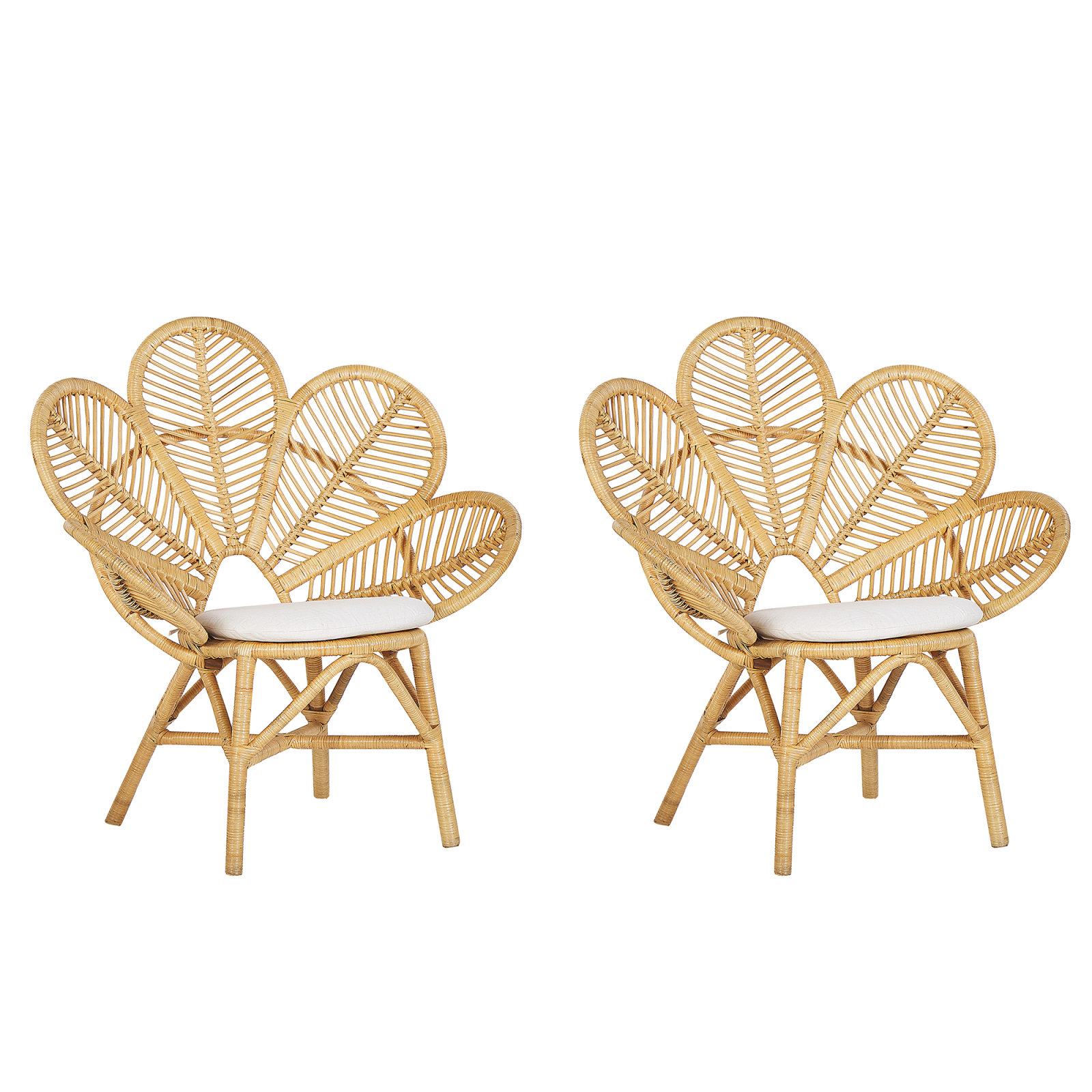 Set de scaune de grădină cu spătar tip păun. Un set de scaune tip păun, cu design în tendințe, perfect pentru orice spațiu de locuit. Confecționate din ratan natural, piesele sunt foarte ușor de manevrat, oferindu-ți flexibilitatea de a reamenaja rapid încăperea după bunul plac. Pernele din bumbac adaugă un plus de confort și rafinament, iar designul boho și rustic se integrează perfect, aducând un aer elegant și relaxat în orice colț al casei tale. Detalii: Tip de Produs: Fotoliu. Stil: Boho. Culoare: Maro. Material: Ratan. Material primar: Ratan. Material secundar: Bumbac. Detalii material picioare: Ratan. Material scaun: Țesătură. Cotiere: Nu. Finisaj: Natural. Stivuire: Nu. Dimensiuni: Adâncime: 68 cm. Grosimea scaunului: 3 cm. Înălțimea scaunului: 50 cm. Lățime: 95 cm. Înălțime: 107 cm. Suprafața de ședere: 58x46 cm. Greutate: 4.5 kg. Capacitatea de greutate: 100 kg. Oferta incude: 2 x Scaun, 2 x Pernă pentru șezut. Caracteristici cheie: Legături practice pentru o prindere sigură, Atât în interior cât și în exterior, Țesătură solidă, Perne detașabile pentru o curățare ușoară, Material natural, Ușor de mutat. Asamblare: Nu necesită asamblare. Informații suplimentare: Vă rugăm să rețineți că produsul este sensibil la condițiile meteorologice și trebuie păstrat în interior sau într-un loc acoperit și moderat, atunci când nu este folosit. Nu este recomandat să lăsați mobilierul doar sub o copertină de exterior în timpul anotimpurilor reci. Vă recomandăm să păstrați mobilierul în interior, într-un loc răcoros și uscat. Pentru acest produs, oferim un ghid detaliat de îngrijire, pentru ca mobilierul să arate la fel de bine și după mulți ani. Consultați instrucțiunile și sfaturile de întreținere în secțiunea „Ambalare și Asamblare” de mai jos. Vă rugăm să rețineți că fiecare produs este realizat manual. Pot exista mici diferențe de textură, culoare sau formă datorită caracteristicilor materialelor folosite, iar acestea nu vor fi considerate defecte. Sfaturi de întreținere: Ratan: 1.Curățați numai cu o cârpă uscată. Nu folosiți detergenți. Bumbac: 1.Vă rugăm să spălați manual sau să selectați un ciclu de spălare delicat (30ºC), urmați întotdeauna instrucțiunile producătorului. 2.Nu uscați la mașina de uscat și nu călcați decât dacă instrucțiunile de pe etichetă indică acest lucru.