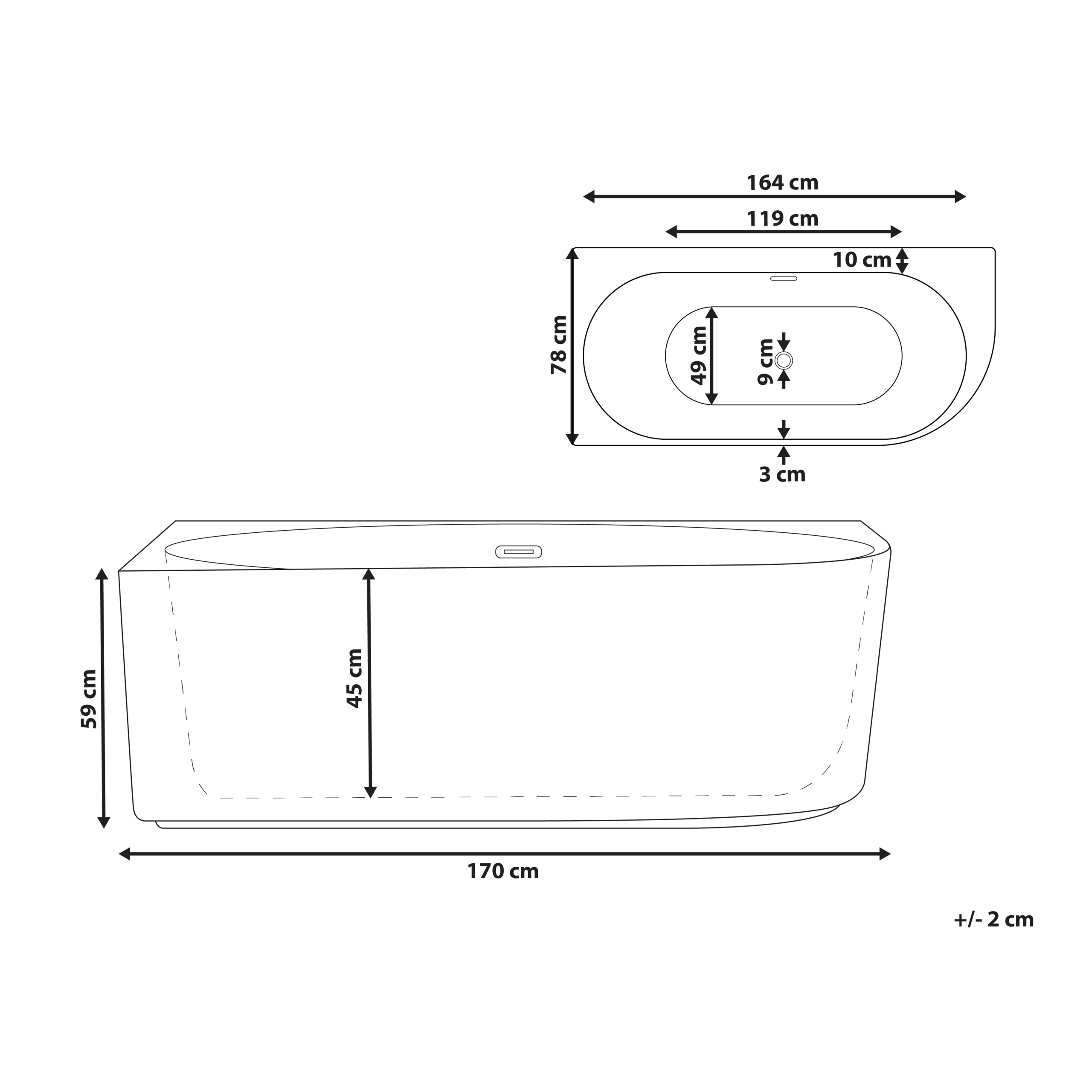 Cadă cu finisaj canelat. Pășește în universul luxului modern cu această cadă elegantă de colț, într-o nuanță stilată de alb. Creată pentru două persoane, această piesă inovatoare îmbină perfect confortul cu designul sofisticat. Exteriorul cu finisaj mat și canelat, adaugă un plus de rafinament și o textură plăcută la atingere. Fabricată din acril de înaltă calitate, oferă o experiență deosebită și este ușor de întreținut zilnic. Răsfață-te cu momente de relaxare și transformă-ți baia într-un spațiu modern și luxuriant. Detalii: Tip de Produs: Cadă de baie pe colț. Stil: Modern. Culoare: Alb. Material: Acrilic. Material primar: Acrilic. Formă: Neregulată. Finisaj: Canelat. Orientare: Dreapta. Capacitate: 280. Dimensiuni: Lățime: 78 cm. Dimensiuni interioare: 119x49x45. Lungime: 170 cm. Înălțime: 59 cm. Greutate: 40 kg. Capacitatea de greutate: 300 kg. Oferta incude: 1 x Cadă de baie, 1x Țeavă de drenaj, 1 x Sistem de preaplin, Nu include: Robinete. Caracteristici cheie: Sistem de drenaj cu control al supraplinului, Un loc excelent pentru relaxare, Design modern, Materiale de cea mai bună calitate, Construcție prietenoasă cu igiena. Asamblare: Necesită instalare. Informații suplimentare: Instalarea rezervorului trebuie efectuată în conformitate cu toate directivele aplicabile în statul în cauză. Vă rugăm să rețineți că numărul de serie al căzii de baie se află pe rama interioară a acesteia, precum și pe cutie. Acest număr unic trebuie păstrat și ar putea fi necesar în cazul unei cereri de piese de schimb sau al unei cereri de garanție. Furtunurile adecvate trebuie achiziționate din surse locale și conectate de un specialist. În niciun caz nu trebuie utilizate furtunurile de conectare furnizate de vânzător. Conectarea căzii de baie la rețeaua de alimentare trebuie efectuată de un specialist autorizat și calificat. Pentru a evita deteriorarea în timpul transportului, rezervoarele sunt preasamblate. Instalarea trebuie efectuată de către un instalator calificat. Toate furtunurile trebuie verificate și etanșate de un specialist înainte de utilizarea produsului și periodic. Furtunurile se pot deconecta în timpul transportului sau în timp. În cazul unui defect, clientul este responsabil pentru îndepărtarea părții defecte și reasamblarea acesteia. Sfaturi de întreținere: Acrilic: 1.Clătiți cu apă după fiecare baie și uscați. 2.Folosiți numai agenți de curățare care nu deteriorează acest material. 3.Se recomandă utilizarea cu prudență a uleiurilor esențiale, deoarece acestea pot lăsa reziduuri uleioase. 4.La instalarea produsului, clientul trebuie să se asigure că panoul frontal este ușor accesibil în orice moment pentru întreținere și în cazul în care trebuie înlocuite piesele. 5.Curățați și întrețineți regulat cada sau cada cu hidromasaj conform instrucțiunilor producătorului, pentru a preveni acumularea de murdărie, bacterii și formarea mucegaiului.