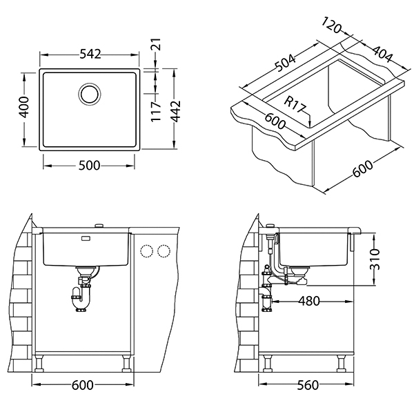 Chiuveta inox  Alveus Kombino 50    Alveus Kombino 50   este o chiuveta de bucatarie realizata din material inox. Este formata dintr-o cuva avand dimensiunea de 54 x 44 x 19.5 cm.  Acest model de chiuveta Alveus este conceput pentru montajul pe blat sau sub blatul de bucatarie.  Culoarea chiuvetei este inox (finisaj satin), ce ofera un contrast placut bucatariei dumneavoastra.  Chiuveta   Alveus Kombino 50   are o forma dreptunghiulara, cu dimensiunea cuvei de 50 x 40 x 19.5  cm, potrivita pentru spalarea vaselor de orice dimensiune. Aceasta chiuveta este confectionata din material inox de pana la 1mm de calitate superioara. Datorita procesarii atente a materialului, suprafata chiuvetei de bucatarie este neteda, placuta la atingere si permite o curatare usoara. In plus, ii ofera si alte avantaje, cum ar fi: rezistenta la temperaturi inalte, la utilizare intensa, rezistenta maxima la socuri termice si mecanice si nu se zgarie.  Chiuveta vine insotita cu urmatoarele accesorii:  sifon cu preaplin;   ventil de 3 1 2, ³;   sistem de prindere;
