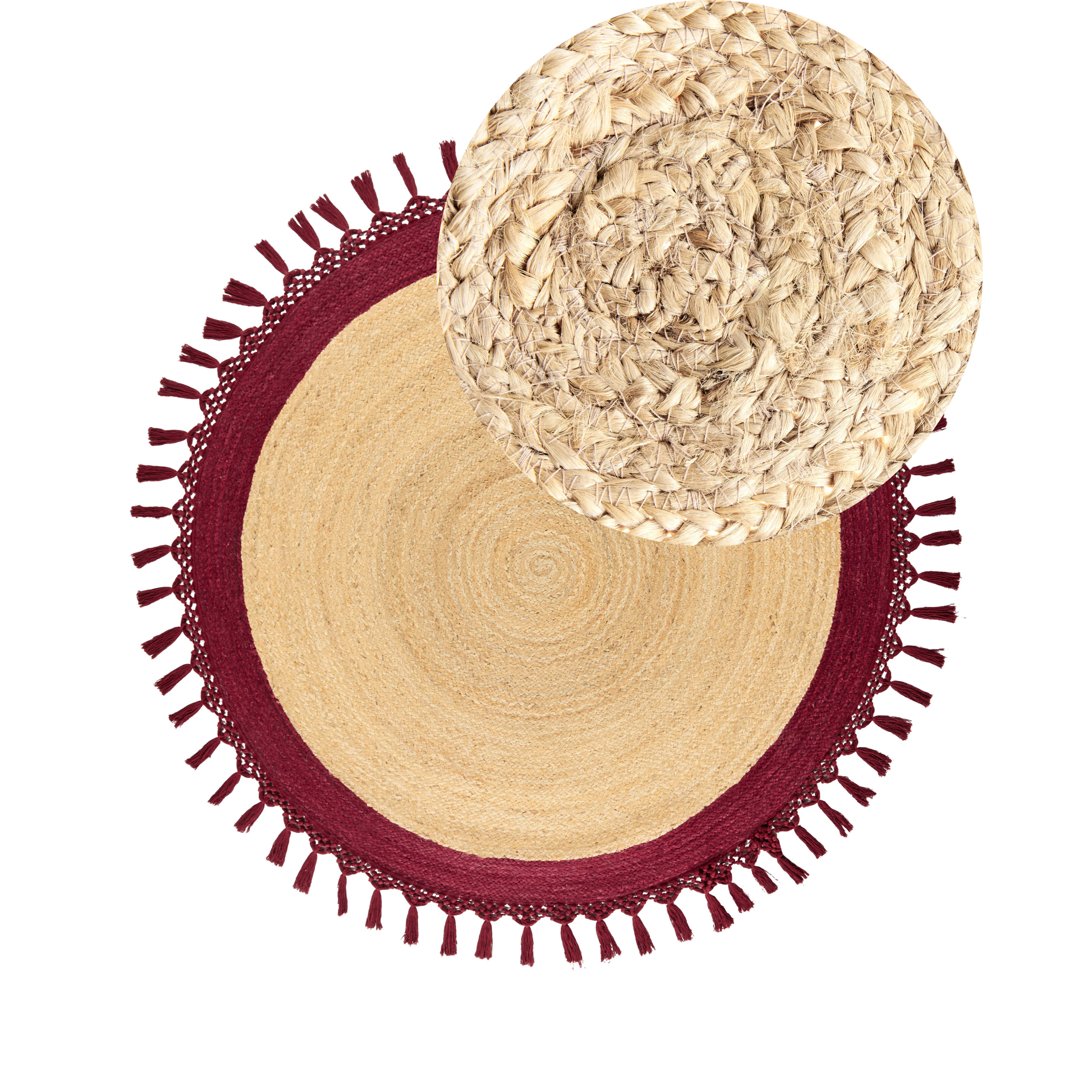 Covor cu țesătură plată confecționat manual. Transformă-ți interiorul cu acest covor rotund modern, care adaugă o notă de căldură și un farmec aparte oricărei încăperi. Confecționat manual dintr-un amestec de iută și bumbac, acesta este durabil și de calitate superioară. Texturile sale delicate și nuanțele naturale creează o combinație armonioasă, potrivită atât pentru un decor tradițional, cât și pentru unul boho. Detalii: Tip de Produs: Covor împletit. Stil: Boho. Culoare: Bej. Nuanță: Roșu închis. Material: Țesătură. Material primar: Iută. Material secundar: Bumbac. Compoziția materialului: 80% Iută. Formă: Rotundă. Acoperire inferioară din cauciuc: Nu. Gram pe metru pătrat: 2000. Model: Culoare solidă. Potrivit pentru încălzire prin pardoseală: Nu. Țesut: Țesut manual. Dimensiuni: Grosime: 0.5 cm. Lățime: 140 cm. Lungime: 140 cm. Greutate: 3 kg. Oferta incude: 1 x Covor. Caracteristici cheie: Realizat manual cu mare atenție la detalii, Ideal atât pentru dormitor, cât și pentru camera de zi, Țesute manual pentru un caracter unic, Excepțional de ușor de întreținut, Materiale de cea mai bună calitate. Asamblare: Nu necesită asamblare. Informații suplimentare: Vă rugăm să rețineți că, datorită producției manuale, fiecare piesă poate diferi ușor în ceea ce privește culoarea, textura și dimensiunea (+/- 5-7 cm). Aceste variații nu pot fi considerate reclamații. După despachetare, articolul are nevoie de aproximativ 72 de ore pentru a căpăta forma dorită. Vă recomandăm să îl desfășurați cât mai curând posibil și să plasați greutăți la capete pentru rezultate optime. Vă rugăm să rețineți că fiecare model poate prezenta mici diferențe față de cel ilustrat în imagine. Aranjamentul culorilor și al motivelor poate varia, iar aceasta nu este considerată un defect al produsului, ci o caracteristică a acestuia. Sfaturi de întreținere: 1.Aspirați o dată pe săptămână la putere medie, folosind un accesoriu pentru tapițerie, în direcția firului covorului. 2.Rotiți periodic covorul la 180 ̊ pentru a asigura o uzură uniformă și pentru a preveni decolorarea cauzată de expunerea la soare. 3.Îndepărtați imediat orice pată cu o cârpă umedă care nu-și pierde culoarea. Ștergeți de la margine spre centrul covorului, nu frecați. 4.Pentru pete mai dificile, curățați suprafața cu o cârpă de bumbac umedă care nu pătează. Dacă este necesar, folosiți un detergent pentru lână. Nu udați prea mult covorul și uscați-l imediat după curățare. Folosiți numai detergenți pentru covoare. Contactați un expert pentru îndepărtarea petelor dificile. 5.Pentru a elimina mirosul specific al materialului natural din care este confecționat covorul, aerisiți produsul timp de câteva ore ( ideal 1 sau 2 zile).
