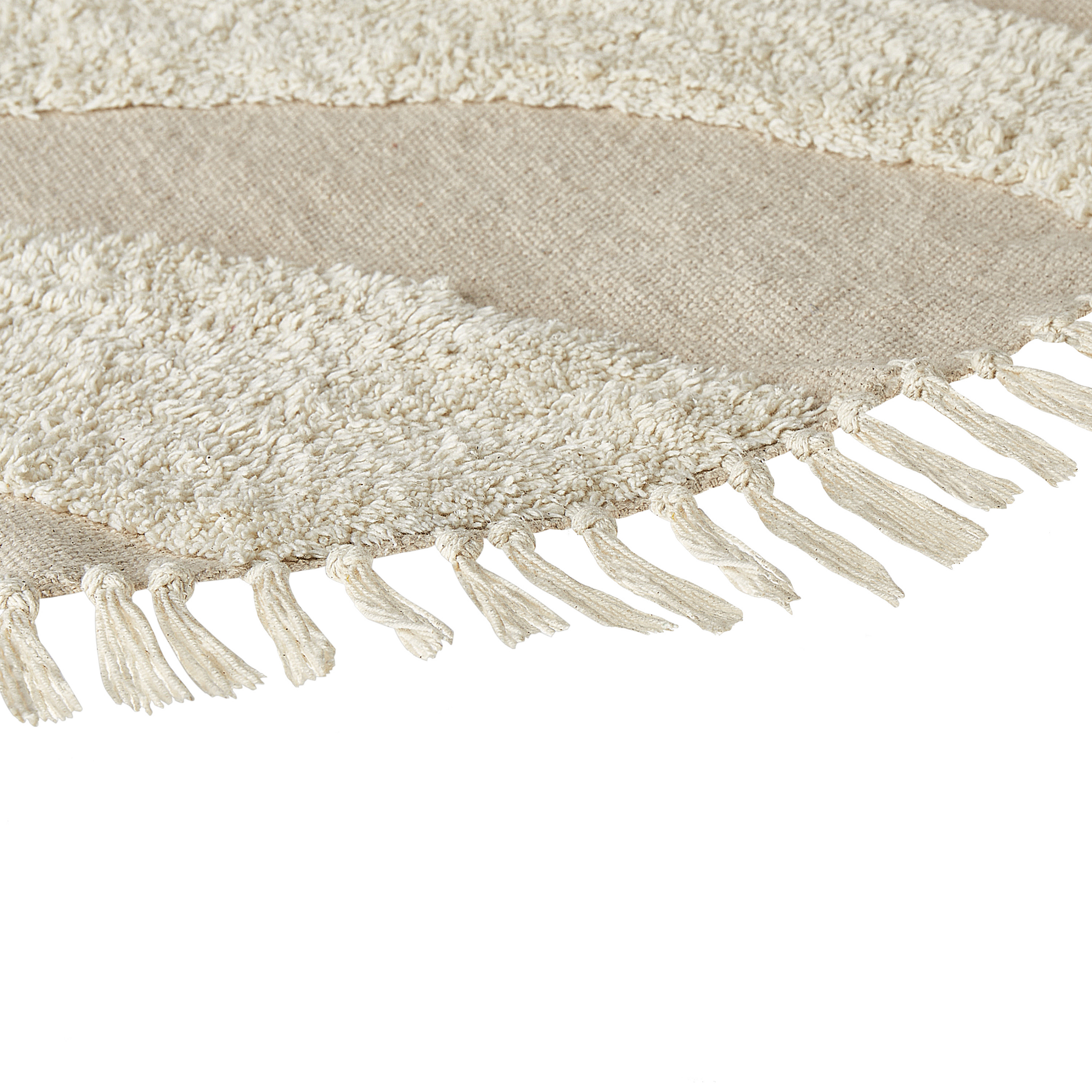 Covor decorativ cu ciucuri. Adaugă eleganță și confort spațiului tău de locuit cu acest covor din bumbac, cu un design texturat unic și ciucuri care creează o atmosferă primitoare. Forma rotundă și nuanțele neutre îl fac ușor de integrat în orice decor, fiind o piesă versatilă ce completează armonios orice încăpere. Detalii: Tip de Produs: Covor împletit. Stil: Boho. Culoare: Bej. Nuanță: Bej deschis. Material: Țesătură. Material primar: Bumbac. Compoziția materialului: 100% Bumbac. Formă: Rotundă. Acoperire inferioară din cauciuc: Nu. Gram pe metru pătrat: 1500. Model: Imprimeu geometric. Potrivit pentru încălzire prin pardoseală: Da. Țesut: Taftat. Dimensiuni: Grosime: 1 cm. Lățime: 140 cm. Lungime: 140 cm. Greutate: 2.3 kg. Oferta incude: 1 x Covor. Caracteristici cheie: Potrivit pentru încălzire în pardoseală, Ideal atât pentru dormitor, cât și pentru camera de zi, Culori elegante și la modă, Stil minimalist scandinav, Se adaptează la orice stil de interior, De înaltă calitate. Asamblare: Nu necesită asamblare. Informații suplimentare: După despachetare, articolul are nevoie de aproximativ 72 de ore pentru a căpăta forma dorită. Vă recomandăm să îl desfășurați cât mai curând posibil și să plasați greutăți la capete pentru rezultate optime. Sfaturi de întreținere: 1.Curățați doar partea murdară. 2.Nu se usucă la mașina de uscat și nu se calcă.