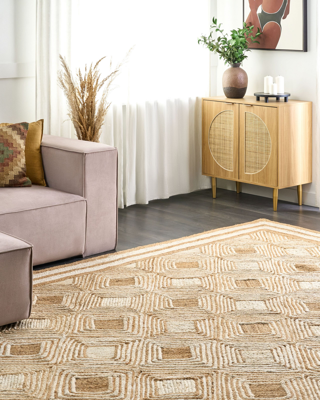 Covor din iută naturală țesută. Descoperiți acest covor de iută rafinat, realizat manual, cu un model complicat de împletituri, care adaugă o notă de eleganță naturală în orice cameră. Designul său Boho unic se potrivește perfect cu diferite stiluri de decor, creând o atmosferă confortabilă și primitoare. Aduceți acest covor unic acasă pentru a insufla camerei dvs. căldură și farmec. Detalii: Tip de Produs: Covor împletit. Stil: Boho. Culoare: Bej. Nuanță: Bej deschis. Material: Țesătură. Material primar: Iută. Compoziția materialului: 100% Iută. Formă: Rectangulară. Acoperire inferioară din cauciuc: Nu. Gram pe metru pătrat: 2200/2400. Model: Imprimeu geometric. Potrivit pentru încălzire prin pardoseală: Da. Țesut: Handmade. Dimensiuni: Grosime: 0.5 cm. Lățime: 300 cm. Lungime: 400 cm. Greutate: 27 kg. Oferta incude: 1 x Covor. Caracteristici cheie: Realizat manual cu mare atenție la detalii, Mobilier decorativ și funcțional, Ideal atât pentru dormitor, cât și pentru camera de zi, Se adaptează la orice stil de interior, Material natural. Asamblare: Nu necesită asamblare. Informații suplimentare: Vă rugăm să rețineți că, datorită producției manuale, fiecare piesă poate diferi ușor în ceea ce privește culoarea, textura și dimensiunea (+/- 5-7 cm). Aceste variații nu pot fi considerate reclamații. Sfaturi de întreținere: 1.Aspirați o dată pe săptămână la putere medie, folosind un accesoriu pentru tapițerie, în direcția firului covorului. 2.Rotiți periodic covorul la 180 ̊ pentru a asigura o uzură uniformă și pentru a preveni decolorarea cauzată de expunerea la soare. 3.Îndepărtați imediat orice pată cu o cârpă umedă care nu-și pierde culoarea. Ștergeți de la margine spre centrul covorului, nu frecați. 4.Pentru pete mai dificile, curățați suprafața cu o cârpă de bumbac umedă care nu pătează. Dacă este necesar, folosiți un detergent pentru lână. Nu udați prea mult covorul și uscați-l imediat după curățare. Folosiți numai detergenți pentru covoare. Contactați un expert pentru îndepărtarea petelor dificile. 5.Pentru a elimina mirosul specific al materialului natural din care este confecționat covorul, aerisiți produsul timp de câteva ore ( ideal 1 sau 2 zile).