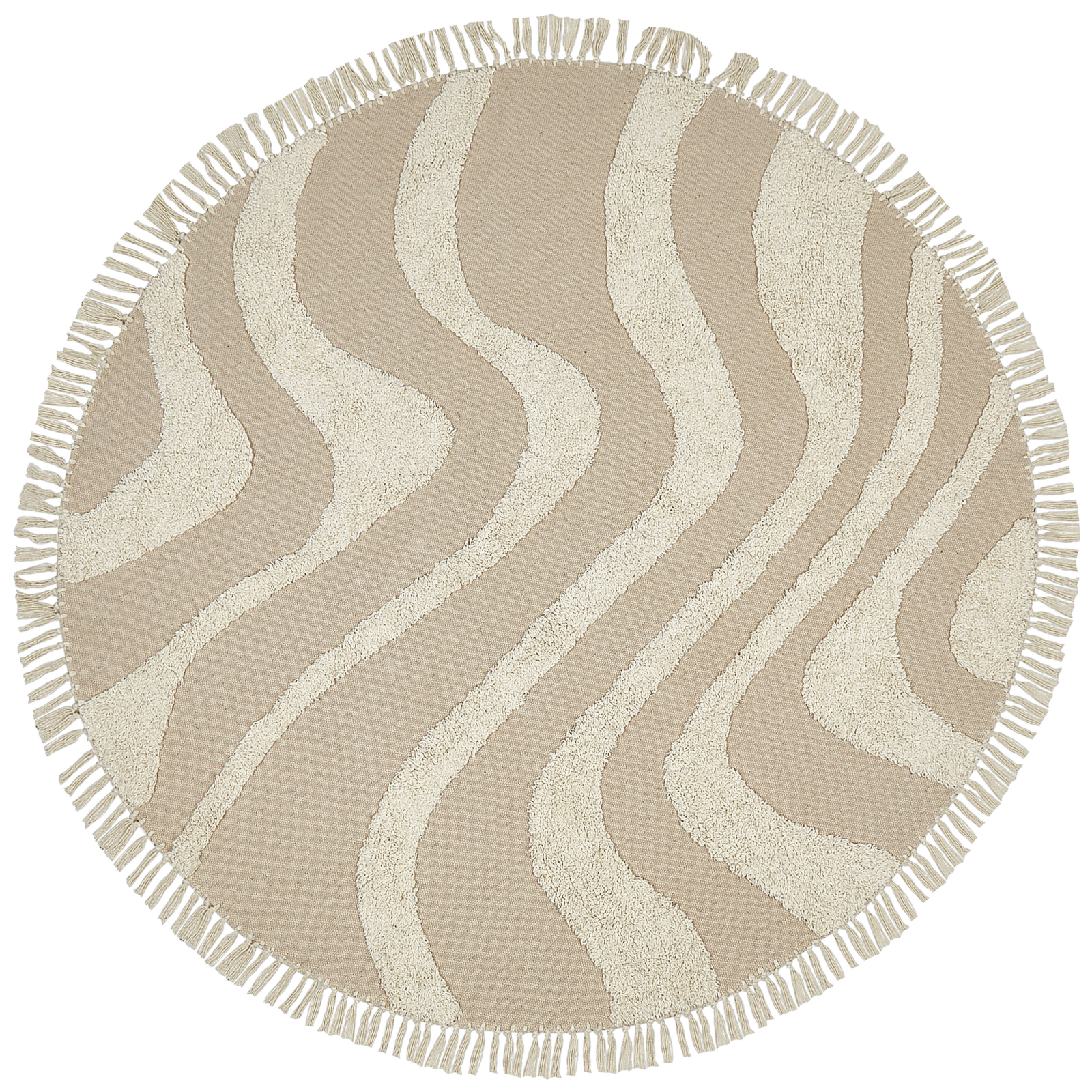 Covor decorativ cu ciucuri. Adaugă eleganță și confort spațiului tău de locuit cu acest covor din bumbac, cu un design texturat unic și ciucuri care creează o atmosferă primitoare. Forma rotundă și nuanțele neutre îl fac ușor de integrat în orice decor, fiind o piesă versatilă ce completează armonios orice încăpere. Detalii: Tip de Produs: Covor împletit. Stil: Boho. Culoare: Bej. Nuanță: Bej deschis. Material: Țesătură. Material primar: Bumbac. Compoziția materialului: 100% Bumbac. Formă: Rotundă. Acoperire inferioară din cauciuc: Nu. Gram pe metru pătrat: 1500. Model: Imprimeu geometric. Potrivit pentru încălzire prin pardoseală: Da. Țesut: Taftat. Dimensiuni: Grosime: 1 cm. Lățime: 140 cm. Lungime: 140 cm. Greutate: 2.3 kg. Oferta incude: 1 x Covor. Caracteristici cheie: Potrivit pentru încălzire în pardoseală, Ideal atât pentru dormitor, cât și pentru camera de zi, Culori elegante și la modă, Stil minimalist scandinav, Se adaptează la orice stil de interior, De înaltă calitate. Asamblare: Nu necesită asamblare. Informații suplimentare: După despachetare, articolul are nevoie de aproximativ 72 de ore pentru a căpăta forma dorită. Vă recomandăm să îl desfășurați cât mai curând posibil și să plasați greutăți la capete pentru rezultate optime. Sfaturi de întreținere: 1.Curățați doar partea murdară. 2.Nu se usucă la mașina de uscat și nu se calcă.