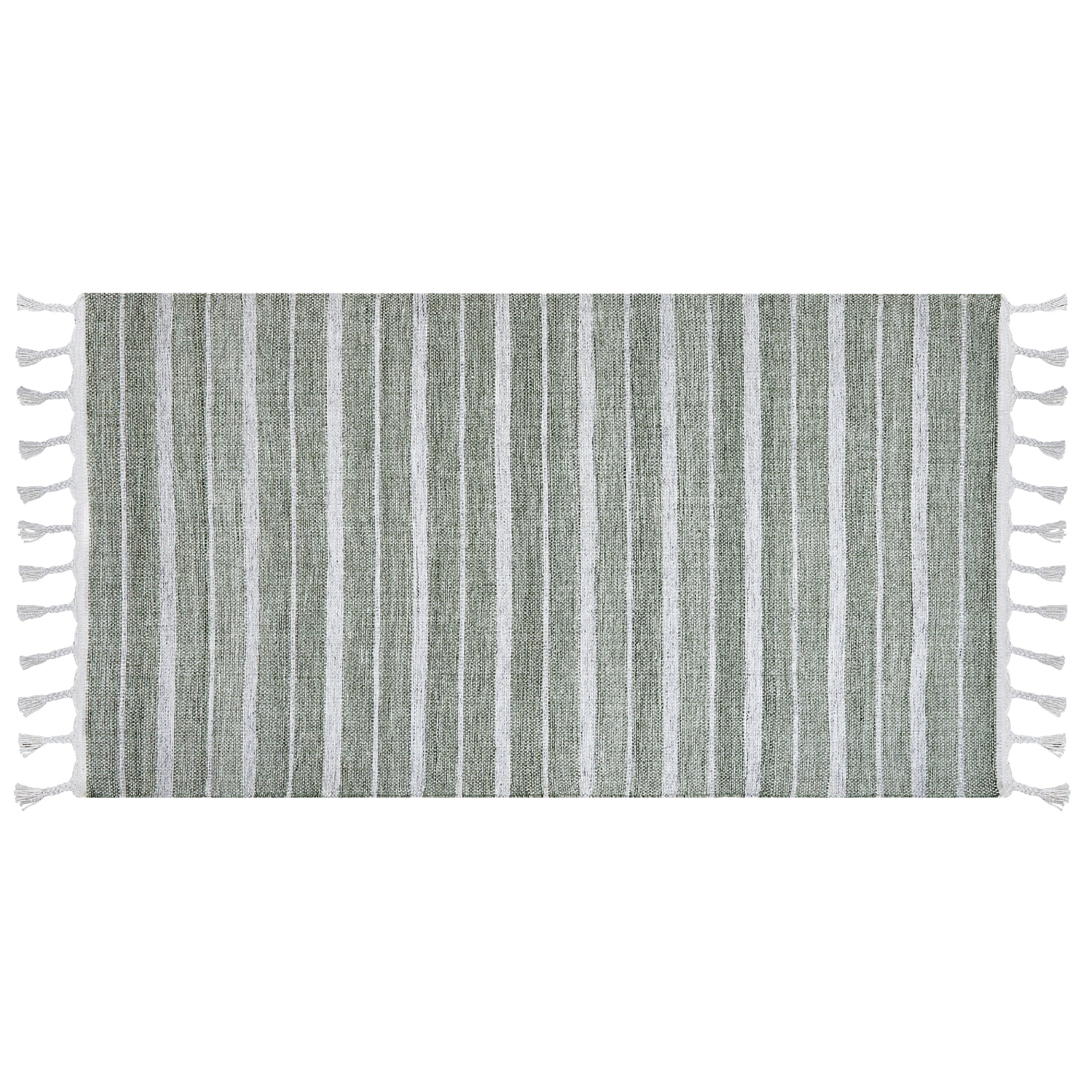 Covor decorativ cu model în dungi. Nuanțele clasice și designul simplu fac din acest covor un accesoriu stilat și versatil, potrivit pentru orice tip de interior. Confecționat manual din materiale complet reciclate, este prietenos cu mediul. Datorită compoziției sale, poate fi folosit atât în interior, cât și în exterior, aducând un plus de rafinament în living, pe terasă sau hol. Detalii: Tip de Produs: Covor împletit. Stil: Boho. Culoare: Verde. Nuanță: Verde închis. Material: Material sintetic. Material primar: Material sintetic. Compoziția materialului: 100% Poliester. Formă: Rectangulară. Acoperire inferioară din cauciuc: Nu. Gram pe metru pătrat: 1000. Model: Cu dungi. Potrivit pentru încălzire prin pardoseală: Nu. Țesut: Țesut manual. Dimensiuni: Grosime: 1 cm. Lățime: 80 cm. Lungime: 150 cm. Greutate: 1.4 kg. Oferta incude: 1 x Covor. Caracteristici cheie: Realizat manual cu mare atenție la detalii, Ideal atât pentru dormitor, cât și pentru camera de zi, Stil minimalist scandinav, Extrem de durabil, Atât în interior cât și în exterior, Ușor de curățat. Asamblare: Nu necesită asamblare. Sfaturi de întreținere: 1.Pentru pete mai dificile, curățați suprafața cu o cârpă de bumbac umedă care nu pătează. Dacă este necesar, folosiți un detergent pentru lână. Nu udați prea mult covorul și uscați-l imediat după curățare. Folosiți numai detergenți pentru covoare. Contactați un expert pentru îndepărtarea petelor dificile. 2.Aspirați o dată pe săptămână la putere medie, folosind un accesoriu pentru tapițerie, în direcția firului covorului. 3.Pentru a elimina mirosul specific al materialului natural din care este confecționat covorul, aerisiți produsul timp de câteva ore ( ideal 1 sau 2 zile). 4.Îndepărtați imediat orice pată cu o cârpă umedă care nu-și pierde culoarea. Ștergeți de la margine spre centrul covorului, nu frecați. 5.Rotiți periodic covorul la 180 ̊ pentru a asigura o uzură uniformă și pentru a preveni decolorarea cauzată de expunerea la soare.