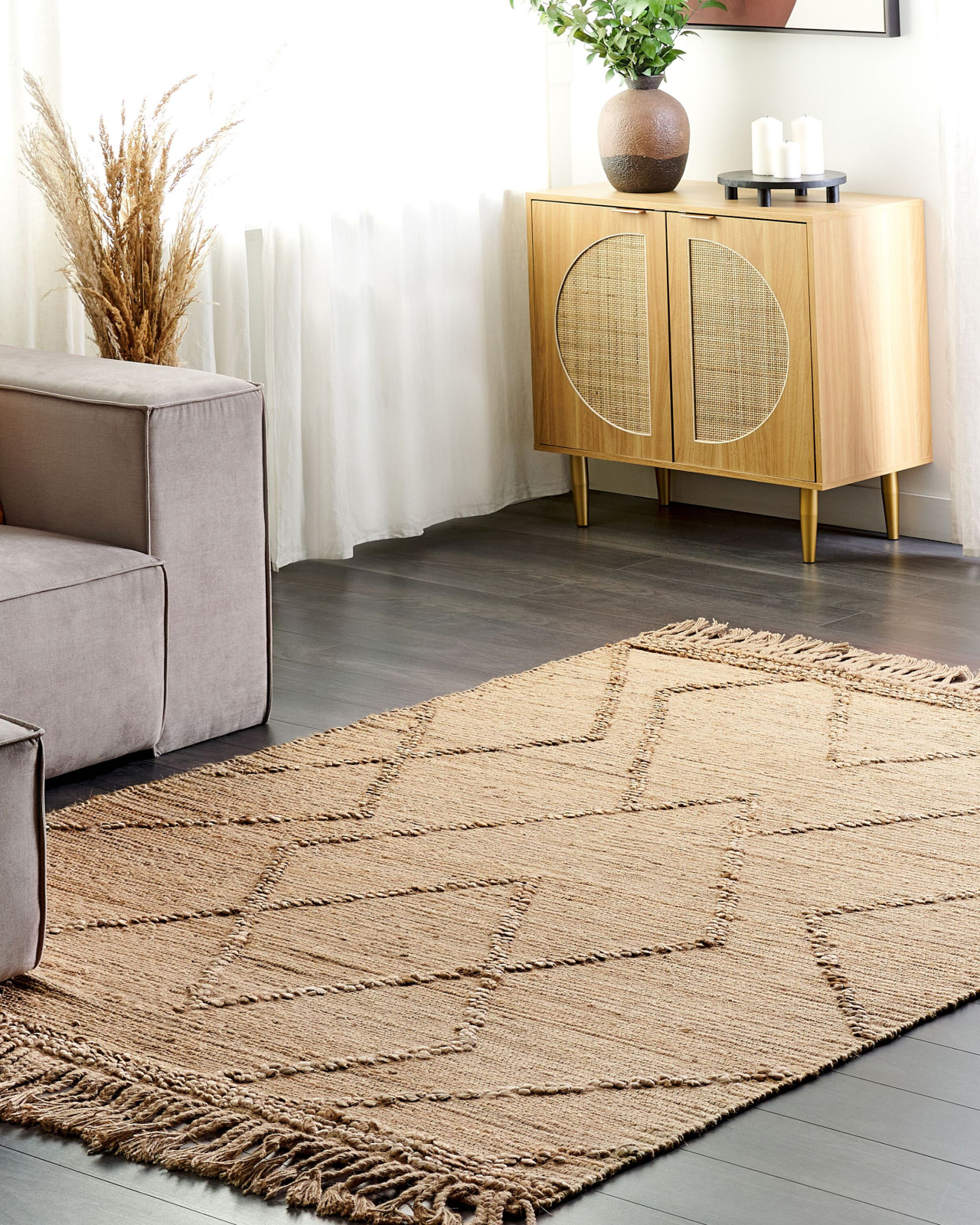 Covor decorativ cu model împletit și ciucuri. Reîmprospătează-ți rapid spațiul cu acest covor dreptunghiular. Țesut manual dintr-o combinație durabilă de iută și bumbac, este ideal pentru zonele intens circulate, precum livingul sau dormitorul, și nu necesită întreținere zilnică. Nuanța naturală de bej și modelul geometric discret îl fac ușor de integrat în amenajări moderne, boho sau eclectice. Detalii: Tip de Produs: Covor împletit. Stil: Boho. Culoare: Bej. Material: Țesătură. Material primar: Iută. Material secundar: Bumbac. Compoziția materialului: 80% Iută. Formă: Rectangulară. Acoperire inferioară din cauciuc: Nu. Gram pe metru pătrat: 1800-1900. Model: Imprimeu geometric. Potrivit pentru încălzire prin pardoseală: Da. Țesut: Țesut manual. Dimensiuni: Grosime: 0.8 cm. Lățime: 160 cm. Lungime: 230 cm. Greutate: 7 kg. Oferta incude: 1 x Covor. Caracteristici cheie: Realizat manual cu mare atenție la detalii, Potrivit pentru încălzire în pardoseală, Mobilier decorativ și funcțional, Ideal atât pentru dormitor, cât și pentru camera de zi, Se adaptează la orice stil de interior, Material natural. Asamblare: Nu necesită asamblare. Informații suplimentare: Vă rugăm să rețineți că, datorită producției manuale, fiecare piesă poate diferi ușor în ceea ce privește culoarea, textura și dimensiunea (+/- 5-7 cm). Aceste variații nu pot fi considerate reclamații. După despachetare, articolul are nevoie de aproximativ 72 de ore pentru a căpăta forma dorită. Vă recomandăm să îl desfășurați cât mai curând posibil și să plasați greutăți la capete pentru rezultate optime. Sfaturi de întreținere: 1.Curățați numai cu o cârpă uscată. Nu folosiți detergenți.