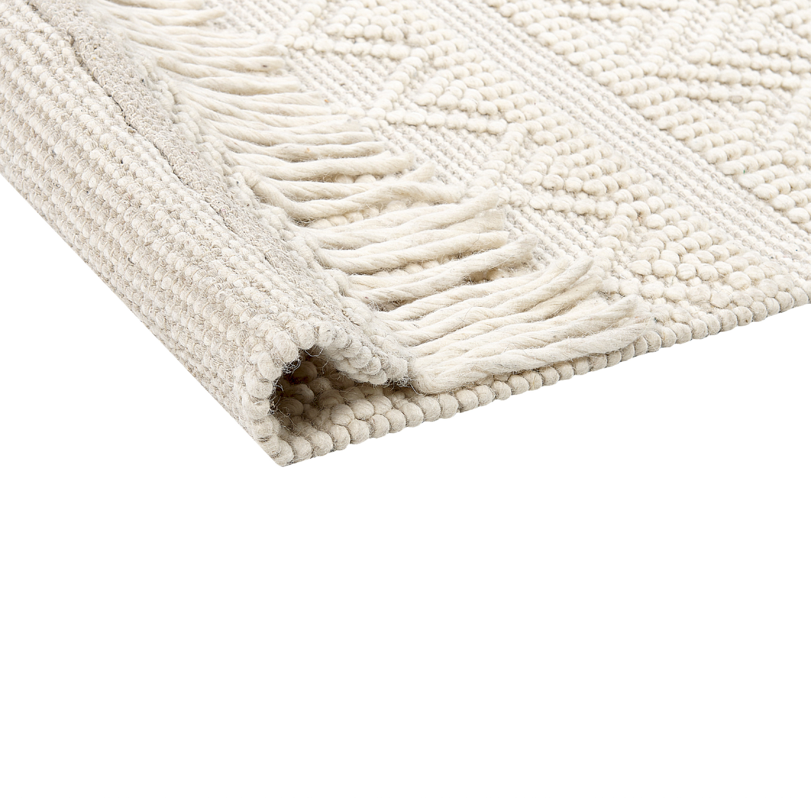 Covor decorativ cu franjuri pentru living. Dacă îți dorești un covor într-o nuanță neutră și delicată, care să se potrivească perfect cu mobilierul tău închis la culoare, acesta este soluția ideală. Se va integra armonios în orice living sau dormitor cu influențe moderne și boho. Realizat manual din lână de înaltă calitate, oferă o senzație plăcută la atingere și o rezistență de durată. În plus, nu necesită întreținere specială pentru a-și păstra frumusețea de-a lungul timpului. Detalii: Tip de Produs: Covor împletit. Stil: Boho. Culoare: Bej. Nuanță: Bej deschis. Material: Țesătură. Material primar: Lână. Material secundar: Țesătură. Material de bază: Bumbac. Compoziția materialului: 10% Bumbac. Formă: Rectangulară. Acoperire inferioară din cauciuc: Nu. Gram pe metru pătrat: 1500. Model: Imprimeu geometric. Potrivit pentru încălzire prin pardoseală: Da. Țesut: Țesut manual. Dimensiuni: Grosime: 1.2 cm. Lățime: 160 cm. Lungime: 230 cm. Greutate: 8.4 kg. Oferta incude: 1 x Covor. Caracteristici cheie: Potrivit pentru încălzire în pardoseală, Realizat manual cu mare atenție la detalii, Ideal atât pentru dormitor, cât și pentru camera de zi, Culori calde și elegante, Materiale de cea mai bună calitate. Asamblare: Nu necesită asamblare. Informații suplimentare: Din cauza materialului, unele fibre se pot desprinde în timpul utilizării. Totuși, acesta este un proces natural și nu este considerat un defect al produsului. După despachetare, articolul are nevoie de aproximativ 72 de ore pentru a căpăta forma dorită. Vă recomandăm să îl desfășurați cât mai curând posibil și să plasați greutăți la capete pentru rezultate optime. Fiecare piesă este realizată manual și unică, astfel încât textura și culorile pot fi ușor diferite de cele prezentate în fotografie. Sfaturi de întreținere: 1.Aspirați o dată pe săptămână la putere medie, folosind un accesoriu pentru tapițerie, în direcția firului covorului. 2.Rotiți periodic covorul la 180 ̊ pentru a asigura o uzură uniformă și pentru a preveni decolorarea cauzată de expunerea la soare. 3.Îndepărtați imediat orice pată cu o cârpă umedă care nu-și pierde culoarea. Ștergeți de la margine spre centrul covorului, nu frecați. 4.Pentru pete mai dificile, curățați suprafața cu o cârpă de bumbac umedă care nu pătează. Dacă este necesar, folosiți un detergent pentru lână. Nu udați prea mult covorul și uscați-l imediat după curățare. Folosiți numai detergenți pentru covoare. Contactați un expert pentru îndepărtarea petelor dificile. 5.Pentru a elimina mirosul specific al materialului natural din care este confecționat covorul, aerisiți produsul timp de câteva ore ( ideal 1 sau 2 zile).