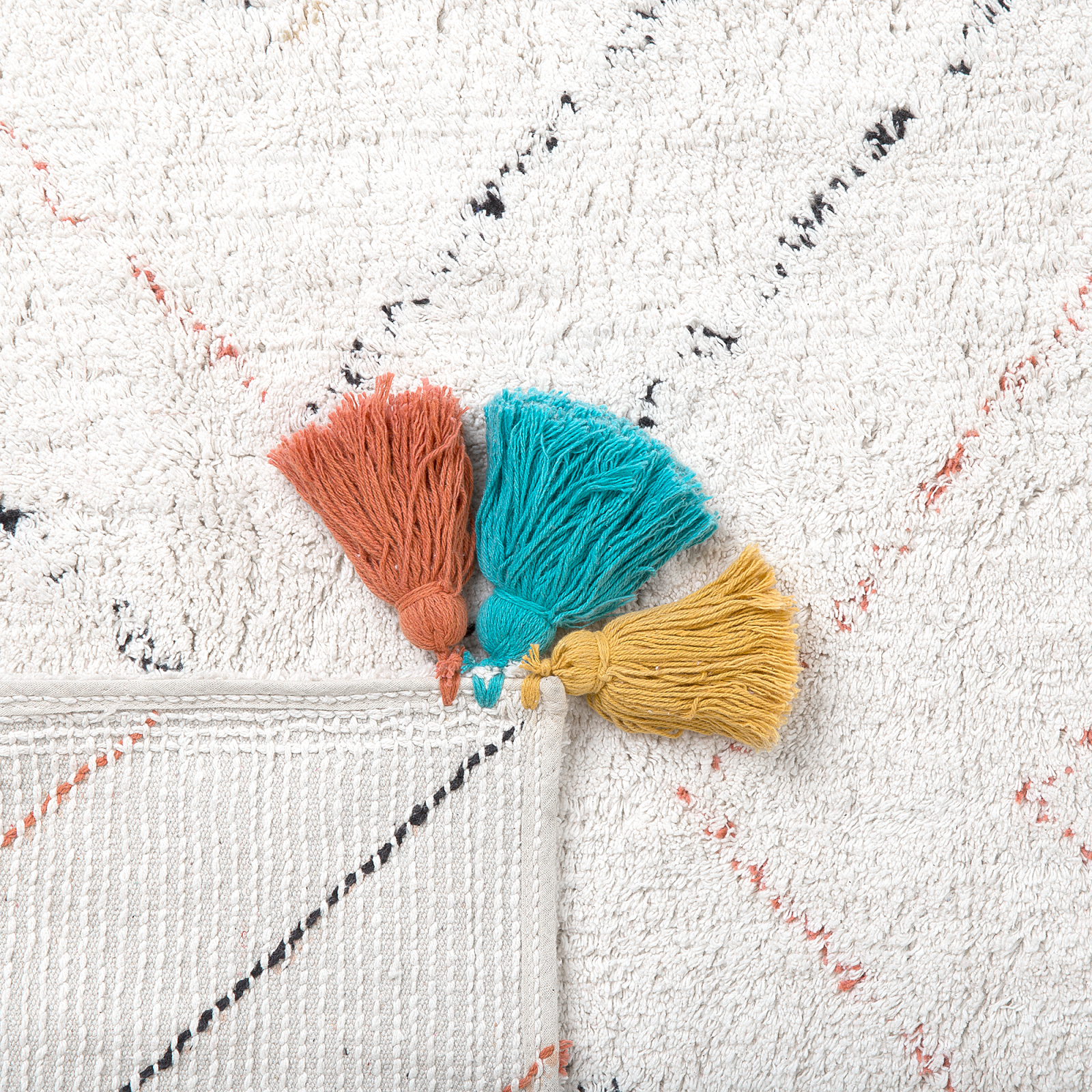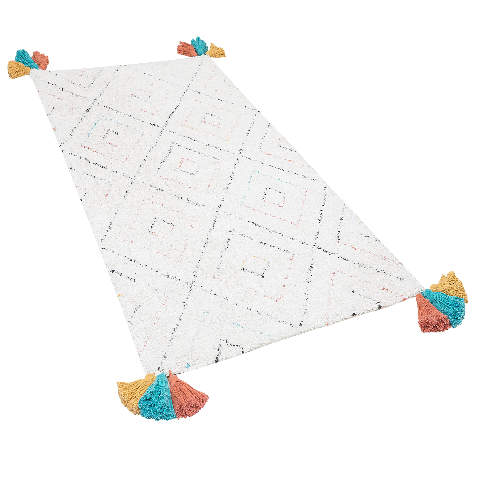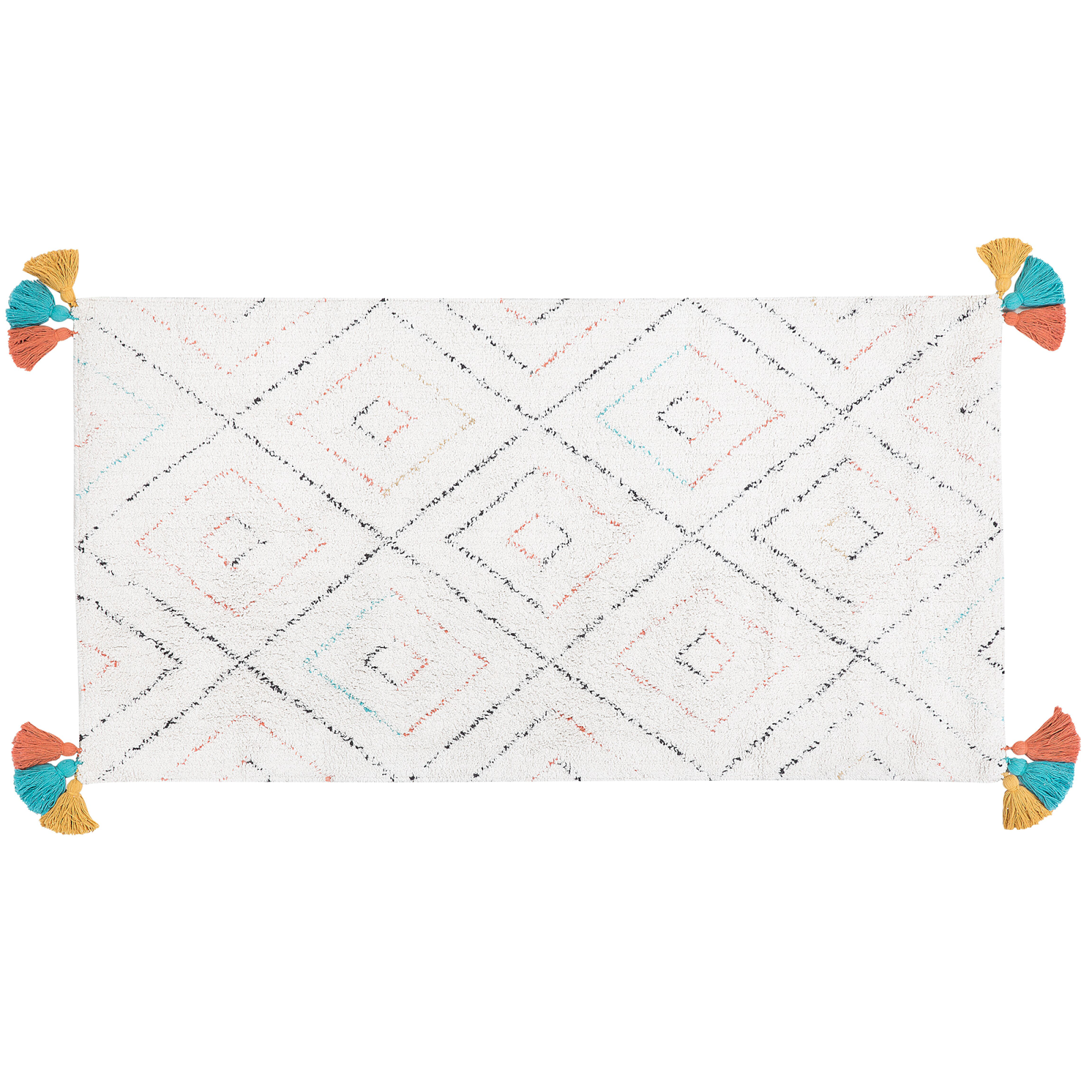 Covor decorativ cu ciucuri multicolori în stil oriental. Acest covor decorativ adaugă un aer oriental și o textură rafinată oricărui spațiu. Realizat din bumbac cu fir înalt, este extrem de moale la atingere și rezistent în timp. Nuanțele subtile, pe fundal alb, oferă un aspect contemporan, iar ciucurii colorați amplasați în colțuri, creează un efect vizual deosebit. Dimensiunea generoasă și durabilitatea îl fac perfect pentru zone intens circulate, precum livingul sau dormitorul. Detalii: Tip de Produs: Fir lung. Stil: Boho. Culoare: Alb. Material: Țesătură. Material primar: Bumbac. Material de bază: Bumbac. Compoziția materialului: 100% Bumbac. Formă: Rectangulară. Acoperire inferioară din cauciuc: Da. Gram pe metru pătrat: 1500. Model: Imprimeu geometric. Potrivit pentru încălzire prin pardoseală: Da. Țesut: Taftat. Dimensiuni: Grosime: 1 cm. Lățime: 80 cm. Lungime: 150 cm. Greutate: 1 kg. Oferta incude: 1 x Covor. Caracteristici cheie: Plăcut de pufoasă și moale datorită fibrelor cu răsucire redusă, Potrivit pentru încălzire în pardoseală, Riscul de alunecare redus datorită stratului inferior antiderapant, Culori elegante și la modă, Piesă cu accent atrăgător, Material natural. Asamblare: Nu necesită asamblare. Informații suplimentare: Din cauza materialului, unele fibre se pot desprinde în timpul utilizării. Totuși, acesta este un proces natural și nu este considerat un defect al produsului. După despachetare, articolul are nevoie de aproximativ 72 de ore pentru a căpăta forma dorită. Vă recomandăm să îl desfășurați cât mai curând posibil și să plasați greutăți la capete pentru rezultate optime. Sfaturi de întreținere: 1.Spălați manual, folosind doar apă rece și un detergent delicat. 2.Nu se usucă la mașina de uscat și nu se calcă.