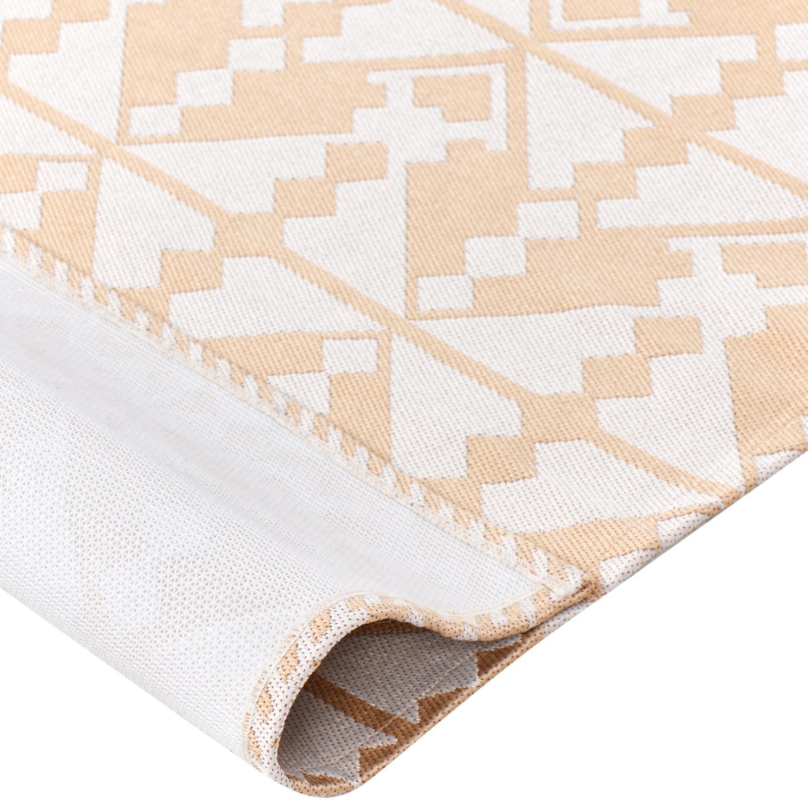 Covor de exterior cu model geometric. Transformă-ți terasa, balconul sau grădina cu acest covor din material sintetic durabil. Modelul geometric discret, în nuanțe calde de bej, se potrivește perfect în orice decor modern. Este rezistent la razele UV și la umezeală, iar stratul antiderapant îți oferă un plus de siguranță. Ușor de curățat și întreținut, este alegerea ideală pentru spațiile tale exterioare. Detalii: Tip de Produs: Covor de exterior. Stil: Modern. Culoare: Bej. Material: Material sintetic. Material primar: Polipropilenă. Material secundar: Țesătură. Material de bază: Cauciuc sintetic. Compoziția materialului: 100% Polipropilenă. Formă: Rectangulară. Acoperire inferioară din cauciuc: Da. Gram pe metru pătrat: 600. Model: Imprimeu geometric. Potrivit pentru încălzire prin pardoseală: Nu. Țesut: Țesut Jacquard. Dimensiuni: Grosime: 0.6 cm. Lățime: 160 cm. Lungime: 230 cm. Greutate: 2 kg. Oferta incude: 1 x Covor. Caracteristici cheie: Riscul de alunecare redus datorită stratului inferior antiderapant, Design modern, Face ca orice cameră să fie mai primitoare, De înaltă calitate, Finisaje fine, Rezistență UV, Ușor de curățat. Asamblare: Nu necesită asamblare. Informații suplimentare: După despachetare, articolul are nevoie de aproximativ 72 de ore pentru a căpăta forma dorită. Vă recomandăm să îl desfășurați cât mai curând posibil și să plasați greutăți la capete pentru rezultate optime. Sfaturi de întreținere: 1.Pentru petele dificile, îndepărtați murdăria de pe suprafață și curățați cu o cârpă umedă din bumbac, care nu lasă urme. Dacă este necesar, aplicați o cantitate mică de detergent diluat pentru lână. 2.Aspirați-l o dată pe săptămână la o putere de aspirare medie, folosind un accesoriu pentru tapițerie, în direcția firului. 3.Îndepărtați imediat orice pată, folosind o cârpă umedă, care nu lasă urme. Curățați dinspre margine spre centrul covorului, fără a freca. 4.Din când în când, rotiți covorul la 180° pentru a asigura o uzură uniformă și pentru a preveni decolorarea cauzată de expunerea la soare.