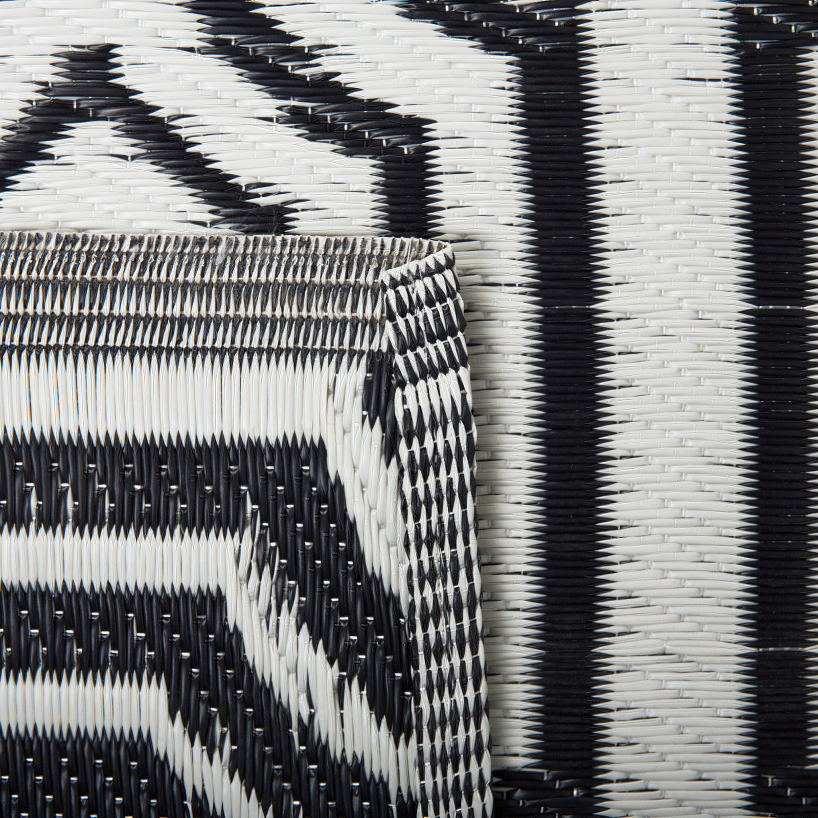 Covor de exterior cu model geometric. Transformă orice spațiu într-un colț plin de stil și confort cu acest covor reversibil, creat să impresioneze. Confecționat dintr-un material sintetic rezistent și ușor de întreținut, îți oferă durabilitate și funcționalitate pe termen lung. Modelul geometric sofisticat, în nuanțe elegante de gri, se armonizează perfect cu orice tip de decor, aducând un aer modern și primitor fiecărei încăperi sau zone de relaxare în aer liber. Alege-l pentru a adăuga personalitate și căldură ambientului tău! Detalii: Tip de Produs: Covor de exterior. Stil: Modern. Culoare: Negru. Material: Material sintetic. Material primar: Polipropilenă. Compoziția materialului: 100% Polipropilenă. Formă: Rectangulară. Acoperire inferioară din cauciuc: Nu. Gram pe metru pătrat: 430. Model: Imprimeu geometric. Potrivit pentru încălzire prin pardoseală: Nu. Țesut: Țesut Jacquard. Dimensiuni: Grosime: 0.5 cm. Lățime: 90 cm. Lungime: 180 cm. Greutate: 1 kg. Oferta incude: 1 x Covor. Caracteristici cheie: Imprimeu pe ambele părți, Adaugă o notă de eleganță oricărui interior, Design modern, Atât în interior cât și în exterior, Material ușor, dar durabil, Fabricat din materiale reciclate. Asamblare: Nu necesită asamblare. Sfaturi de întreținere: 1.Aspirați-l o dată pe săptămână la o putere de aspirare medie, folosind un accesoriu pentru tapițerie, în direcția firului. 2.Din când în când, rotiți covorul la 180° pentru a asigura o uzură uniformă și pentru a preveni decolorarea cauzată de expunerea la soare. 3.Îndepărtați imediat orice pată, folosind o cârpă umedă, care nu lasă urme. Curățați dinspre margine spre centrul covorului, fără a freca. 4.Pentru petele dificile, îndepărtați murdăria de pe suprafață și curățați cu o cârpă umedă din bumbac, care nu lasă urme. Dacă este necesar, aplicați o cantitate mică de detergent diluat pentru lână.