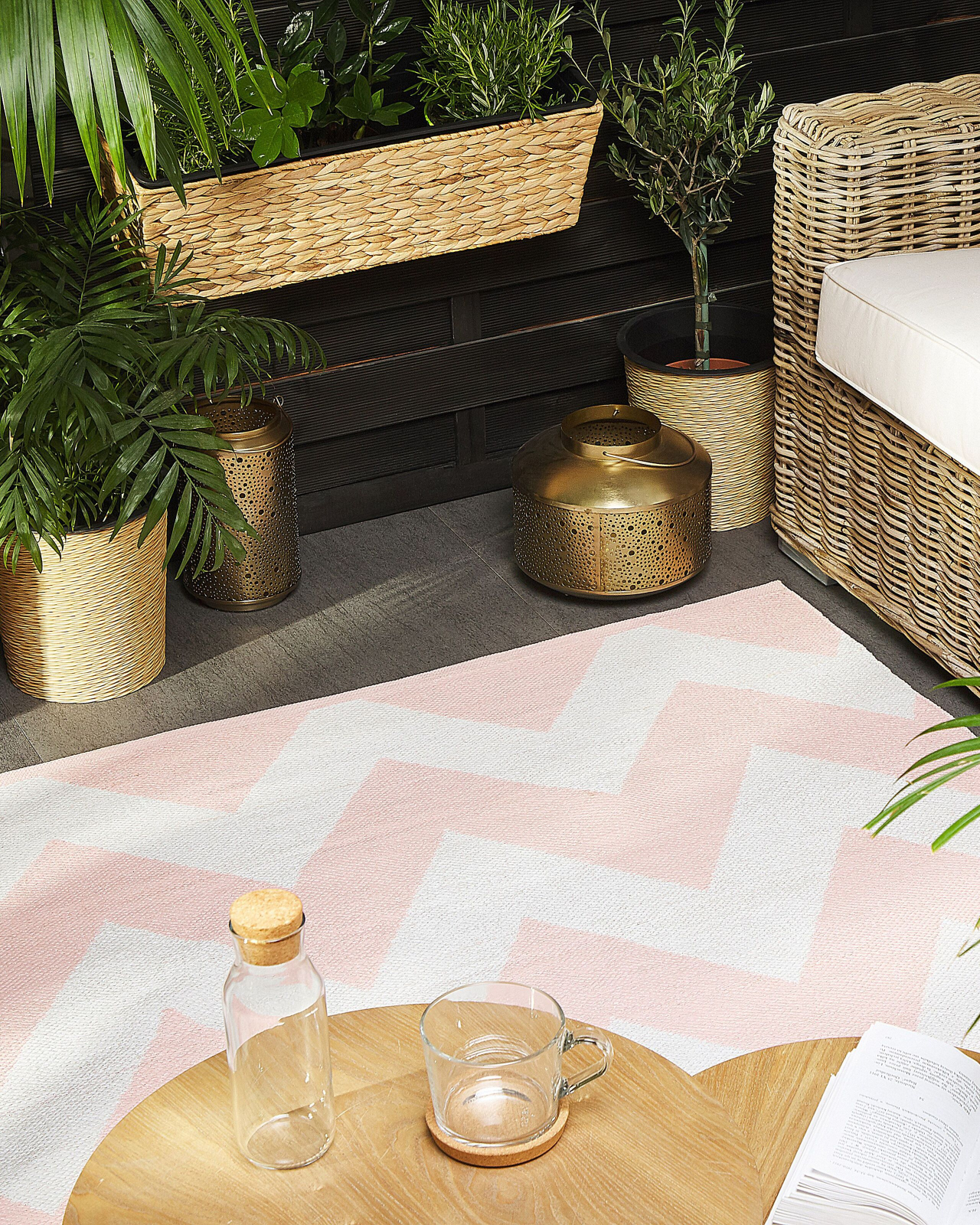 Covor cu model în zigzag. Transformă-ți spațiul într-un loc cu adevărat special cu acest covor în două culori, perfect pentru living sau terasă. Modelul în zig-zag adaugă un strop de energie și dinamică, făcându-l piesa de rezistență a oricărei încăperi. Confecționat din fibre durabile și rezistente la apă, este ideal atât pentru interior, cât și pentru exterior. Ușor de întreținut și rapid de uscat, te va însoți în momentele tale de relaxare, oferindu-ți un confort sporit și o atmosferă plină de stil. Detalii: Tip de Produs: Covor de exterior. Stil: Modern. Culoare: Roz. Material: Material sintetic. Material primar: PVC. Material secundar: Țesătură. Formă: Rectangulară. Acoperire inferioară din cauciuc: Nu. Gram pe metru pătrat: 1500. Model: Imprimeu Chevron. Potrivit pentru încălzire prin pardoseală: Nu. Țesut: Țesut manual. Dimensiuni: Grosime: 1 cm. Lățime: 140 cm. Lungime: 200 cm. Greutate: 4 kg. Oferta incude: 1 x Covor. Caracteristici cheie: Realizat manual cu mare atenție la detalii, Culori elegante și la modă, Creează o atmosferă confortabilă, Atât în interior cât și în exterior, Material ușor, dar durabil. Asamblare: Nu necesită asamblare. Informații suplimentare: Din cauza materialului, unele fibre se pot desprinde în timpul utilizării. Totuși, acesta este un proces natural și nu este considerat un defect al produsului. Vă rugăm să rețineți că, datorită producției manuale, fiecare piesă poate diferi ușor în ceea ce privește culoarea, textura și dimensiunea (+/- 5-7 cm). Aceste variații nu pot fi considerate reclamații. Sfaturi de întreținere: 1.Din când în când, rotiți covorul la 180° pentru a asigura o uzură uniformă și pentru a preveni decolorarea cauzată de expunerea la soare. 2.Pentru petele dificile, îndepărtați murdăria de pe suprafață și curățați cu o cârpă umedă din bumbac, care nu lasă urme. Dacă este necesar, aplicați o cantitate mică de detergent diluat pentru lână. 3.Aspirați-l o dată pe săptămână la o putere de aspirare medie, folosind un accesoriu pentru tapițerie, în direcția firului. 4.Îndepărtați imediat orice pată, folosind o cârpă umedă, care nu lasă urme. Curățați dinspre margine spre centrul covorului, fără a freca.