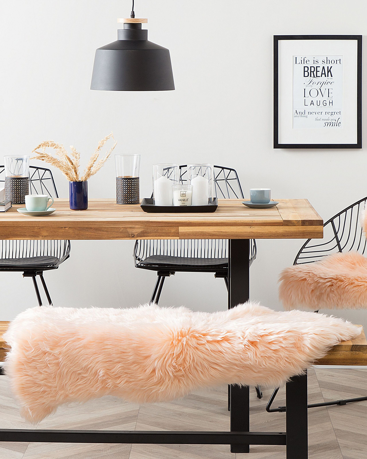 Covor pufos pentru camera de zi. Decorează orice încăpere cu acest covor din blană sintetică de oaie, piersiciu și pufos, care adaugă un plus de confort și rafinament oricărui spațiu. Textura sa delicată transformă fiecare pas într-o experiență plăcută. Completează perfect atmosfera, aducând un aer cald și primitor, ideal pentru living sau dormitor în stil scandinav. Detalii: Tip de Produs: Covor din blană de oaie. Stil: Tradițional. Culoare: Roz. Nuanță: Roz piersică. Material: Piele naturală. Material primar: Piele de oaie. Compoziția materialului: 100% Piele naturală. Formă: Neregulată. Acoperire inferioară din cauciuc: Nu. Model: Culoare solidă. Potrivit pentru încălzire prin pardoseală: Da. Dimensiuni: Grosime: 8 cm. Lățime: 65 cm. Lungime: 100/110 cm. Greutate: 1 kg. Oferta incude: 1 x Covor din lână de oaie. Caracteristici cheie: Potrivit pentru încălzire în pardoseală, Design mereu actualizat, Potrivit pentru orice stil de decor interior, Perfect pentru fiecare cameră, Creează o atmosferă confortabilă, Material natural. Asamblare: Nu necesită asamblare. Informații suplimentare: Din cauza materialului, unele fibre se pot desprinde în timpul utilizării. Totuși, acesta este un proces natural și nu este considerat un defect al produsului. Produsul este natural, așa că fiecare articol poate varia în dimensiune și model. Defectele mici, cutele, diferențele de culoare sau structură și alte trăsături naturale sunt dovezi ale autenticității și nu reprezintă defecte care să justifice o reclamație. După despachetare, articolul are nevoie de aproximativ 72 de ore pentru a căpăta forma dorită. Vă recomandăm să îl desfășurați cât mai curând posibil și să plasați greutăți la capete pentru rezultate optime. Sfaturi de întreținere: 1.Îndepărtați imediat orice pată cu o cârpă umedă care nu-și pierde culoarea. Curățați de la margine spre centrul covorului, nu frecați. 2.Pentru a elimina mirosul specific al materialului natural din care este confecționat covorul, aerisiți produsul timp de câteva ore (ideal 1 sau 2 zile). 3.În cazul în care covorul se udă, lăsați-l să se usuce departe de sursele de căldură. 4.Periați regulat firele covorului cu o perie pentru covoare și tapițerie. Dacă este posibil, evitați aspirarea, deoarece aceasta poate slăbi firele. 5.Pentru a prelungi durata de viață a covorului, nu îl așezați în zone intens circulate. 6.Utilizați numai detergenți recomandați pentru piele sau contactați un expert pentru îndepărtarea petelor dificile. 7.Pentru a îndepărta murdăria și praful liber, scuturați covorul, de preferință afară. Așezați covorul pe o cârpă de bumbac și bateți-l ușor cu mâna. Nu folosiți un bătător de covoare, deoarece poate deteriora pielea delicată. 8.Rotiți periodic covorul la 180 ̊ pentru a asigura o uzură uniformă și pentru a preveni decolorarea cauzată de expunerea la soare.