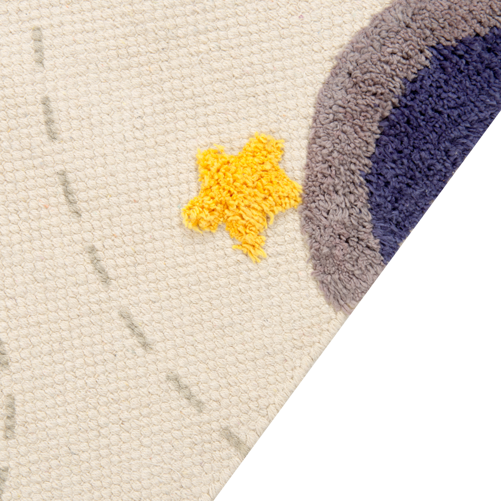 Covor decorativ cu motiv galactic pentru copii. Lasă-ți copilul să pornească într-o călătorie interstelară cu acest covor. Cu un motiv cosmic ce prezintă planete și stele fascinante, stimulează imaginația celor mici. Lucrat manual din bumbac moale și rezistent, oferă o suprafață confortabilă și plăcută pentru joacă. Ideal pentru momentele de învățare și distracție, va fi un accesoriu minunat în camera copilului tău. Detalii: Tip de Produs: Covor pentru camera copilului. Stil: Tradițional. Culoare: Bej. Nuanță: Albastru închis. Material: Țesătură. Material primar: Bumbac. Material secundar: Țesătură. Compoziția materialului: 95% Bumbac. Formă: Rectangulară. Acoperire inferioară din cauciuc: Da. Gram pe metru pătrat: 1150. Model: Imprimeu animalier. Potrivit pentru încălzire prin pardoseală: Nu. Țesut: Taftat manual. Dimensiuni: Grosime: 1.5 cm. Lățime: 80 cm. Lungime: 150 cm. Greutate: 1.4 kg. Oferta incude: 1 x Covor. Caracteristici cheie: Realizat manual cu mare atenție la detalii, Riscul de alunecare redus datorită stratului inferior antiderapant, Culori frumoase și vii, Conceput pentru a competa orice dormitor de copil, Finisaje precise. Asamblare: Nu necesită asamblare. Informații suplimentare: Fiecare piesă este realizată manual și unică, astfel încât textura și culorile pot fi ușor diferite de cele prezentate în fotografie. Tehnica de producție: Tufting-ul manual implică injectarea firelor în suportul covorului cu ajutorul unei ace speciale. În acest proces, firele nu sunt integrate la fel de strâns în suport ca în alte metode (de exemplu, covoarele țesute). Drept urmare, unele fire individuale pot deveni uneori desfăcute. Sfaturi de întreținere: 1.Pentru pete mai dificile, curățați suprafața cu o cârpă de bumbac umedă care nu pătează. Dacă este necesar, folosiți un detergent pentru lână. Nu udați prea mult covorul și uscați-l imediat după curățare. Folosiți numai detergenți pentru covoare. Contactați un expert pentru îndepărtarea petelor dificile. 2.Aspirați o dată pe săptămână la putere medie, folosind un accesoriu pentru tapițerie, în direcția firului covorului. 3.Pentru a elimina mirosul specific al materialului natural din care este confecționat covorul, aerisiți produsul timp de câteva ore ( ideal 1 sau 2 zile). 4.Îndepărtați imediat orice pată cu o cârpă umedă care nu-și pierde culoarea. Ștergeți de la margine spre centrul covorului, nu frecați. 5.Rotiți periodic covorul la 180 ̊ pentru a asigura o uzură uniformă și pentru a preveni decolorarea cauzată de expunerea la soare.