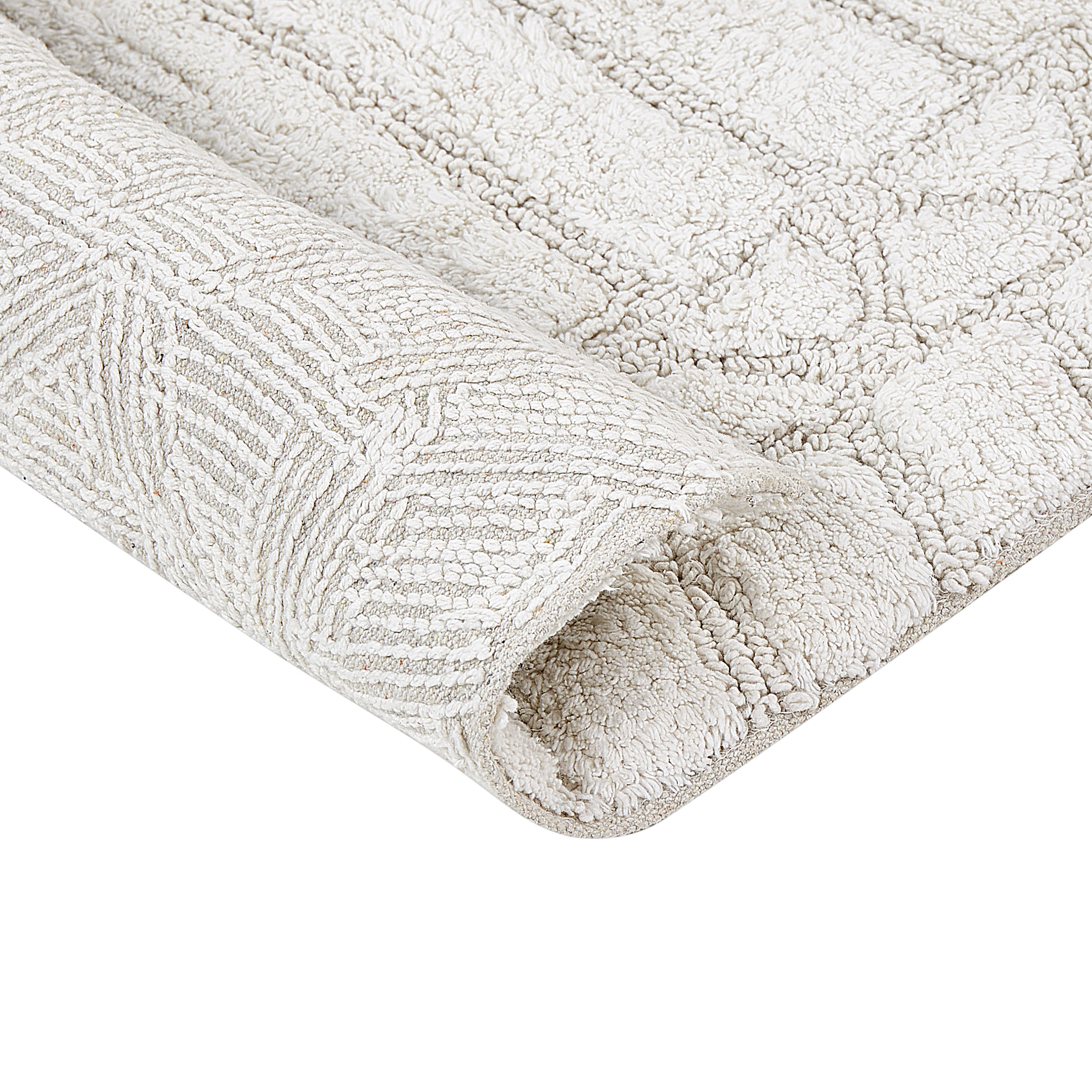 Covor de baie cu design modern. Transformă-ți baia într-un spațiu primitor și elegant cu acest covoraș cu model geometric. Datorită designului și nuanței versatile, este un accesoriu plăcut la atingere și rezistent, ideal pentru interioare amenajate în diverse stiluri. Întreținerea este foarte ușoară, fiind compatibil cu spălarea la mașină. Completează-ți rutina cu o piesă practică, ce adaugă confort și rafinament decorului. Detalii: Tip de Produs: Covoraș de baie. Stil: Modern. Culoare: Bej. Nuanță: Bej deschis. Material: Țesătură. Material primar: Bumbac. Compoziția materialului: 100% Bumbac. Formă: Rectangulară. Acoperire inferioară din cauciuc: Nu. Gram pe metru pătrat: 1700. Model: Imprimeu geometric. Potrivit pentru încălzire prin pardoseală: Da. Țesut: Taftat. Dimensiuni: Grosime: 1 cm. Lățime: 60 cm. Lungime: 90 cm. Greutate: 1 kg. Oferta incude: 1 x Covoraș de baie. Caracteristici cheie: Incredibil de moale, Design modern, Creează o atmosferă confortabilă, Se adaptează la orice stil de interior, Materiale de cea mai bună calitate. Asamblare: Nu necesită asamblare. Informații suplimentare: După despachetare, articolul are nevoie de aproximativ 72 de ore pentru a căpăta forma dorită. Vă recomandăm să îl desfășurați cât mai curând posibil și să plasați greutăți la capete pentru rezultate optime. Sfaturi de întreținere: 1.Aspirați o dată pe săptămână la putere medie, folosind un accesoriu pentru tapițerie, în direcția firului covorului. 2.Rotiți periodic covorul la 180 ̊ pentru a asigura o uzură uniformă și pentru a preveni decolorarea cauzată de expunerea la soare. 3.Îndepărtați imediat orice pată cu o cârpă umedă care nu-și pierde culoarea. Ștergeți de la margine spre centrul covorului, nu frecați. 4.Pentru pete mai dificile, curățați suprafața cu o cârpă de bumbac umedă care nu pătează. Dacă este necesar, folosiți un detergent pentru lână. Nu udați prea mult covorul și uscați-l imediat după curățare. Folosiți numai detergenți pentru covoare. Contactați un expert pentru îndepărtarea petelor dificile. 5.Pentru a elimina mirosul specific al materialului natural din care este confecționat covorul, aerisiți produsul timp de câteva ore ( ideal 1 sau 2 zile).