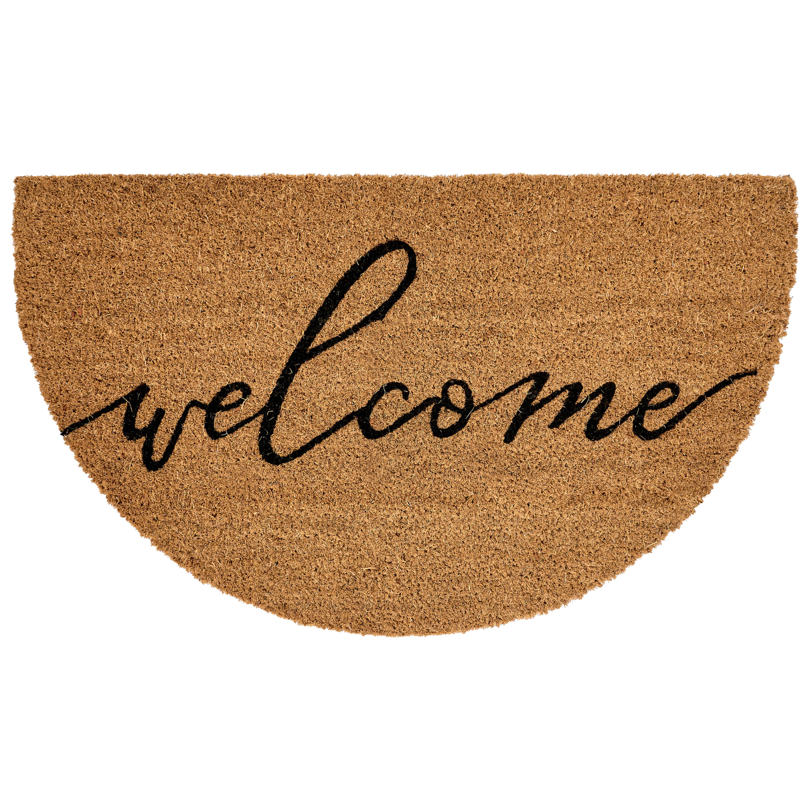 Covoraș antiderapant. Acest covoraș clasic combină funcționalitatea cu eleganța minimalistă datorită formei sale simple semirotunde și textului „welcome”. Fibra de cocos durabilă curăță eficient murdăria și umezeala de pe încălțăminte, iar sistemul antiderapant îl menține fixat pe loc, fiind alegerea perfectă pentru orice ușă de intrare. Detalii: Tip de Produs: Covoraș intrare. Stil: Tradițional. Culoare: Natural. Material: Țesătură. Material primar: Fibră de nucă de cocos. Material de bază: PVC. Compoziția materialului: 100% Fibre de cocos. Formă: Semicirculară. Acoperire inferioară din cauciuc: Da. Model: Scris. Țesut: Taftat. Dimensiuni: Grosime: 1.25 cm. Lățime: 45 cm. Lungime: 75 cm. Greutate: 2 kg. Oferta incude: 1 x Covor intrare. Caracteristici cheie: Riscul de alunecare redus datorită stratului inferior antiderapant, Design mereu actualizat, Mobilier decorativ și funcțional, Materiale de cea mai bună calitate, Ușor de curățat. Asamblare: Nu necesită asamblare. Sfaturi de întreținere: Fibră de nucă de cocos: Scuturați-l în mod regulat pentru a îndepărta murdăria reziduală. Pentru o curățare mai profundă, covorașul poate fi aspirat. Pentru a păstra integritatea și aspectul fibrelor naturale, acest preș nu trebuie spălat.