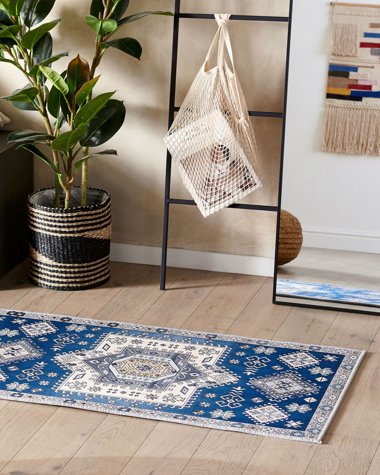 Covor modern cu model geometric pentru hol. Această traversă modernă, decorată cu un model geometric deosebit, va îmbunătăți aspectul holului tău, adăugând un accent primitor și confortabil. Moale și plăcută la atingere, este prevăzută cu un strat antiderapant pentru un plus de siguranță. Datorită firelor scurte, praful nu se fixează în țesătură, ceea ce o face ușor de curățat. Detalii: Tip de Produs: Covoraș lung. Stil: Tradițional. Culoare: Albastru. Nuanță: Albastru deschis. Material: Țesătură. Material primar: Poliester. Material de bază: Poliester. Compoziția materialului: 100% Poliester. Formă: Rectangulară. Acoperire inferioară din cauciuc: Da. Gram pe metru pătrat: 180. Model: Imprimeu geometric. Potrivit pentru încălzire prin pardoseală: Da. Țesut: Țesut la mașină. Dimensiuni: Grosime: 1 cm. Lățime: 60 cm. Lungime: 200 cm. Greutate: 1.2 kg. Oferta incude: 1 x Covor. Caracteristici cheie: Potrivit pentru încălzire în pardoseală, Riscul de alunecare redus datorită stratului inferior antiderapant, Piesă cu accent atrăgător, Motiv decorativ remarcabil, Materiale ușor de întreținut și durabile. Asamblare: Nu necesită asamblare. Informații suplimentare: După despachetare, articolul are nevoie de aproximativ 72 de ore pentru a căpăta forma dorită. Vă recomandăm să îl desfășurați cât mai curând posibil și să plasați greutăți la capete pentru rezultate optime. Sfaturi de întreținere: 1.Aspirați o dată pe săptămână la putere medie, folosind un accesoriu pentru tapițerie, în direcția firului covorului. 2.Pentru a elimina mirosul specific al materialului natural din care este confecționat covorul, aerisiți produsul timp de câteva ore ( ideal 1 sau 2 zile). 3.Îndepărtați imediat orice pată cu o cârpă umedă care nu-și pierde culoarea. Ștergeți de la margine spre centrul covorului, nu frecați. 4.Rotiți periodic covorul la 180 ̊ pentru a asigura o uzură uniformă și pentru a preveni decolorarea cauzată de expunerea la soare. 5.Pentru pete mai dificile, curățați suprafața cu o cârpă de bumbac umedă care nu pătează. Dacă este necesar, folosiți un detergent pentru lână. Nu udați prea mult covorul și uscați-l imediat după curățare. Folosiți numai detergenți pentru covoare. Contactați un expert pentru îndepărtarea petelor dificile.