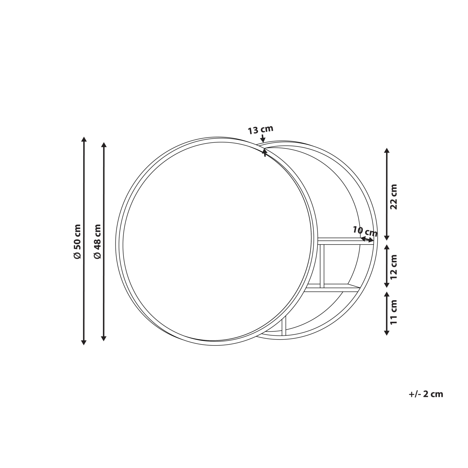 Dulap rotund din lemn cu oglindă deasupra lavoarului. Acest dulap rotund pentru baie, prevăzut cu oglindă, îmbină stilul cu funcționalitatea. Fabricat din bambus durabil, dispune de trei compartimente interioare pentru depozitarea articolelor de toaletă și a obiectelor mici. Ușa glisantă cu oglindă permite acces facil și economisește spațiu, fiind atât o soluție practică de depozitare, cât și o oglindă funcțională. O completare compactă și modernă, perfectă pentru orice baie. Detalii: Tip de Produs: Dulap de baie cu oglindă. Stil: Modern. Culoare: Negru. Material: Lemn. Material primar: Lemn de bambus. Material secundar: Sticlă. Număr de rafturi: 3. Deschiderea ușilor: Culisant. Sertare: Nu. Finisaj: Vopsit. Sistem de blocare cu chei: Nu. Numărul de uși: 1. Rafturi: Da. Dimensiuni: Adâncime: 13 cm. Lățime: 50 cm. Înălțime: 50 cm. Greutate: 6 kg. Capacitatea maximă: 3 kg. Oferta incude: 1 x Dulap de perete. Caracteristici cheie: Mobilier decorativ și funcțional, Design modern, Materiale de cea mai bună calitate, Spațiu de depozitare suplimentar, Montare sigură și stabilă. Asamblare: Nu necesită asamblare. Sfaturi de întreținere: Lemn de bambus: 1.Curățați cu un detergent delicat și o cârpă moale, urmând direcția fibrelor. 2.Ștergeți imediat după curățare pentru a preveni acumularea apei pe produs. 3.Pentru a păstra mobila finisată cu ulei în stare bună, este necesar să o ungeți cu ulei după un timp. Sticlă: 1.Curățați-l cu un detergent delicat sau cu un detergent pentru sticlă, folosind o cârpă moale. Uscați imediat după curățare. 2.Pentru a evita zgârieturile, nu folosiți creme de curățare.