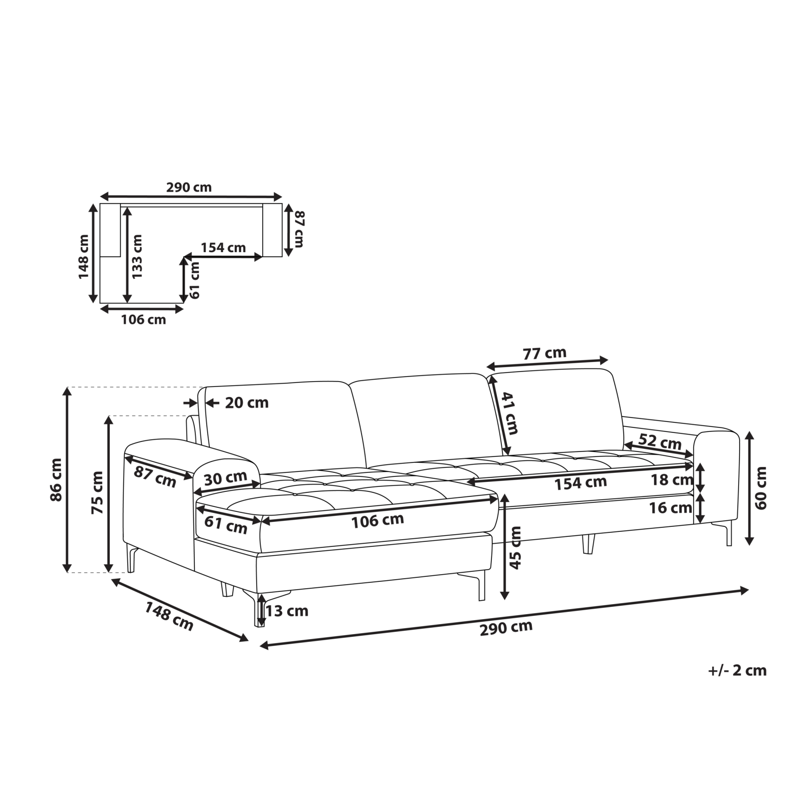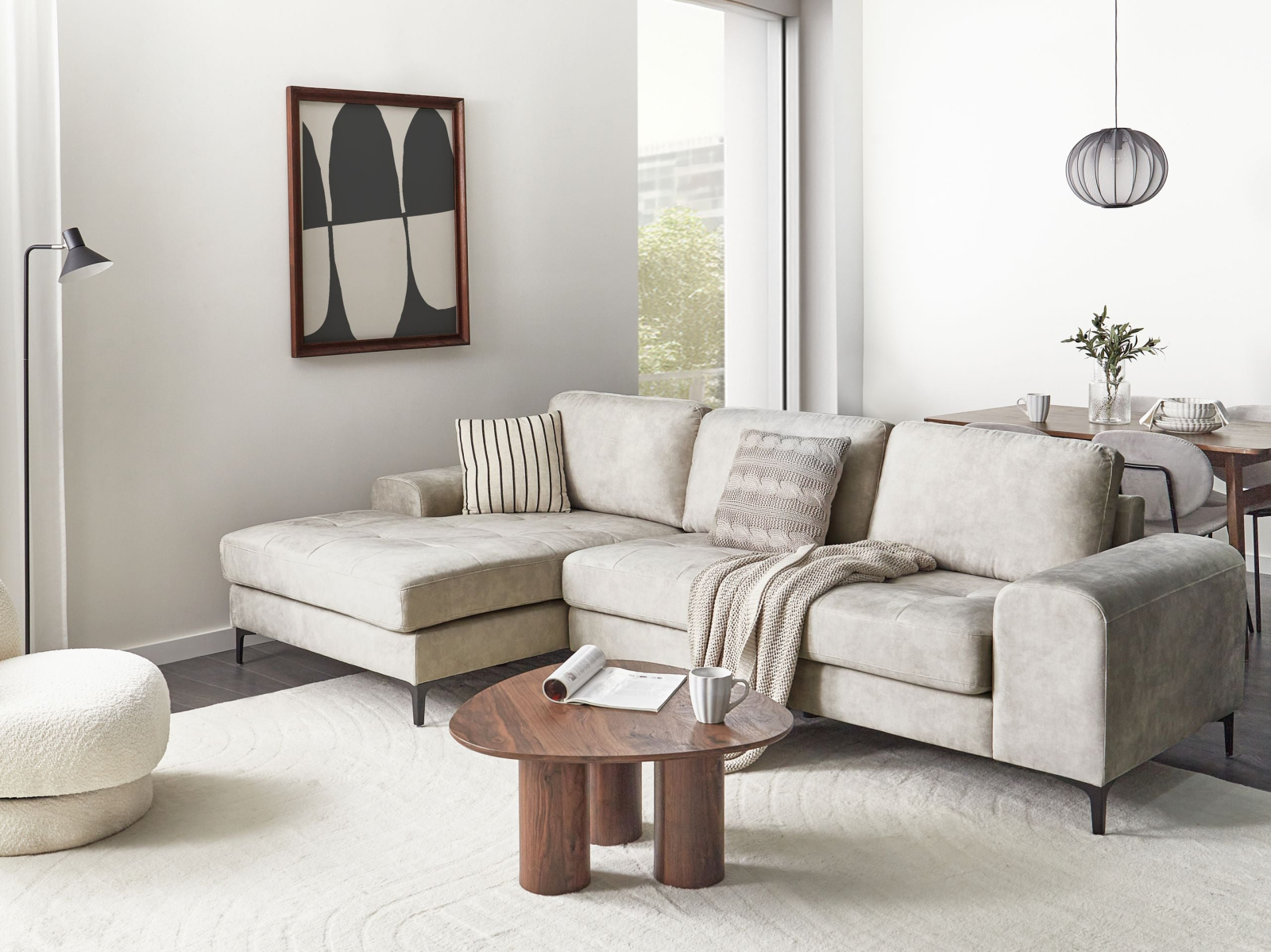 MAXISHOP Italia Collection 4-seater corner sofa KIRUNA Velvet Light beige Right