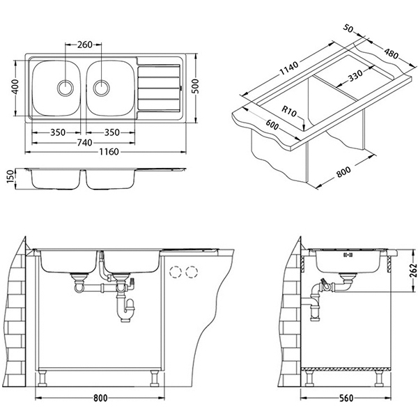 Tank size, mm: