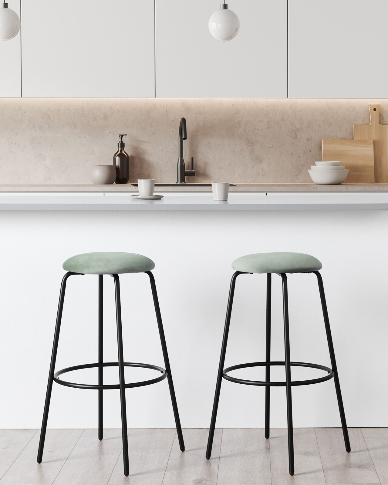 MAXISHOP Italia Collection Set of 2 Bar Stools MORTON Velvet Mint Green