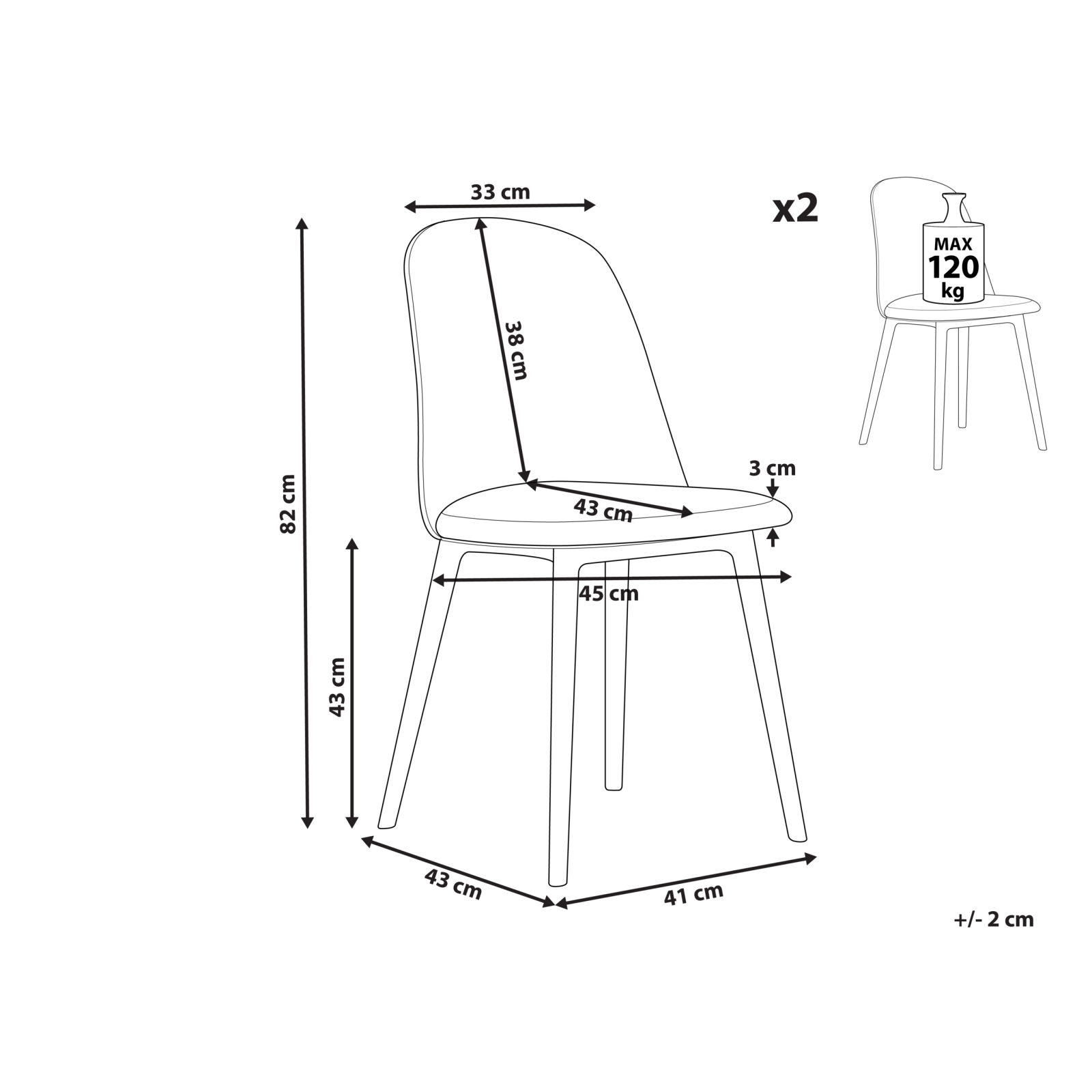 MAXISHOP Italia Collection Set of 2 dining chairs FOMBY Light Blue