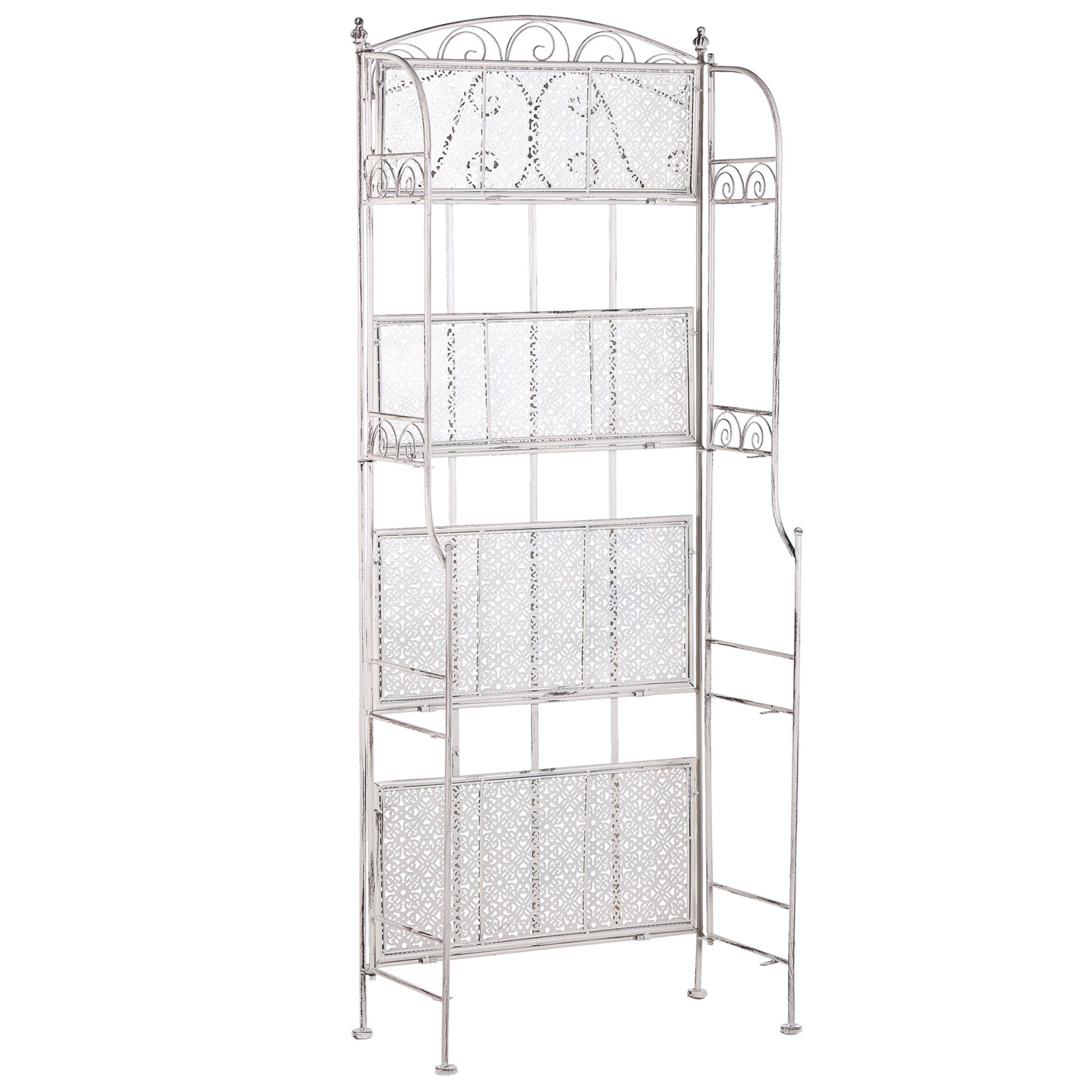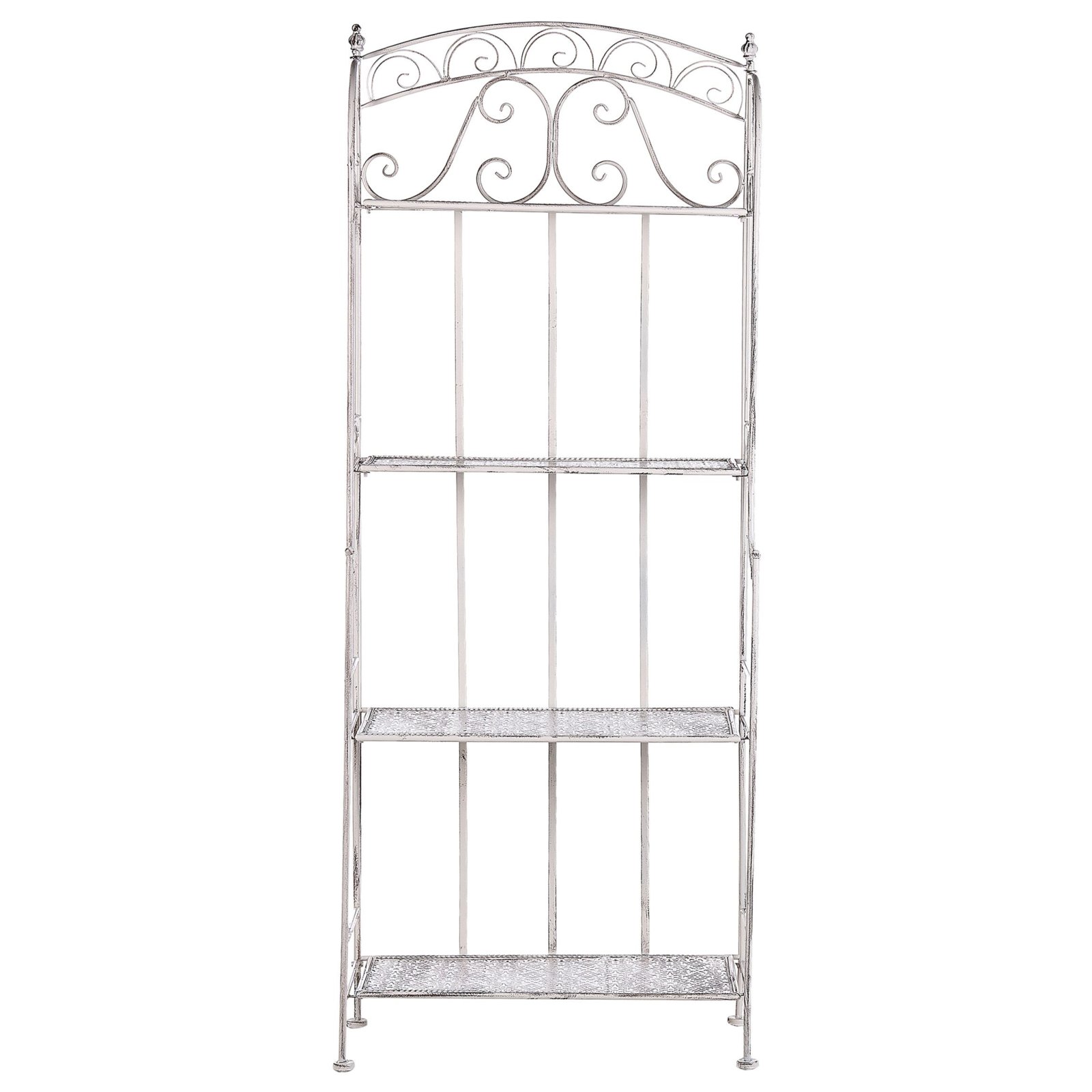 Etajeră pentru plante de grădină. Această unitate de depozitare pentru grădină reprezintă soluția ideală pentru a adăuga un plus de stil și organizare în orice spațiu exterior sau interior. Cu 4 rafturi robuste, îți oferă posibilitatea de a-ți expune plantele și accesoriile preferate într-un mod elegant și practic. Vopsirea prin pulverizare asigură durabilitate și protecție împotriva ruginii, iar designul său sofisticat, cu accente ornamentale, conferă un aer nostalgic și rafinat oricărei grădini sau terase. Alege această etajeră pentru a crea un decor armonios, funcțional și plin de caracter. Detalii: Tip de Produs: Etajeră pentru baie. Stil: Retro. Culoare: Alb. Nuanță: Alb-murdar. Material: Metal. Material primar: Fier. Finisaj: Acoperire pulverizată. Dimensiuni: Adâncime: 32 cm. Lățime: 61 cm. Înălțime: 156 cm. Greutate: 10 kg. Capacitatea de greutate: 40 kg. Oferta incude: 1 x Unitate de depozitare cu rafturi. Caracteristici cheie: Raft deschis pentru acces ușor, Stil retro, Excepțional de ușor de întreținut, Construcție robustă. Asamblare: Nu necesită asamblare. Informații suplimentare: Efectul imperfect, îmbătrânit sau pătat al acestui produs este intenționat și nu reprezintă un defect de fabricație. Sfaturi de întreținere: Metal: 1.Curățați cu apă cu săpun și detergenți delicați disponibili în comerț. Îndepărtați praful cu o cârpă moale. 2.În extra-sezon, folosiți o husă de protecție sau depozitați mobilierul într-un loc răcoros și uscat.