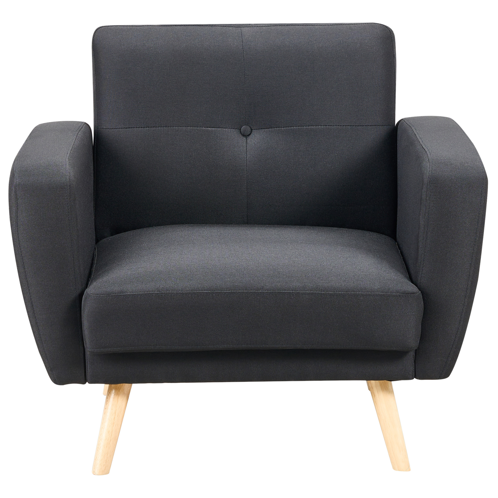 Fotoliu confortabil negru. Această fotoliu inspirat din stilul retro, de culoare neagră, oferă combinația perfectă între funcționalitate și stil. Cu un șezut larg și generos căptușit, plus un spătar ajustabil, asigură o experiență confortabilă pentru odihnă. Designul elegant al fotoliului include o tapițerie din material durabil, finisată cu butoane stilate, și picioare din lemn înclinate, aducând un plus de rafinament oricărui interior. Detalii: Tip de Produs: Fotoliu. Stil: Retro. Culoare: Negru. Material: Țesătură. Material primar: Țesătură. Material secundar: Lemn de cauciuc. Căptușeală: Spumă. Detalii material picioare: Lemn. Material scaun: Țesătură. Compoziția materialului: 100% Poliester. Stilul cotierei: Liniar. Cotiere: Da. Protecții pentru picioare incluse: Da. Model: Culoare solidă. Reclinabil: Da. Structura scaunului: Arcuri ondulate. Densitatea pernei scaunului: 22 kg/m3. Dimensiuni: Înălțimea cotierei: 61 cm. Adâncime: 85 cm. Grosimea scaunului: 15 cm. Înălțimea scaunului: 41 cm. Lățime: 89 cm. Înălțime: 82 cm. Suprafața de ședere: 63x59 cm. Greutate: 24 kg. Capacitatea de greutate: 150 kg. Oferta incude: 1 x Fotoliu. Caracteristici cheie: Stil minimalist scandinav, Decorată cu un tuft cu buton, Tapițerie din țesătură de înaltă calitate, Capace pentru picioare pentru protecția suprafeței, Spătar reglabil. Asamblare: Necesită asamblare parțială.20-40 min. Informații suplimentare: Pentru a facilita transportul, picioarele au fost plasate într-un buzunar sub scaun. Pentru o stabilitate și siguranță maximă în utilizare, se recomandă să verificați la aproximativ 2 săptămâni după instalare dacă produsul a fost asamblat corect. De asemenea, se recomandă să verificați dacă șuruburile sunt strânse corect, o dată la 3 luni. Sfaturi de întreținere: Țesătură: 1.Aspirati folosind un accesoriu potrivit. 2.Vă rugăm să curățați cu un șampon uscat și un burete umed sau cu un detergent ușor. Lemn de eucalipt: 1.Ștergeți imediat după curățare pentru a preveni acumularea apei pe produs. 2.Curățați cu un detergent delicat și o cârpă moale, urmând direcția fibrelor. 3.Pentru a păstra mobila finisată cu ulei în stare bună, este necesar să o ungeți cu ulei după un timp.