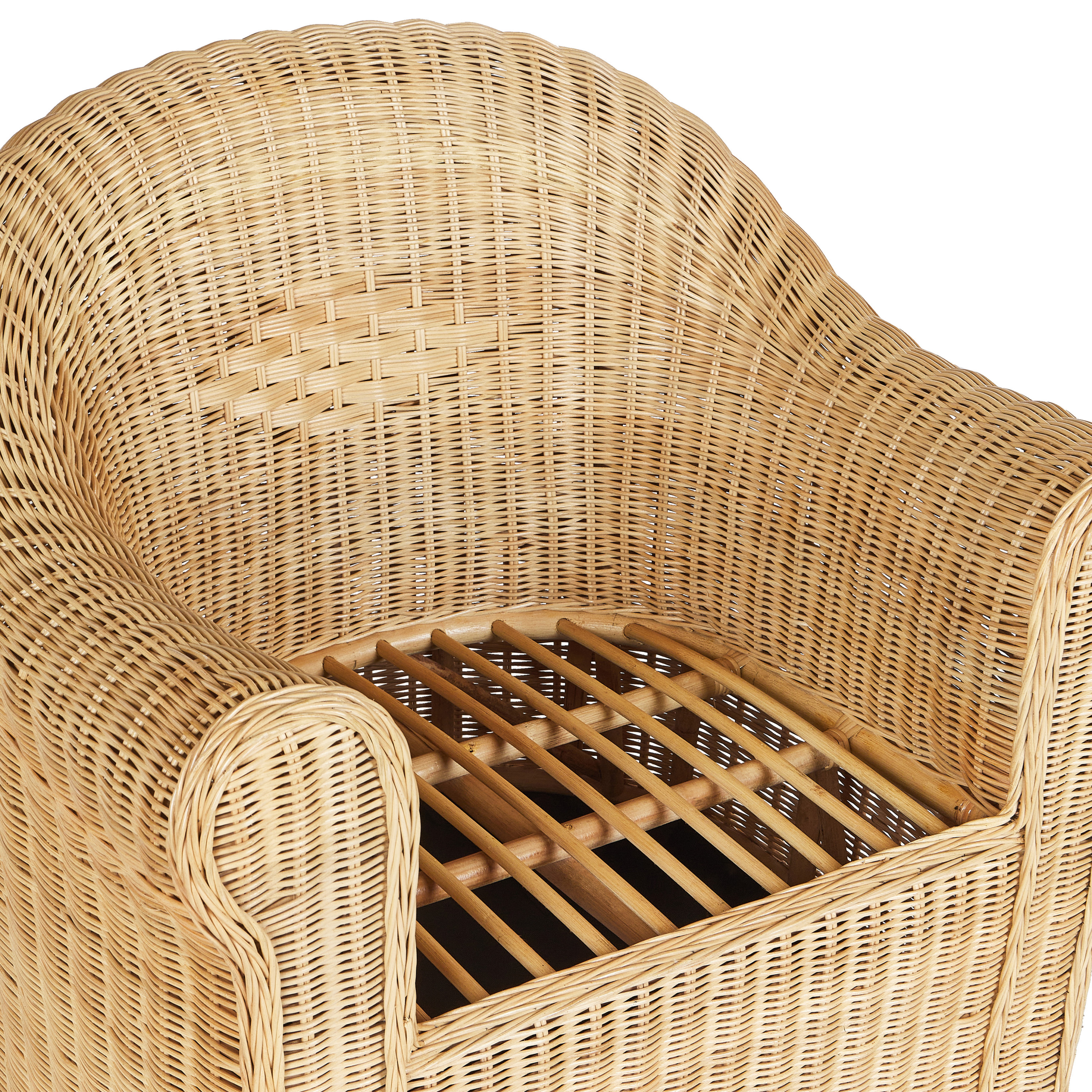 Fotoliu pentru exterior în stil boho. Împrospătează-ți spațiul cu acest fotoliu boho, perfect pentru a adăuga o notă de eleganță naturală în casa ta. Realizat din ratan durabil, nu doar că adaugă un aer vintage, dar creează o atmosferă primitoare și plină de liniște. Perna groasă și confortabilă transformă fiecare moment, fie că savurezi o cană de ceai sau petreci timp de calitate alături de prieteni și familie. Lasă-te cucerit de farmecul atemporal al acestei piese de mobilier, care aduce un plus de stil pe terasa ta, fiind ușor de întreținut și mereu gata să îți ofere momente de relaxare. Detalii: Tip de Produs: Fotoliu. Stil: Boho. Culoare: Natural. Material: Ratan. Material primar: Ratan. Material secundar: Bumbac. Detalii material picioare: Ratan. Material scaun: Țesătură. Compoziția materialului: 70% Bumbac. Cotiere: Da. Pliabil: Nu. Densitatea pernei scaunului: 23 kg/m3. Stivuire: Nu. Dimensiuni: Adâncime: 75 cm. Grosimea scaunului: 12 cm. Înălțimea scaunului: 35 cm. Lățime: 90 cm. Înălțime: 82 cm. Suprafața de ședere: 56x52 cm. Greutate: 13 kg. Capacitatea de greutate: 80 kg. Oferta incude: 1 x Fotoliu, 1 x Pernă pentru șezut. Caracteristici cheie: Un loc excelent pentru relaxare, Ideal pentru grădini sau spații exterioare cu un aer modern, Materiale de cea mai bună calitate, Finisaje precise, Perne detașabile pentru o curățare ușoară. Asamblare: Nu necesită asamblare. Informații suplimentare: Vă rugăm să rețineți că produsul este sensibil la condițiile meteorologice și trebuie păstrat în interior sau într-un loc acoperit și moderat, atunci când nu este folosit. Nu este recomandat să lăsați mobilierul doar sub o copertină de exterior în timpul anotimpurilor reci. Vă recomandăm să păstrați mobilierul în interior, într-un loc răcoros și uscat. Vă rugăm să rețineți că fiecare produs este realizat manual. Pot exista mici diferențe de textură, culoare sau formă datorită caracteristicilor materialelor folosite, iar acestea nu vor fi considerate defecte. Pentru acest produs, oferim un ghid detaliat de îngrijire, pentru ca mobilierul să arate la fel de bine și după mulți ani. Consultați instrucțiunile și sfaturile de întreținere în secțiunea „Ambalare și Asamblare” de mai jos. Descriere: Produsul este fabricat din materiale foarte rezistente la pete, astfel încât murdăria nu se va infiltra în produs și va fi ușor de îndepărtat. Atunci când îndepărtați petele, vă rugăm să urmați manualul de îngrijire a produsului. Rezistență: Pătare. Sfaturi de întreținere: Ratan: 1.Mobila trebuie depozitată în interior atunci când nu este utilizată. 2.Evitați expunerea prelungită la lumina directă puternică a soarelui, precum și contactul cu umiditatea și ploaia. 3.Curățați cu o cârpă umedă și moale, apoi ștergeți întotdeauna cu o lavetă uscata.