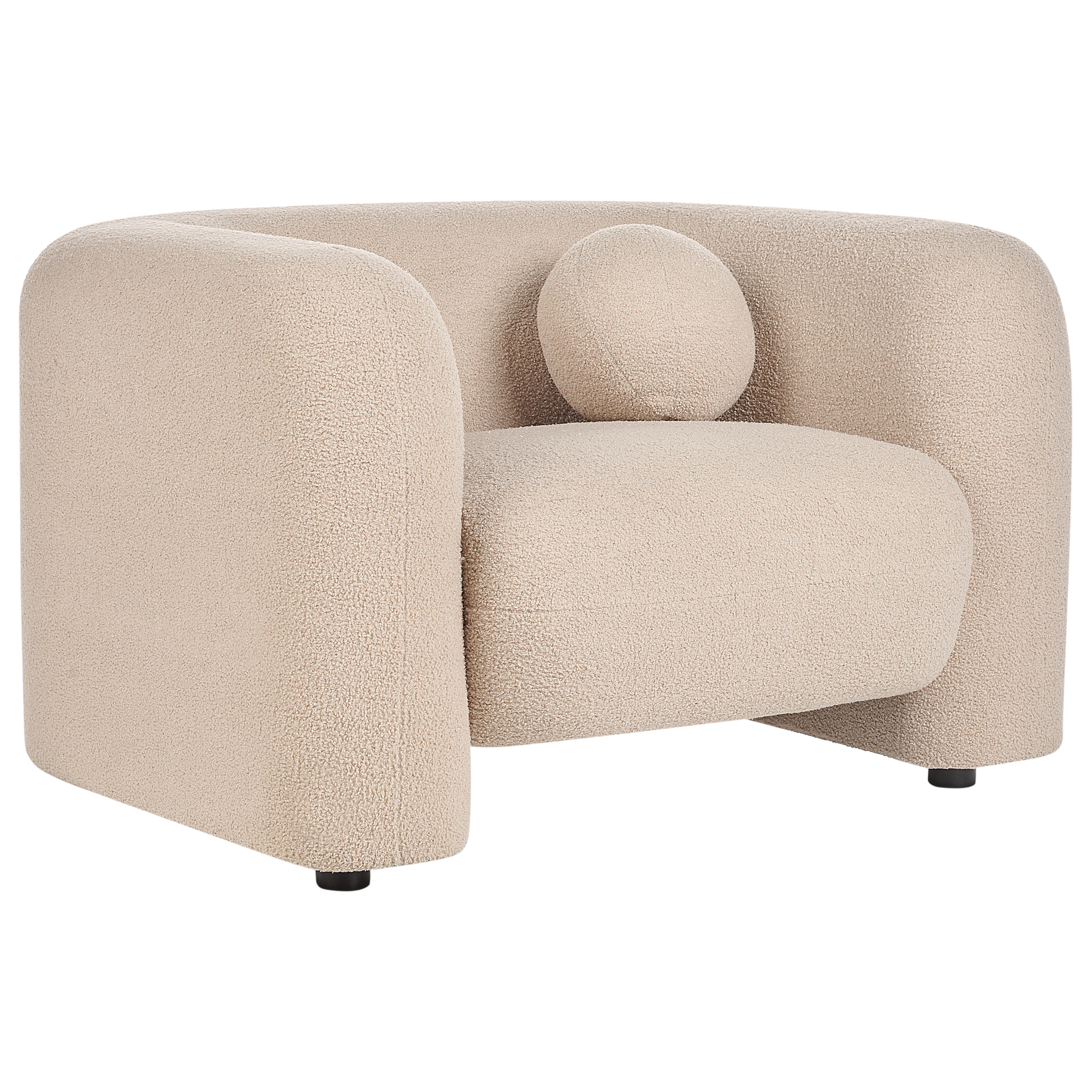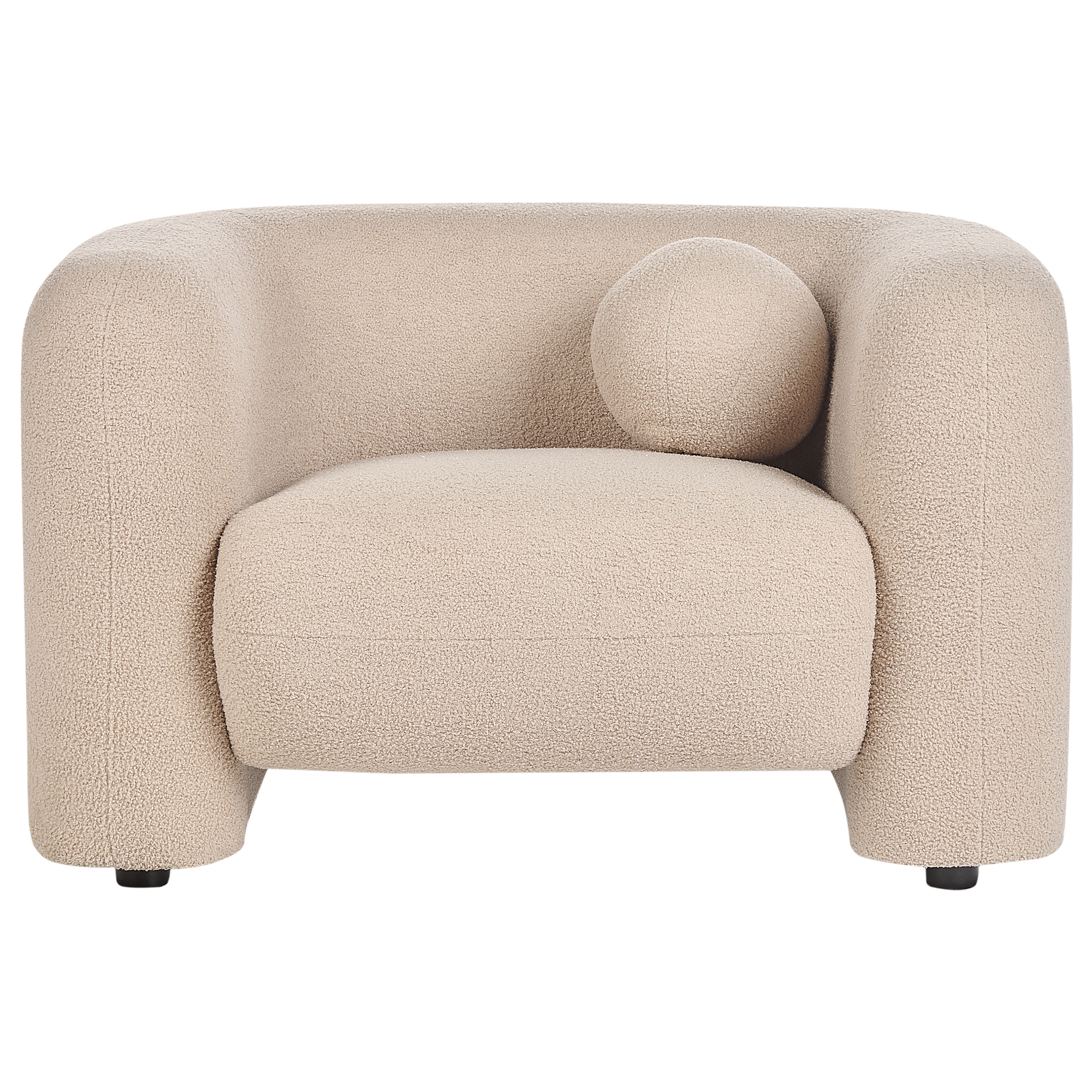 Fotoliu cu design clasic. Adaugă o notă de farmec sufrageriei tale cu acest fotoliu, realizat din țesătură de înaltă calitate. Scaunul tapițat oferă un confort maxim, în timp ce picioarele ușor curbate atrag atenția și asigură stabilitate. Este ideal pentru interioarele clasice, eclectice sau retro. Detalii: Tip de Produs: Fotoliu. Stil: Retro. Culoare: Bej. Material: Țesătură. Material primar: Boucle. Material secundar: Lemn de eucalipt. Căptușeală: Spumă. Detalii material picioare: Lemn. Material scaun: Țesătură. Compoziția materialului: 100% Poliester. Stilul cotierei: Liniar. Cotiere: Da. Protecții pentru picioare incluse: Nu. Model: Culoare solidă. Reclinabil: Nu. Structura scaunului: Curea elastică. Densitatea pernei scaunului: 24 kg/m3. Dimensiuni: Adâncime: 87 cm. Grosimea scaunului: 6 cm. Înălțimea scaunului: 46 cm. Lățime: 111 cm. Înălțime: 68 cm. Suprafața de ședere: 64x59 cm. Greutate: 34 kg. Capacitatea de greutate: 150 kg. Oferta incude: 1 x Fotoliu, 1 x Pernă. Caracteristici cheie: Formă curbată pentru a maximiza confortul, Un loc excelent pentru relaxare, Incredibil de moale, Design clasic, Tapițerie din țesătură de înaltă calitate. Asamblare: Picioare neasamblate.5-15 min. Informații suplimentare: Pentru o stabilitate și siguranță maximă în utilizare, se recomandă să verificați la aproximativ 2 săptămâni după instalare dacă produsul a fost asamblat corect. De asemenea, se recomandă să verificați dacă șuruburile sunt strânse corect, o dată la 3 luni. Rețineți că țesătura de catifea poate avea un aspect puțin diferit atunci când este expusă la lumină; tinde să fie mai strălucitoare și mai luminoasă în lumina soarelui, în timp ce în lumină artificială are un ton diferit, mai închis. Datorită tipului de țesătură, tonul catifelei poate varia, de asemenea, atunci când este atinsă din direcții diferite. Pentru a uniformiza culoarea și a scăpa de lovituri și cute, materialul trebuie mângâiat cu palma deschisă într-o singură direcție, frecat cu o cârpă umedă sau călcat cu abur. Sfaturi de întreținere: Boucle: 1.Vă rugăm să curățați cu un șampon uscat și un burete umed sau cu un detergent ușor. 2.Aspirati folosind un accesoriu potrivit.