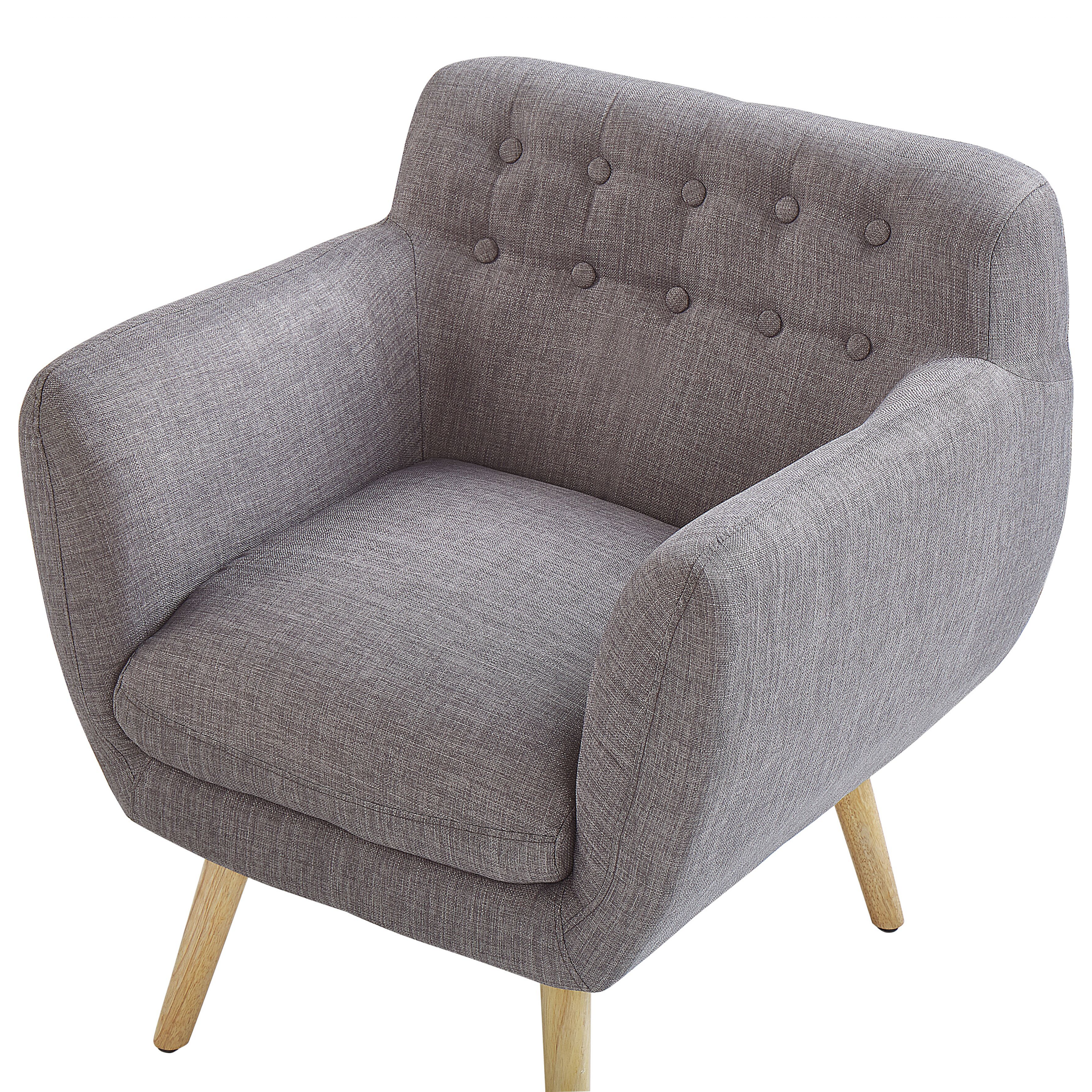 Fotoliu tapițat în stil retro. Decorează-ți livingul cu acest fotoliu deosebit. Realizat cu măiestrie din lemn masiv de cauciuc și poliester, impresionează prin calitatea materialelor și atenția la detalii. Scaunul spațios, moale și adânc, cu spătar capitonat cu nasturi și brațe înalte, te îmbie la relaxare deplină după o zi agitată. Ideal pentru interioare cu decor retro-modern sau eclectic. Transformă-ți spațiul într-o oază de liniște și rafinament! Detalii: Tip de Produs: Fotoliu. Stil: Retro. Culoare: Gri. Nuanță: Gri deschis. Material: Țesătură. Material primar: Țesătură. Material secundar: Lemn de cauciuc. Căptușeală: Spumă. Detalii material picioare: Lemn. Material scaun: Țesătură. Compoziția materialului: 100% Poliester. Stilul cotierei: Integrat. Cotiere: Da. Protecții pentru picioare incluse: Da. Model: Culoare solidă. Reclinabil: Nu. Structura scaunului: Arcurile elicoidale. Densitatea pernei scaunului: 28 kg/m3. Dimensiuni: Înălțimea cotierei: 63 cm. Adâncime: 68 cm. Grosimea scaunului: 11 cm. Înălțimea scaunului: 44 cm. Lățime: 59 cm. Înălțime: 77 cm. Suprafața de ședere: 42x47 cm. Greutate: 13 kg. Capacitatea de greutate: 160 kg. Oferta incude: 1 x Fotoliu. Caracteristici cheie: Scaun gros pentru confort maxim, Potrivit pentru orice stil de decor interior, Decorată cu un tuft cu buton, Tapițerie din țesătură de înaltă calitate, Capace pentru picioare pentru protecția suprafeței. Asamblare: Picioare neasamblate.5-15 min. Informații suplimentare: Pentru o stabilitate și siguranță maximă în utilizare, se recomandă să verificați la aproximativ 2 săptămâni după instalare dacă produsul a fost asamblat corect. De asemenea, se recomandă să verificați dacă șuruburile sunt strânse corect, o dată la 3 luni. Trebuie remarcat faptul că lemnul este un material natural și, prin urmare, fiecare obiect din lemn diferă de celelalte. Diferențele de culoare și de textură a suprafeței (noduri de lemn, dungi etc.) sunt caracteristici intrinseci ale materialului și, prin urmare, nu sunt considerate defecte ale produsului. Sfaturi de întreținere: Țesătură: 1.Aspirati folosind un accesoriu potrivit. 2.Vă rugăm să curățați cu un șampon uscat și un burete umed sau cu un detergent ușor. Lemn de cauciuc: 1.Ștergeți imediat după curățare pentru a preveni acumularea apei pe produs. 2.Curățați cu un detergent delicat și o cârpă moale, urmând direcția fibrelor. 3.Pentru a păstra mobila finisată cu ulei în stare bună, este necesar să o ungeți cu ulei după un timp.