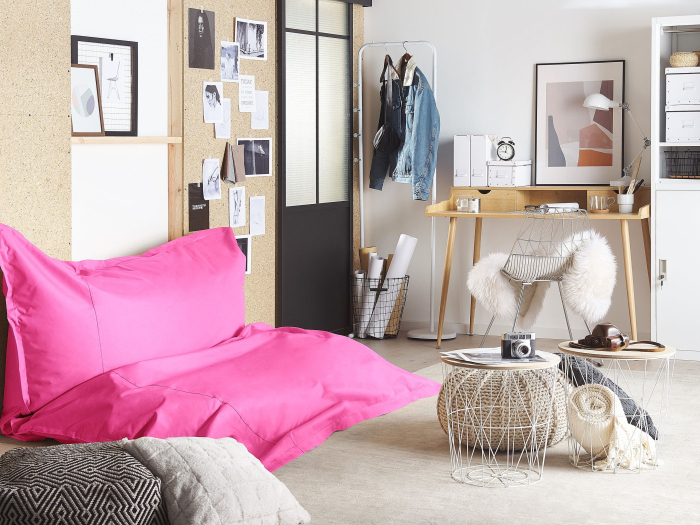 Fotoliu puf confortabil în formă de pernă. Relaxează-te în orice spațiu, interior sau exterior, cu acest fotoliu puf de dimensiuni mari, creat să ofere confort maxim și susținere personalizată. Confecționat din material durabil, rezistent la apă, asigură utilizare fără griji în orice condiții. Umplutura moale și hipoalergenică se mulează perfect pe corp, transformând fiecare clipă într-un moment de liniște și o experiență plăcută. Spațios și ușor de mutat, devine companionul ideal pentru momente speciale alături de familie și prieteni. Detalii: Tip de Produs: Fotoliu puf. Stil: Retro. Culoare: Roz. Nuanță: Roz fucsia. Material: Țesătură. Material primar: Nailon. Material secundar: Bile din polistiren. Compoziția materialului: 100% Nailon. Model: Culoare solidă. Recomandat pentru: Persoane cu probleme de spate. Capacitate: 600. Dimensiuni: Adâncime: 230 cm. Lățime: 180 cm. Înălțime: 20 cm. Greutate: 14 kg. Capacitatea de greutate: 130 kg. Oferta incude: 1 x Husă fotoliu, 1 x bile de polistiren (EPS). Caracteristici cheie: Perfect pentru copii și adulți, potrivit atât pentru o persoană, cât și pentru mai mulți utilizatori, Husă detașabilă, Suprafață de șezut largă și confortabilă, Ideal atât pentru dormitor, cât și pentru camera de zi, Materiale de cea mai bună calitate, Finisajul rezistent la apă permite ca orice vărsare să rămână pe suprafață, Numeroase aplicații posibile. Asamblare: Necesită asamblare parțială.5-15 min. Informații suplimentare: Sacul de fasole este umplut cu granule de polistiren, astfel încât se adaptează perfect la forma corpului. Acest material, care este lipsit de substanțe nocive, este întotdeauna bine distribuit și rezistent la utilizarea zilnică pe o perioadă lungă de timp. Datorită închiderii cu fermoar, volumul scaunului poate fi ajustat în orice moment, iar polistirenul suplimentar poate fi achiziționat în funcție de necesități. Sfaturi de întreținere: Nailon: 1.Spălați numai manual, folosind apă rece și un detergent delicat. Spălați pe fața materialului, cu fermoarul închis. 2.Nu se usucă la mașina de uscat și nu se calcă. 3.Când nu este utilizat, păstrați-l într-un loc curat și uscat pentru a-l proteja de condițiile atmosferice.