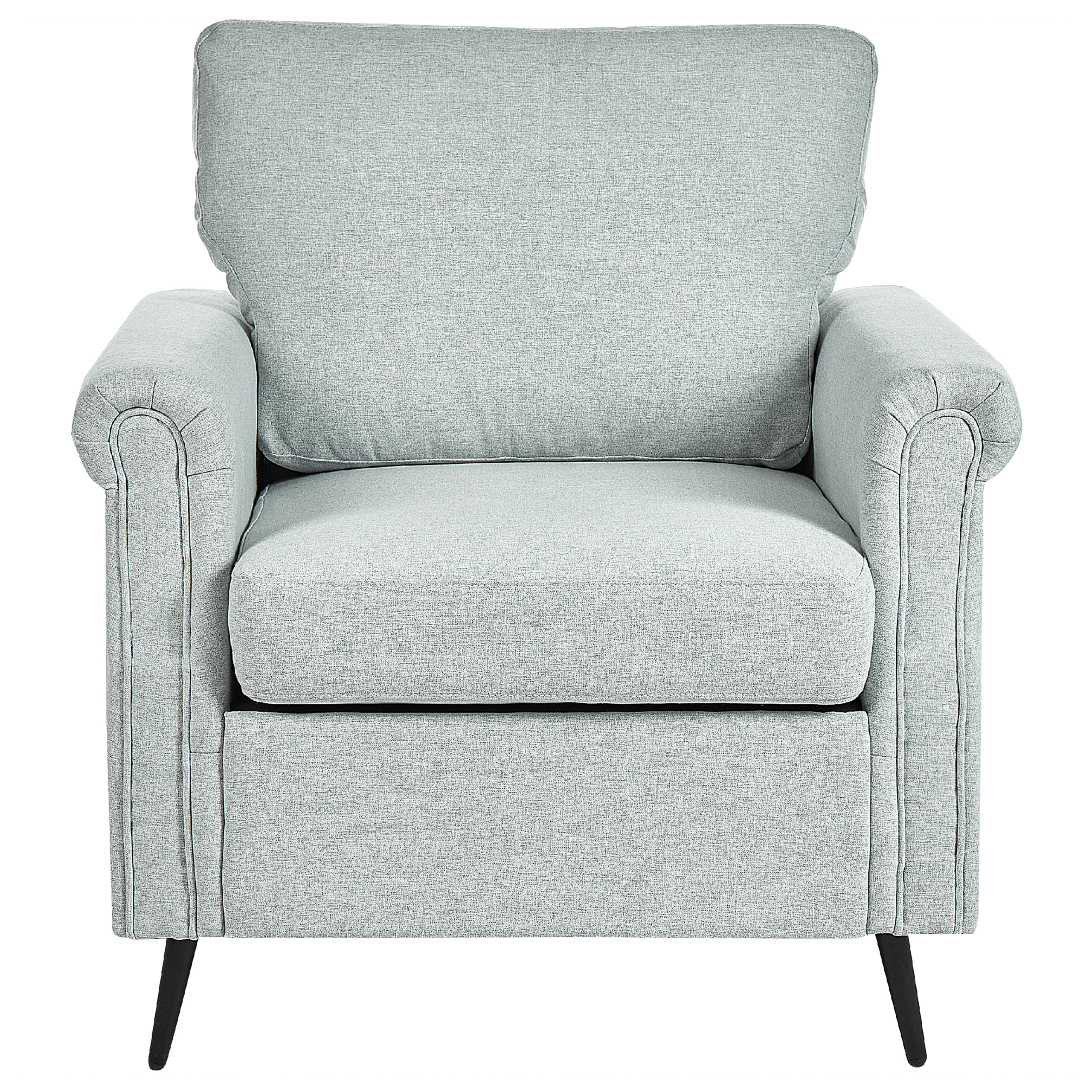 Fotoliu glam cu accente retro. Adaugă o notă rafinată de glamour livingului tău cu acest fotoliu deosebit. Designul minimalist, cu influențe retro, aduce un aer sofisticat, potrivit atât pentru decoruri moderne, cât și clasice. Tapițeria din țesătură moale, cu un luciu discret, evidențiază eleganța piesei, iar structura din lemn asigură durabilitate în timp. Pernele groase, bine căptușite, oferă un nivel ridicat de confort, iar husele detașabile sunt ușor de întreținut, pentru un plus de stil, fără efort. Detalii: Tip de Produs: Fotoliu. Stil: Retro. Culoare: Gri. Nuanță: Gri deschis. Material: Țesătură. Material primar: Țesătură. Material secundar: Fier. Căptușeală: Spumă. Detalii material picioare: Metal. Material scaun: Țesătură. Compoziția materialului: 100% Poliester. Stilul cotierei: Rotunjit. Cotiere: Da. Protecții pentru picioare incluse: Da. Model: Culoare solidă. Reclinabil: Nu. Structura scaunului: Curea elastică. Densitatea pernei scaunului: 24 kg/m3. Dimensiuni: Înălțimea cotierei: 68 cm. Adâncime: 67 cm. Grosimea scaunului: 10 cm. Înălțimea scaunului: 46 cm. Lățime: 85 cm. Înălțime: 88 cm. Suprafața de ședere: 54x49 cm. Greutate: 22 kg. Capacitatea de greutate: 150 kg. Oferta incude: 1 x Fotoliu. Caracteristici cheie: Suprafață de șezut largă și confortabilă, Scaun gros pentru confort maxim, Stil retro, Tapițerie din țesătură de înaltă calitate, Huse detașabile. Asamblare: Necesită asamblare parțială.5-15 min. Informații suplimentare: Pentru o stabilitate și siguranță maximă în utilizare, se recomandă să verificați la aproximativ 2 săptămâni după instalare dacă produsul a fost asamblat corect. De asemenea, se recomandă să verificați dacă șuruburile sunt strânse corect, o dată la 3 luni. Sfaturi de întreținere: Țesătură: 1.Aspirati folosind un accesoriu potrivit. 2.Vă rugăm să curățați cu un șampon uscat și un burete umed sau cu un detergent ușor. Fier: 1.Curățați cu un detergent delicat și o cârpă moale, apoi ștergeți bine. 2.Pentru elementele din cupru sau crom, folosiți un agent de lustruire. 3.Pentru a evita zgârieturile, nu folosiți produse de curățare abrazive.