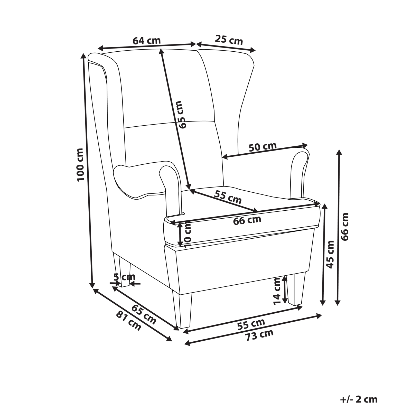 Fotoliu tapițat cu spătar înalt în stil retro. Cu un design atemporal și o nuanță neutră de bej, acest fotoliu aduce energie și stil oricărui colț al casei. Forma clasică wingback cu spătar înalt, cotiere rotunjite și șezut generos creează un loc plăcut pentru momentele tale de respiro. Se integrează perfect într-un dormitor modern, un living primitor sau în camera copilului, devenind rapid un punct de atracție. Așezat lângă o măsuță sau într-un colț luminos, îmbină armonios estetica și funcționalitatea. Detalii: Tip de Produs: Fotoliu cu spătar înalt. Stil: Retro. Culoare: Bej. Nuanță: Maro deschis. Material: Țesătură. Material primar: Velur. Material secundar: Lemn de cauciuc. Căptușeală: Spumă. Detalii material picioare: Lemn. Material scaun: Țesătură. Compoziția materialului: 92% Poliester. Stilul cotierei: Rotunjit. Cotiere: Da. Protecții pentru picioare incluse: Nu. Model: Culoare solidă. Reclinabil: Nu. Structura scaunului: Arcuri ondulate. Densitatea pernei scaunului: 30 kg/m3. Dimensiuni: Înălțimea cotierei: 66 cm. Adâncime: 65 cm. Grosimea scaunului: 10 cm. Înălțimea scaunului: 45 cm. Lățime: 64 cm. Înălțime: 100 cm. Suprafața de ședere: 66x55 cm. Greutate: 17 kg. Capacitatea de greutate: 100 kg. Oferta incude: 1 x Fotoliu. Caracteristici cheie: Scaun gros pentru confort maxim, Poziție de șezut relaxată, Stil retro, Culori calde și elegante, Excepțional de ușor de întreținut, Tapițerie din țesătură de înaltă calitate. Asamblare: Necesită asamblare completă.5-15 min. Informații suplimentare: Pentru o stabilitate și siguranță maximă în utilizare, se recomandă să verificați la aproximativ 2 săptămâni după instalare dacă produsul a fost asamblat corect. De asemenea, se recomandă să verificați dacă șuruburile sunt strânse corect, o dată la 3 luni. Sfaturi de întreținere: Velur: 1.Aspirati folosind un accesoriu potrivit. 2.Vă rugăm să curățați cu un șampon uscat și un burete umed sau cu un detergent ușor. Lemn de cauciuc: 1.Ștergeți imediat după curățare pentru a preveni acumularea apei pe produs. 2.Curățați cu un detergent delicat și o cârpă moale, urmând direcția fibrelor. 3.Pentru a păstra mobila finisată cu ulei în stare bună, este necesar să o ungeți cu ulei după un timp.