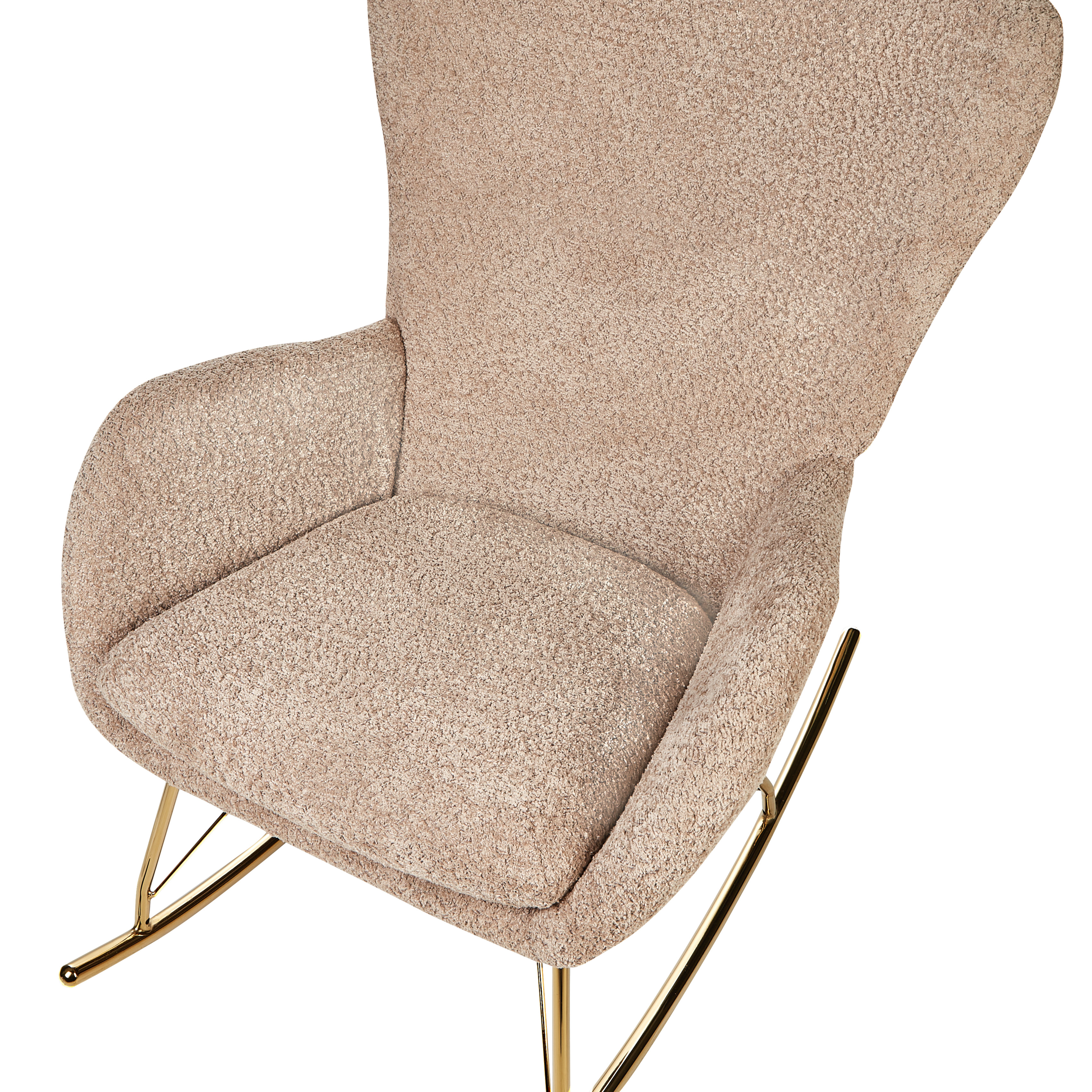 Balansoar modern din boucle. Transformă-ți spațiul cu acest fotoliu balansoar elegant, care aduce un aer de rafinament și căldură în orice încăpere. Confecționat din țesătură boucle de înaltă calitate, foarte moale și plăcută la atingere, este o alegere ideală pentru camera copilului, living sau dormitor. Durabil și ușor de întreținut, combină perfect nuanța bej nisipiu cu picioarele metalice aurii. Cu spătarul înalt și șezutul generos, devine partenerul ideal pentru momentele tale de relaxare după o zi lungă. Detalii: Tip de Produs: Fotoliu de relaxare. Stil: Retro. Culoare: Bej. Nuanță: Nisipiu. Material: Țesătură. Material primar: Boucle. Material secundar: Metal. Căptușeală: Spumă. Detalii material picioare: Metal. Material scaun: Boucle. Compoziția materialului: 100% Poliester. Stilul cotierei: Liniar. Cotiere: Da. Protecții pentru picioare incluse: Nu. Model: Culoare solidă. Reclinabil: Nu. Structura scaunului: Placaj. Densitatea pernei scaunului: 28 kg/m3. Dimensiuni: Înălțimea cotierei: 60 cm. Adâncime: 99 cm. Grosimea scaunului: 9 cm. Înălțimea scaunului: 42 cm. Lățime: 74 cm. Înălțime: 99 cm. Suprafața de ședere: 52x52 cm. Greutate: 14 kg. Capacitatea de greutate: 250 kg. Oferta incude: 1 x Balansoar. Caracteristici cheie: Funcție de legănare, Cotiere confortabile, Creează o atmosferă confortabilă, Se integrează practic cu orice stil de amenajare, Tapițerie din țesătură de înaltă calitate, Construcție robustă. Asamblare: Necesită asamblare completă.20-40 min. Informații suplimentare: Pentru o stabilitate și siguranță maximă în utilizare, se recomandă să verificați la aproximativ 2 săptămâni după instalare dacă produsul a fost asamblat corect. De asemenea, se recomandă să verificați dacă șuruburile sunt strânse corect, o dată la 3 luni. Sfaturi de întreținere: Boucle: 1.Aspirati folosind un accesoriu potrivit. 2.Vă rugăm să curățați cu un șampon uscat și un burete umed sau cu un detergent ușor. Metal: 1.Curățați cu un detergent delicat și o cârpă moale, apoi ștergeți bine. 2.Pentru elementele din cupru sau crom, folosiți un agent de lustruire. 3.Pentru a evita zgârieturile, nu folosiți produse de curățare abrazive.