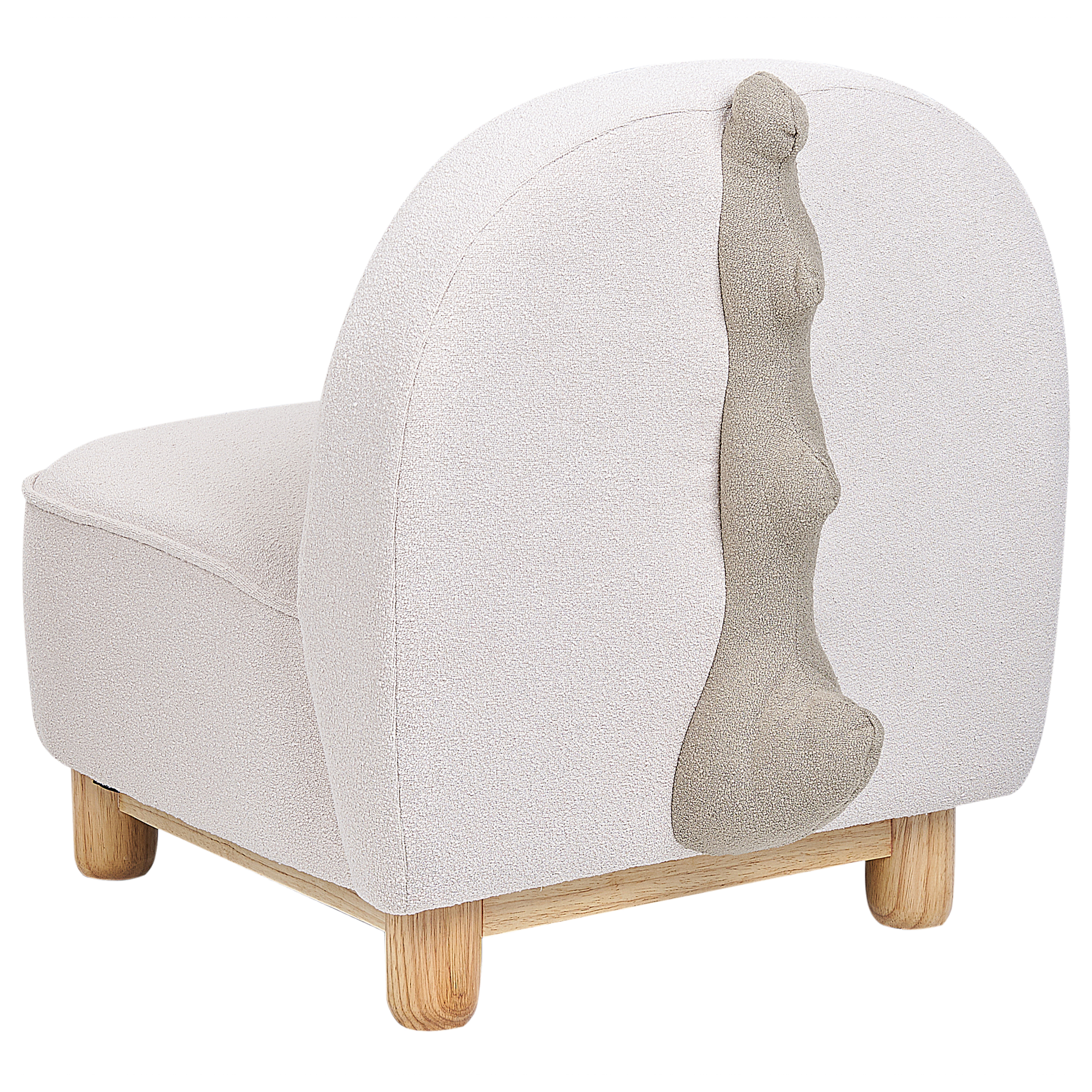 Scaun în formă de dinozaur pentru copii. Adaugă un strop de magie în camera micuțului tău cu acest scaun jucăuș, care nu doar reîmprospătează decorul, ci și stimulează creativitatea și imaginația. Cu un design inspirat de forma unui dinozaur, această piesă va deveni cu siguranță un prieten de joacă de nădejde. Tapițat cu poliester de înaltă calitate, moale și plăcut la atingere, oferă confort pentru ore întregi de citit, desenat sau joacă. Picioarele solide din lemn asigură stabilitate și siguranță, prevenind răsturnarea. Detalii: Tip de Produs: Fotoliu pentru copii. Stil: Modern. Culoare: Bej. Nuanță: Bej deschis. Material: Țesătură. Material primar: Țesătură. Material secundar: Lemn de cauciuc. Căptușeală: Spumă. Detalii material picioare: Lemn. Material scaun: Țesătură. Compoziția materialului: 100% Poliester. Stilul cotierei: Fără cotiere. Cotiere: Nu. Protecții pentru picioare incluse: Nu. Model: Culoare solidă. Reclinabil: Nu. Structura scaunului: Lemn. Densitatea pernei scaunului: 28 kg/m3. Dimensiuni: Adâncime: 47 cm. Grosimea scaunului: 21 cm. Înălțimea scaunului: 28 cm. Lățime: 50 cm. Înălțime: 56 cm. Suprafața de ședere: 50x36 cm. Greutate: 7 kg. Capacitatea de greutate: 80 kg. Oferta incude: 1 x Fotoliu. Caracteristici cheie: Incredibil de moale, Șezut lat, capitonat gros, Culori frumoase și vii, Conceput pentru a competa orice dormitor de copil, Materiale de cea mai bună calitate, Excepțional de ușor de întreținut. Asamblare: Nu necesită asamblare. Sfaturi de întreținere: Țesătură: 1.Aspirati folosind un accesoriu potrivit. 2.Vă rugăm să curățați cu un șampon uscat și un burete umed sau cu un detergent ușor. Lemn de cauciuc: 1.Ștergeți imediat după curățare pentru a preveni acumularea apei pe produs. 2.Curățați cu un detergent delicat și o cârpă moale, urmând direcția fibrelor. 3.Pentru a păstra mobila finisată cu ulei în stare bună, este necesar să o ungeți cu ulei după un timp.