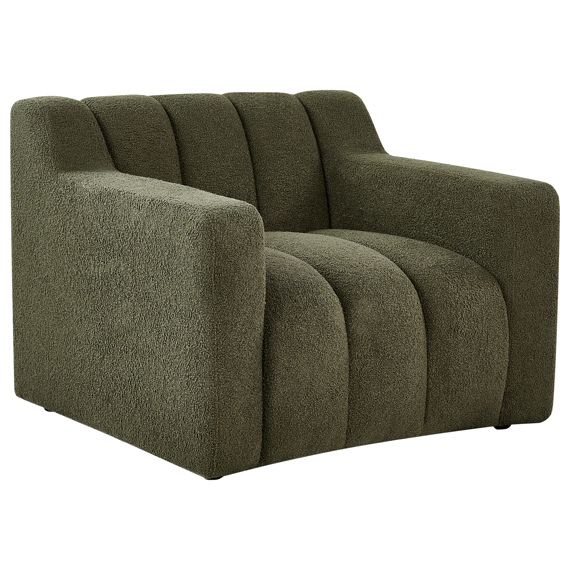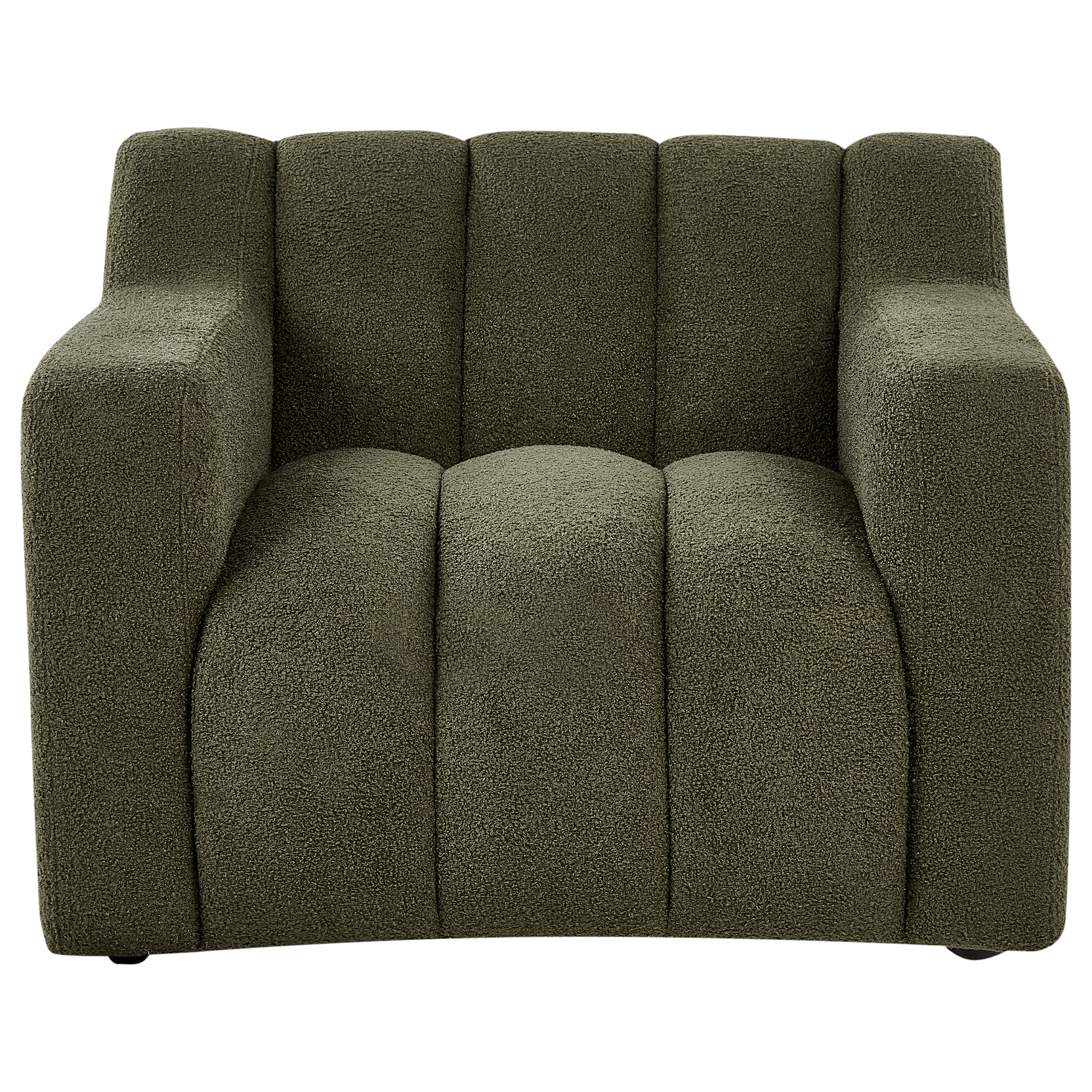 Fotoliu cu capitonaj în stil contemporan. Transformă-ți livingul cu acest fotoliu, care se potrivește perfect oricărui tip de decor. Designul său modern, cu țesătură boucle moale și texturată, adaugă un aer elegant încăperii, devenind rapid un element central. Scaunul adânc și cadrul solid asigură o relaxare de neprețuit, transformând fiecare moment de odihnă într-o experiență plăcută. Fie că îți dorești un loc pentru a te răsfăța cu o carte sau un obiect care să aducă stil, această piesă de mobilier îmbină perfect funcționalitatea cu estetica. Detalii: Tip de Produs: Fotoliu. Stil: Modern. Culoare: Verde. Nuanță: Verde închis. Material: Țesătură. Material primar: Boucle. Material secundar: Lemn de eucalipt. Căptușeală: Spumă. Detalii material picioare: Material sintetic. Material scaun: Țesătură. Compoziția materialului: 100% Poliester. Stilul cotierei: Liniar. Cotiere: Da. Protecții pentru picioare incluse: Nu. Model: Culoare solidă. Reclinabil: Nu. Structura scaunului: Lemn. Densitatea pernei scaunului: 28/24 kg/m3. Dimensiuni: Înălțimea cotierei: 54 cm. Adâncime: 87 cm. Grosimea scaunului: 37 cm. Înălțimea scaunului: 37 cm. Lățime: 97 cm. Înălțime: 73 cm. Suprafața de ședere: 63x64 cm. Greutate: 38 kg. Capacitatea de greutate: 150 kg. Oferta incude: 1 x Fotoliu. Caracteristici cheie: Scaun gros pentru confort maxim, Un loc excelent pentru relaxare, Confort maxim, Design modern, Tapițerie din țesătură de înaltă calitate. Asamblare: Picioare neasamblate.5-15 min. Sfaturi de întreținere: Boucle: 1.Vă rugăm să curățați cu un șampon uscat și un burete umed sau cu un detergent ușor. 2.Aspirati folosind un accesoriu potrivit.