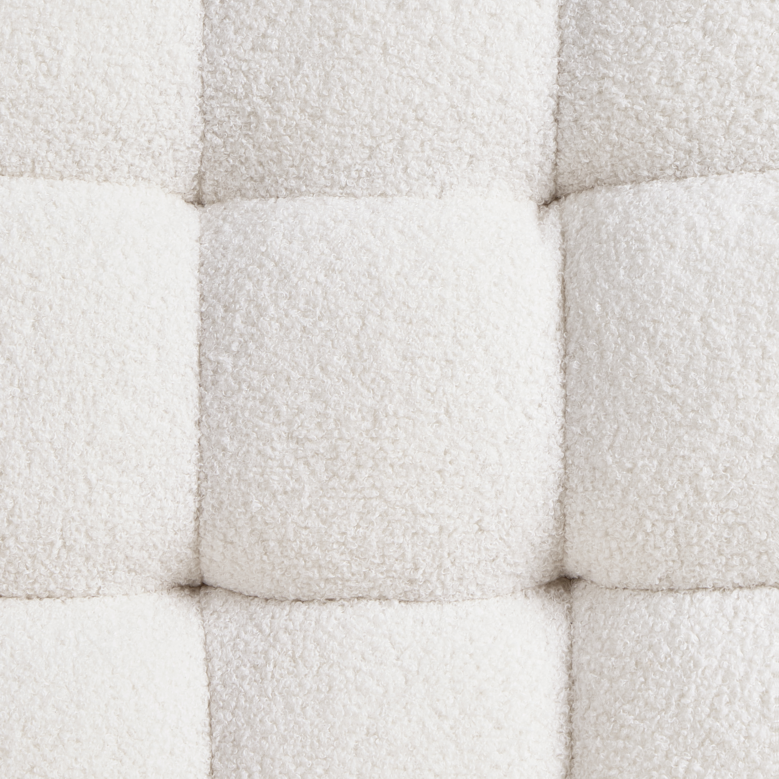 Fotoliu modern fără cotiere. Descoperiți combinația perfectă între confort și design cu acest fotoliu modern fără cotiere. Tapițat cu țesătură boucle delicată, se sprijină pe picioare metalice de fier, prevăzute cu capace pentru protejarea podelei. Pernele groase și luxoase, capitonate cu rafinament, creează o textură vizual interesantă. Șezutul ușor curbat se adaptează perfect formelor corpului, oferind o senzație de confort ergonomic. În plus, piesa este rezistentă și nu necesită îngrijire specială. Paleta sa subtilă de culori se potrivește perfect în orice decor de living. Detalii: Tip de Produs: Fotoliu. Stil: Modern. Culoare: Alb. Culoarea cadrului: Negru. Material: Țesătură. Material primar: Boucle. Material secundar: Fier. Căptușeală: Spumă. Detalii material picioare: Metal. Material scaun: Țesătură. Compoziția materialului: 100% Poliester. Stilul cotierei: Fără cotiere. Cotiere: Nu. Protecții pentru picioare incluse: Da. Model: Culoare solidă. Reclinabil: Nu. Structura scaunului: Lemn. Densitatea pernei scaunului: 28/18 kg/m3. Dimensiuni: Adâncime: 79 cm. Grosimea scaunului: 14 cm. Înălțimea scaunului: 40 cm. Lățime: 73 cm. Înălțime: 92 cm. Suprafața de ședere: 55x73 cm. Greutate: 14 kg. Capacitatea de greutate: 150 kg. Oferta incude: 1 x Fotoliu. Caracteristici cheie: Un loc excelent pentru relaxare, Picioare robuste pentru o stabilitate optimă, Ideal atât pentru dormitor, cât și pentru camera de zi, Materiale ușor de întreținut și durabile, Capace pentru picioare pentru protecția suprafeței. Asamblare: Picioare neasamblate.5-15 min. Informații suplimentare: Pentru o stabilitate și siguranță maximă în utilizare, se recomandă să verificați la aproximativ 2 săptămâni după instalare dacă produsul a fost asamblat corect. De asemenea, se recomandă să verificați dacă șuruburile sunt strânse corect, o dată la 3 luni. Sfaturi de întreținere: Boucle: 1.Aspirati folosind un accesoriu potrivit. 2.Vă rugăm să curățați cu un șampon uscat și un burete umed sau cu un detergent ușor. Fier: 1.Pentru a evita zgârieturile, nu folosiți produse de curățare abrazive. 2.Curățați cu un detergent delicat și o cârpă moale, apoi ștergeți bine. 3.Pentru elementele din cupru sau crom, folosiți un agent de lustruire.
