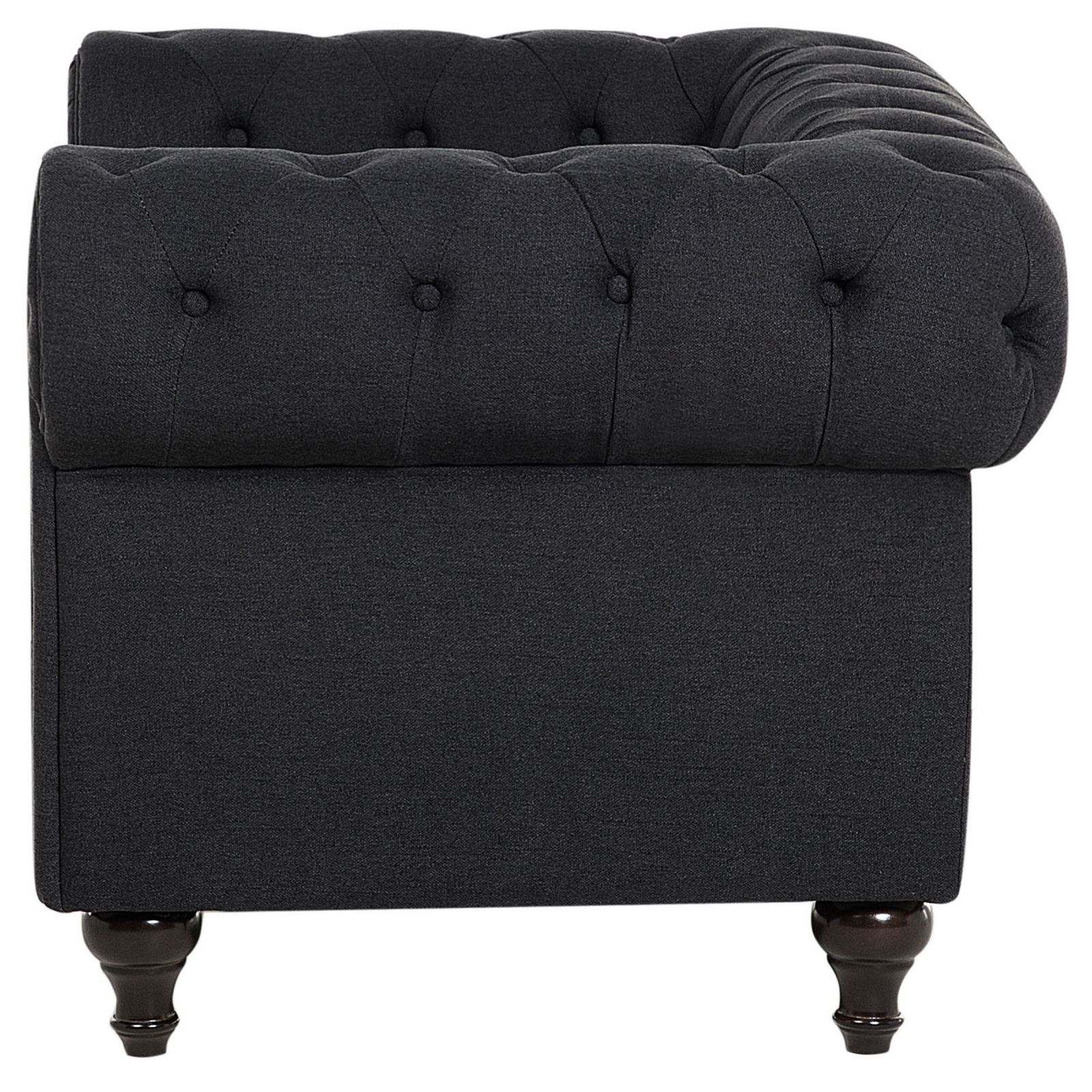 Fotoliu stil clasic. Cu o siluetă elegantă și brațe late în stil rulou, acest fotoliu Chesterfield aduce un plus de stil oricărui interior, fie modern, fie tradițional. Spătarul jos și pernele groase și moi asigură un confort de neegalat, iar tapițeria gri cu nasturi clasici în formă de diamant completează designul atemporal. Ușor de întreținut și ușor de asortat, acest fotoliu va fi cu siguranță o piesă de rezistență în casa ta. Detalii: Tip de Produs: Fotoliu. Stil: Glamour. Culoare: Gri. Nuanță: Gri grafit. Material: Țesătură. Material primar: Țesătură. Material secundar: Lemn de eucalipt. Căptușeală: Spumă. Detalii material picioare: Lemn. Material scaun: Țesătură. Compoziția materialului: 100% Poliester. Stilul cotierei: Rotunjit. Cotiere: Da. Protecții pentru picioare incluse: Da. Model: Culoare solidă. Reclinabil: Nu. Structura scaunului: Arcuri ondulate. Densitatea pernei scaunului: 24 kg/m3. Dimensiuni: Înălțimea cotierei: 70 cm. Adâncime: 75 cm. Grosimea scaunului: 15 cm. Înălțimea scaunului: 45 cm. Lățime: 110 cm. Înălțime: 70 cm. Suprafața de ședere: 60x55 cm. Greutate: 29 kg. Capacitatea de greutate: 136 kg. Oferta incude: 1 x Fotoliu. Caracteristici cheie: Scaun gros pentru confort maxim, Perfect pentru fiecare cameră, Stilul elegant tipic Chesterfield, Materiale de cea mai bună calitate, Tapițată complet. Asamblare: Picioare neasamblate.5-15 min. Informații suplimentare: Pentru o stabilitate și siguranță maximă în utilizare, se recomandă să verificați la aproximativ 2 săptămâni după instalare dacă produsul a fost asamblat corect. De asemenea, se recomandă să verificați dacă șuruburile sunt strânse corect, o dată la 3 luni. Sfaturi de întreținere: Țesătură: 1.Aspirati folosind un accesoriu potrivit. 2.Vă rugăm să curățați cu un șampon uscat și un burete umed sau cu un detergent ușor. Lemn de eucalipt: 1.Ștergeți imediat după curățare pentru a preveni acumularea apei pe produs. 2.Curățați cu un detergent delicat și o cârpă moale, urmând direcția fibrelor. 3.Pentru a păstra mobila finisată cu ulei în stare bună, este necesar să o ungeți cu ulei după un timp.