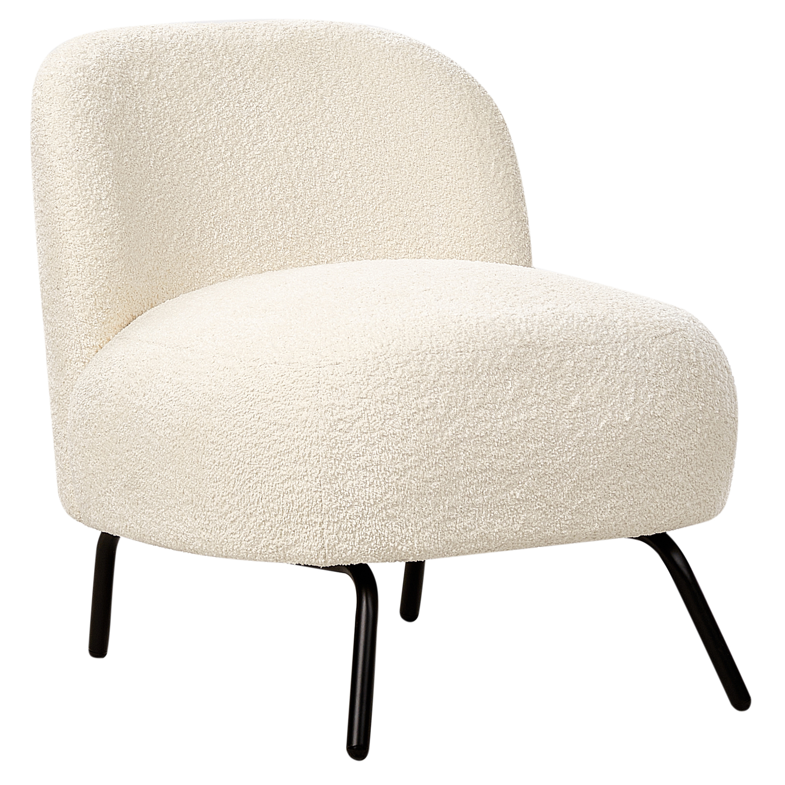 Fotoliu elegant. Conceput pentru confort, acest fotoliu încântător are un spătar curbat care oferă suport excelent și un spațiu primitor pentru relaxare. Designul său fără brațe creează o senzație de deschidere, fiind ideal pentru a te cuibări cu o carte bună sau pentru a savura o ceașcă de ceai. Țesătura boucle, cu textura sa distinctivă, adaugă un plus de rafinament, în timp ce picioarele din metal robust oferă o notă elegantă în stil retro. Este completarea perfectă pentru sufrageria ta, fie că dorești să creezi un colț de lectură confortabil sau o zonă de conversație cu stil. Detalii: Tip de Produs: Fotoliu. Stil: Retro. Culoare: Alb. Nuanță: Alb-murdar. Material: Țesătură. Material primar: Boucle. Material secundar: Fier. Căptușeală: Spumă. Detalii material picioare: Metal. Material scaun: Țesătură. Compoziția materialului: 100% Poliester. Stilul cotierei: Fără cotiere. Cotiere: Nu. Protecții pentru picioare incluse: Nu. Model: Culoare solidă. Reclinabil: Nu. Structura scaunului: Placaj. Densitatea pernei scaunului: 28 kg/m3. Dimensiuni: Adâncime: 70 cm. Grosimea scaunului: 20 cm. Înălțimea scaunului: 37 cm. Lățime: 62 cm. Înălțime: 67 cm. Suprafața de ședere: 62x51 cm. Greutate: 10 kg. Capacitatea de greutate: 200 kg. Oferta incude: 1 x Fotoliu. Caracteristici cheie: Un loc excelent pentru relaxare, Stil retro, Ideal atât pentru dormitor, cât și pentru camera de zi, Creează o atmosferă confortabilă, Construcție robustă. Asamblare: Necesită asamblare parțială.20-40 min. Informații suplimentare: Pentru o stabilitate și siguranță maximă în utilizare, se recomandă să verificați la aproximativ 2 săptămâni după instalare dacă produsul a fost asamblat corect. De asemenea, se recomandă să verificați dacă șuruburile sunt strânse corect, o dată la 3 luni. Sfaturi de întreținere: Boucle: 1.Aspirati folosind un accesoriu potrivit. 2.Vă rugăm să curățați cu un șampon uscat și un burete umed sau cu un detergent ușor. Fier: 1.Pentru a evita zgârieturile, nu folosiți produse de curățare abrazive. 2.Curățați cu un detergent delicat și o cârpă moale, apoi ștergeți bine. 3.Pentru elementele din cupru sau crom, folosiți un agent de lustruire.