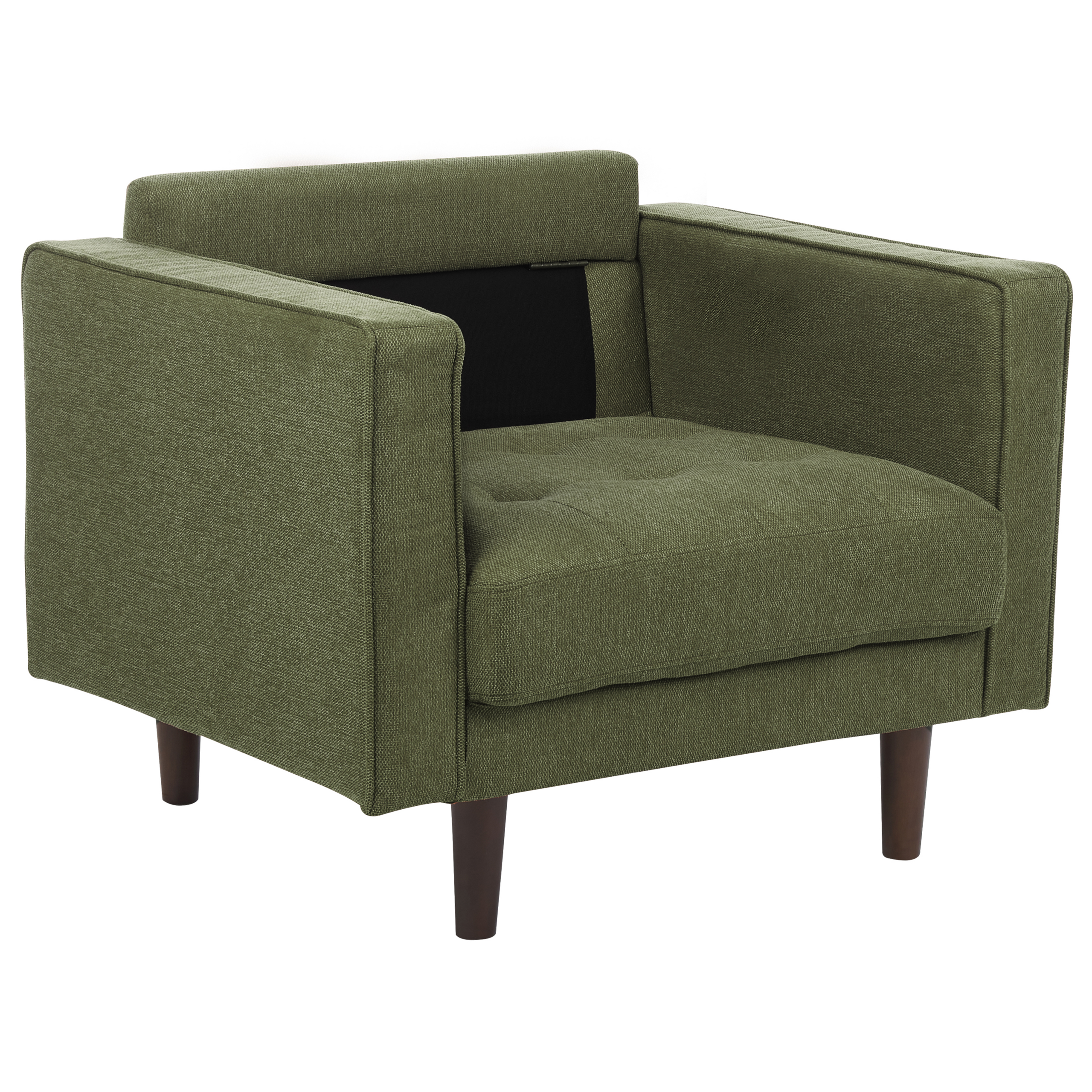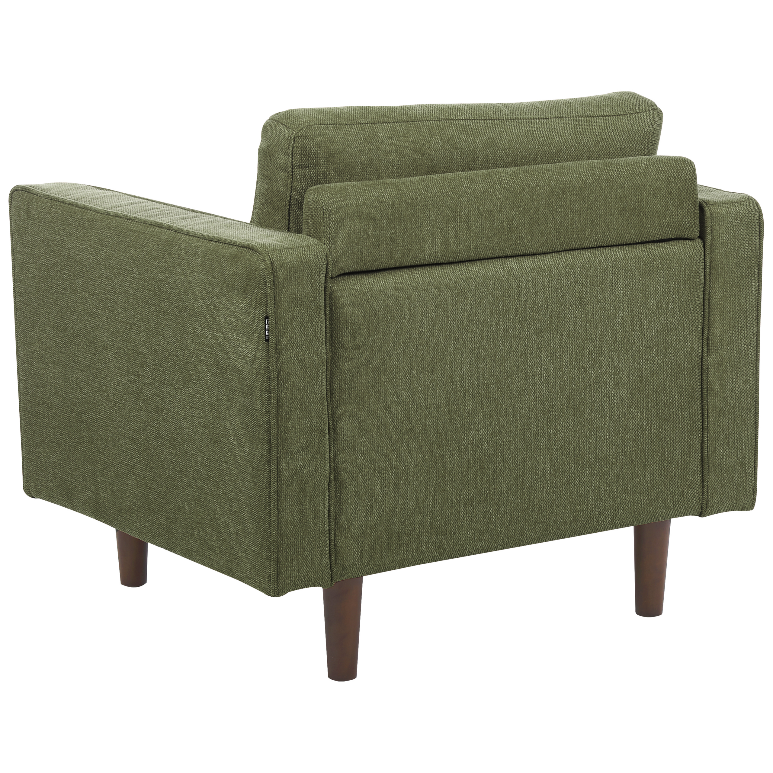 Fotoliu tapițat cu perne suplimentare. Revitalizează-ți spațiul de locuit cu acest fotoliu atemporal, ce îmbină un design retro vintage cu funcționalitatea modernă. Tapițat cu poliester de înaltă calitate și sprijinit de picioare din lemn de cauciuc, acest fotoliu nu doar că aduce un aer elegant, dar garantează și durabilitate și stabilitate pe termen lung. Cu un loc generos și confortabil, fiecare detaliu este gândit pentru a oferi o experiență plăcută. Asortează-l cu mobilier complementar pentru a crea un colț stilat și primitor în casa ta. Detalii: Tip de Produs: Fotoliu. Stil: Retro. Culoare: Verde. Nuanță: Verde închis. Material: Țesătură. Material primar: Țesătură. Material secundar: Lemn de eucalipt. Căptușeală: Spumă. Detalii material picioare: Lemn. Material scaun: Țesătură. Compoziția materialului: 100% Poliester. Stilul cotierei: Liniar. Cotiere: Da. Protecții pentru picioare incluse: Da. Model: Culoare solidă. Reclinabil: Nu. Structura scaunului: Curea elastică. Densitatea pernei scaunului: 22/28 kg/m3. Dimensiuni: Înălțimea cotierei: 64 cm. Adâncime: 74 cm. Grosimea scaunului: 19 cm. Înălțimea scaunului: 45 cm. Lățime: 86 cm. Înălțime: 78 cm. Suprafața de ședere: 50x65 cm. Greutate: 20 kg. Capacitatea de greutate: 120 kg. Oferta incude: 1 x Fotoliu, 2 x Pernă decorativă. Caracteristici cheie: Un loc excelent pentru relaxare, Scaun gros pentru confort maxim, Stil retro, Tapițerie din țesătură de înaltă calitate, Perne detașabile pentru o curățare ușoară. Asamblare: Picioare neasamblate.5-15 min. Informații suplimentare: Pentru o stabilitate și siguranță maximă în utilizare, se recomandă să verificați la aproximativ 2 săptămâni după instalare dacă produsul a fost asamblat corect. De asemenea, se recomandă să verificați dacă șuruburile sunt strânse corect, o dată la 3 luni. Sfaturi de întreținere: Țesătură: 1.Aspirati folosind un accesoriu potrivit. 2.Vă rugăm să curățați cu un șampon uscat și un burete umed sau cu un detergent ușor. Lemn de cauciuc: 1.Ștergeți imediat după curățare pentru a preveni acumularea apei pe produs. 2.Curățați cu un detergent delicat și o cârpă moale, urmând direcția fibrelor. 3.Pentru a păstra mobila finisată cu ulei în stare bună, este necesar să o ungeți cu ulei după un timp.