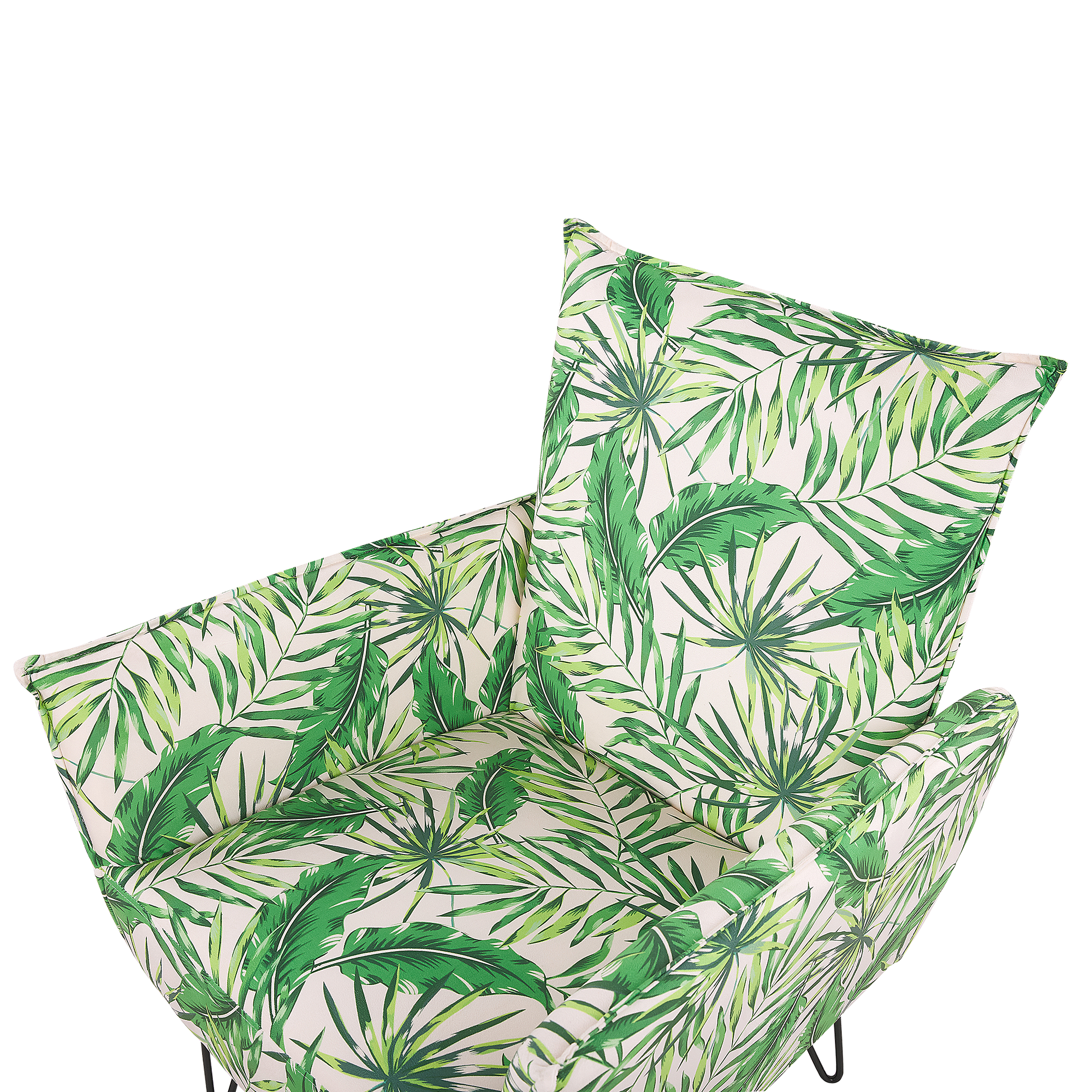 Fotoliu retro cu imprimeu de frunze. Reîmprospătează-ți livingul cu un fotoliu retro care îmbină eleganța și confortul într-un mod inconfundabil. Tapițeria cu un model vibrant de frunze aduce prospețime și un strop de naturalețe în spațiul tău, în timp ce picioarele metalice subțiri, dar stabile, îi conferă un aer modern și sofisticat. Forma clasică, cu spătar înalt și cotiere delicate, te invită să te așezi și să te lași cuprins de momentele de relaxare pe care le meriți. Detalii: Tip de Produs: Fotoliu. Stil: Retro. Culoare: Verde. Material: Țesătură. Material primar: Țesătură. Material secundar: Lemn de pin. Căptușeală: Spumă. Detalii material picioare: Metal. Material scaun: Țesătură. Compoziția materialului: 100% Poliester. Stilul cotierei: Liniar. Cotiere: Da. Protecții pentru picioare incluse: Nu. Model: Imprimeu cu plante. Reclinabil: Nu. Structura scaunului: Placaj. Densitatea pernei scaunului: 28 kg/m3. Dimensiuni: Înălțimea cotierei: 68 cm. Adâncime: 81 cm. Grosimea scaunului: 18 cm. Înălțimea scaunului: 44 cm. Lățime: 72 cm. Înălțime: 91 cm. Suprafața de ședere: 50x53 cm. Greutate: 14 kg. Capacitatea de greutate: 120 kg. Oferta incude: 1 x Fotoliu. Caracteristici cheie: Suprafață de șezut largă și confortabilă, Scaun gros pentru confort maxim, Perfect pentru fiecare cameră, Culori frumoase și vii, Materiale ușor de întreținut și durabile, Tapițată complet. Asamblare: Necesită asamblare completă.5-15 min. Informații suplimentare: Pentru o stabilitate și siguranță maximă în utilizare, se recomandă să verificați la aproximativ 2 săptămâni după instalare dacă produsul a fost asamblat corect. De asemenea, se recomandă să verificați dacă șuruburile sunt strânse corect, o dată la 3 luni. Sfaturi de întreținere: Țesătură: 1.Vă rugăm să curățați cu un șampon uscat și un burete umed sau cu un detergent ușor. 2.Aspirati folosind un accesoriu potrivit. Metal: 1.Pentru a evita zgârieturile, nu folosiți produse de curățare abrazive. 2.Curățați cu un detergent delicat și o cârpă moale, apoi ștergeți bine. 3.Pentru elementele din cupru sau crom, folosiți un agent de lustruire.