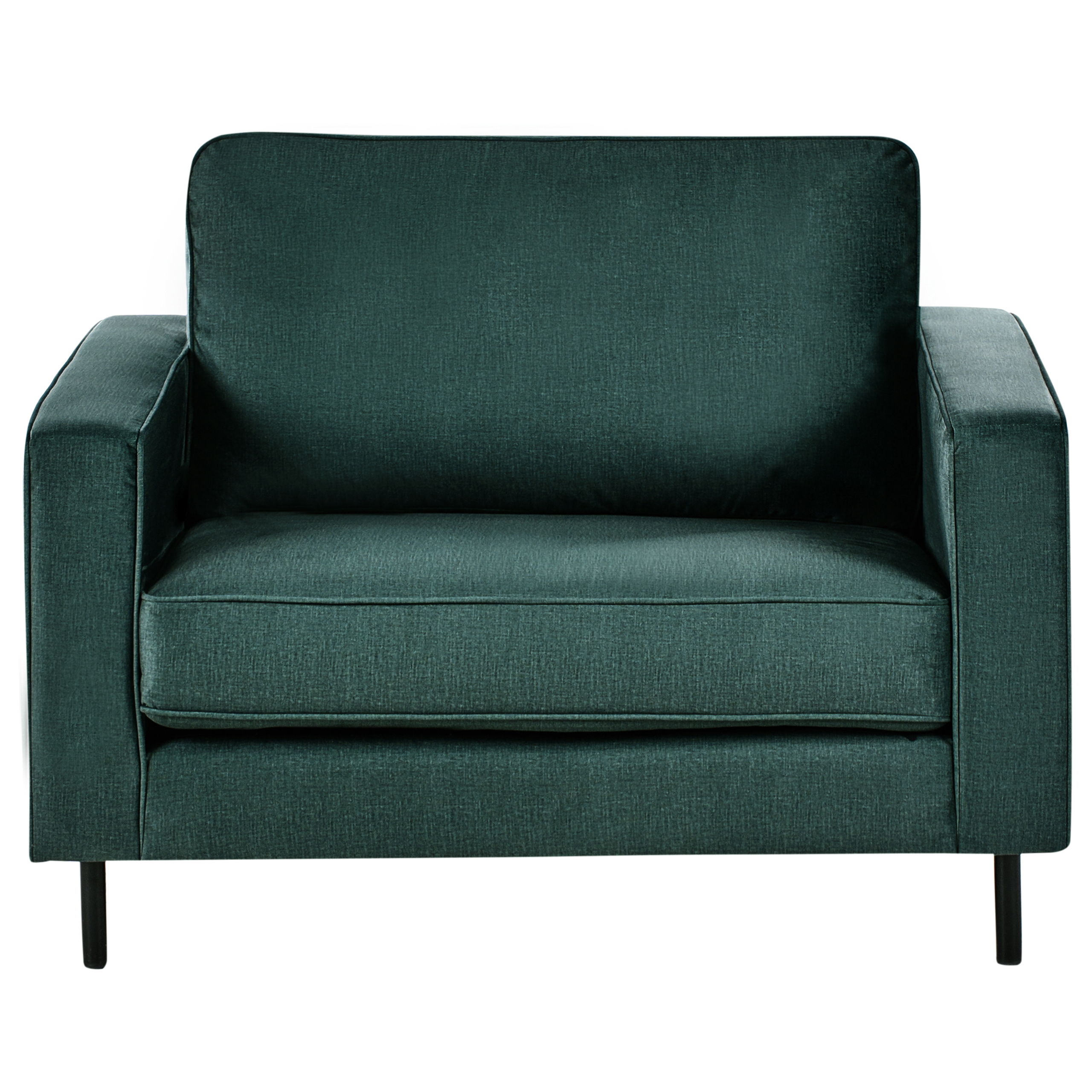 Fotoliu minimalist. Acest fotoliu este piesa perfectă pentru orice living, adăugând un plus de stil prin designul său atemporal. Cu o formă elegantă, linii bine definite și picioare metalice, este tapițat în catifea fină, oferind un aspect minimalist și elegant. Materialul plăcut la atingere și pernele de șezut generoase asigură confort maxim. Ideal pentru a aduce o notă de rafinament atât într-un decor clasic, cât și într-unul modern. Detalii: Tip de Produs: Fotoliu. Stil: Tradițional. Culoare: Verde. Nuanță: Verde închis. Material: Țesătură. Material primar: Catifea. Material secundar: Lemn de eucalipt. Căptușeală: Spumă. Detalii material picioare: Metal. Material scaun: Țesătură. Compoziția materialului: 100% Poliester. Stilul cotierei: Liniar. Cotiere: Da. Protecții pentru picioare incluse: Nu. Model: Culoare solidă. Reclinabil: Nu. Structura scaunului: Arcuri ondulate. Densitatea pernei scaunului: 24 kg/m3. Dimensiuni: Înălțimea cotierei: 63 cm. Adâncime: 91 cm. Înălțimea scaunului: 41 cm. Lățime: 117 cm. Înălțime: 87 cm. Suprafața de ședere: 90x56 cm. Greutate: 28 kg. Capacitatea de greutate: 100 kg. Oferta incude: 1 x Fotoliu. Caracteristici cheie: Atașare rapidă și ușoară a pernelor cu sistem de prindere Velcro, Scaun gros pentru confort maxim, Design mereu actualizat, Structură proiectată pentru a oferi stabilitate maximă, Finisajul rezistent la apă permite ca orice vărsare să rămână pe suprafață, Tapițată complet. Asamblare: Picioare neasamblate.5-15 min. Informații suplimentare: Pentru o stabilitate și siguranță maximă în utilizare, se recomandă să verificați la aproximativ 2 săptămâni după instalare dacă produsul a fost asamblat corect. De asemenea, se recomandă să verificați dacă șuruburile sunt strânse corect, o dată la 3 luni. Rețineți că țesătura de catifea poate avea un aspect puțin diferit atunci când este expusă la lumină; tinde să fie mai strălucitoare și mai luminoasă în lumina soarelui, în timp ce în lumină artificială are un ton diferit, mai închis. Datorită tipului de țesătură, tonul catifelei poate varia, de asemenea, atunci când este atinsă din direcții diferite. Pentru a uniformiza culoarea și a scăpa de lovituri și cute, materialul trebuie mângâiat cu palma deschisă într-o singură direcție, frecat cu o cârpă umedă sau călcat cu abur. Sfaturi de întreținere: Catifea: 1.Aspirati folosind un accesoriu potrivit. 2.Vă rugăm să curățați cu un șampon uscat și un burete umed sau cu un detergent ușor. Fier: 1.Curățați cu un detergent delicat și o cârpă moale, apoi ștergeți bine. 2.Pentru elementele din cupru sau crom, folosiți un agent de lustruire. 3.Pentru a evita zgârieturile, nu folosiți produse de curățare abrazive.