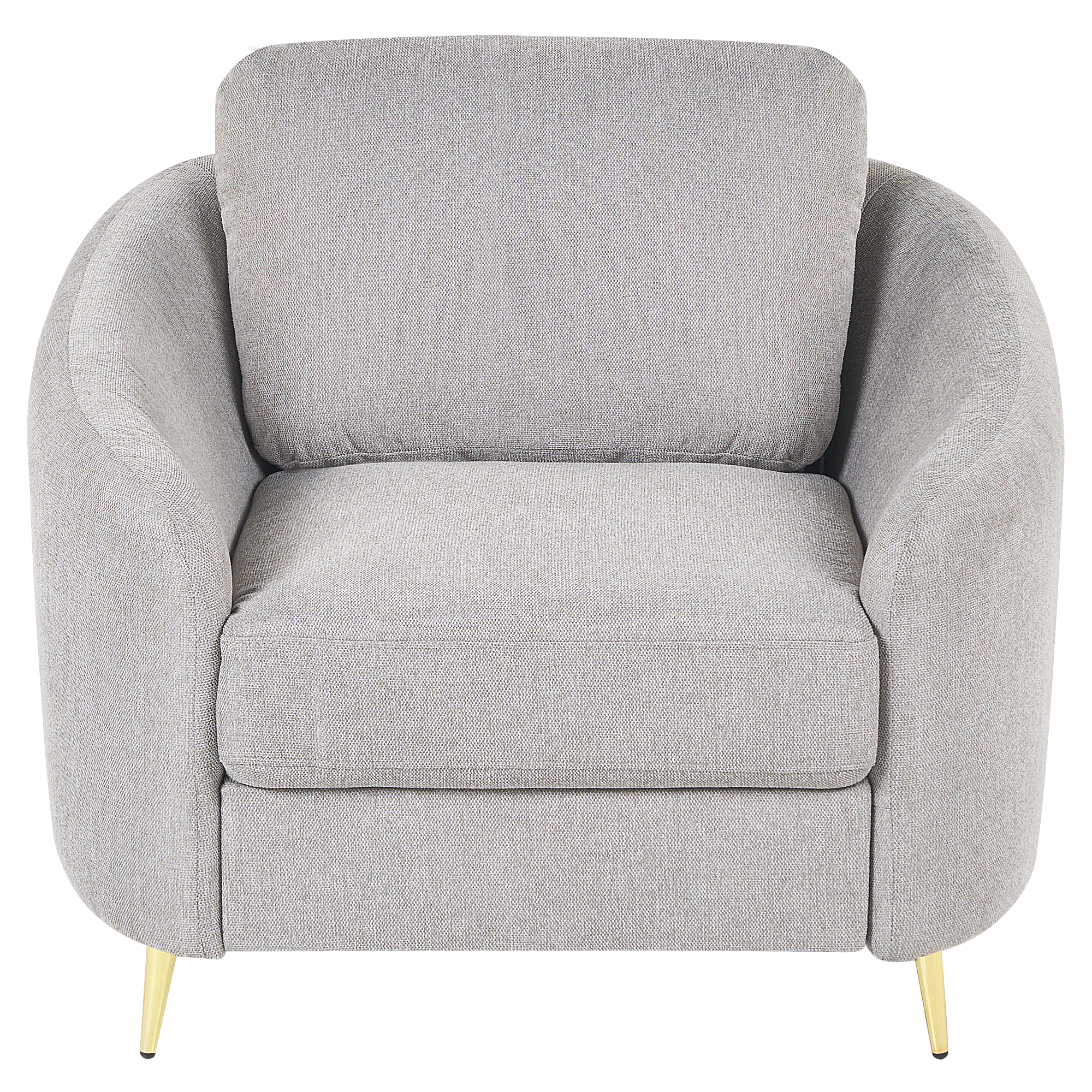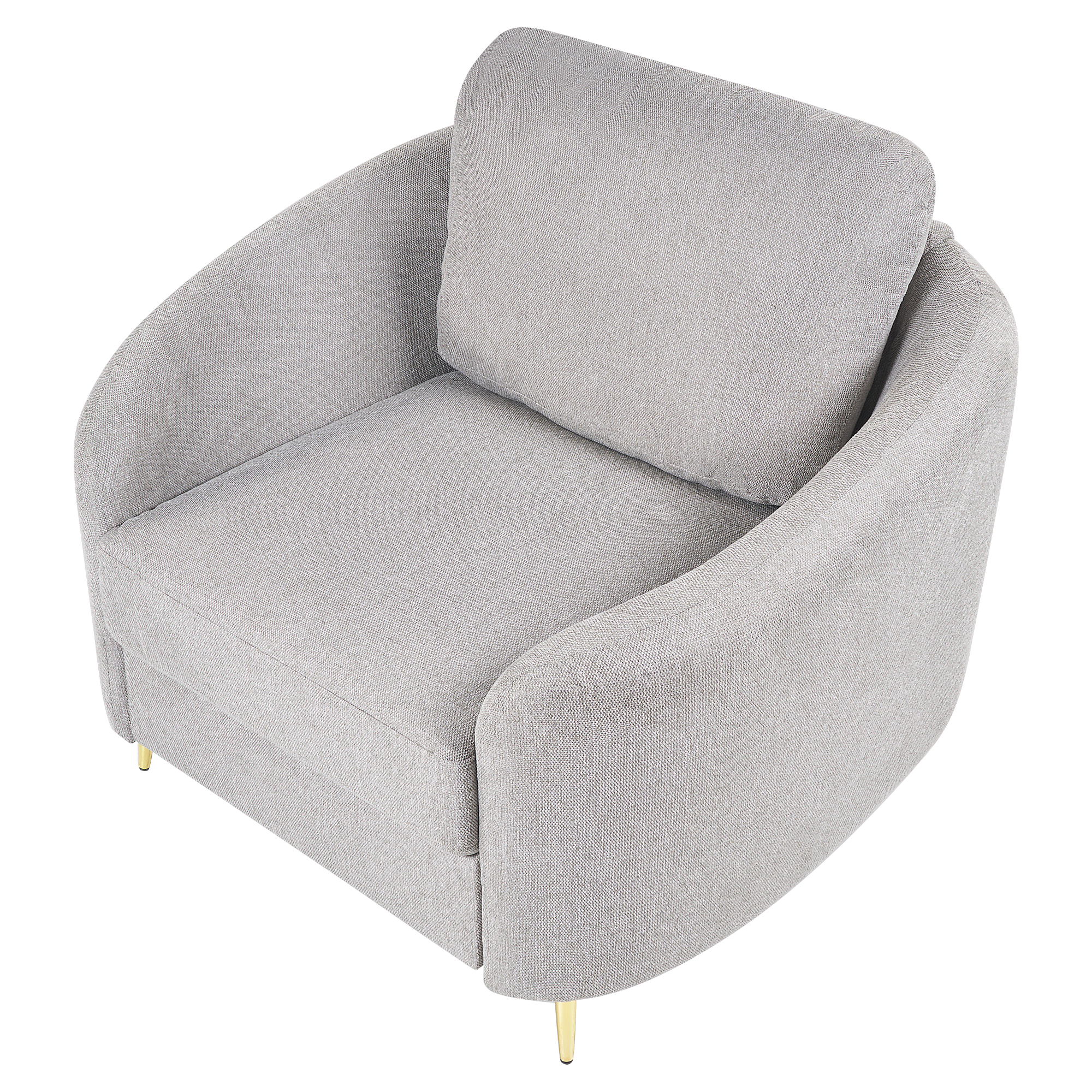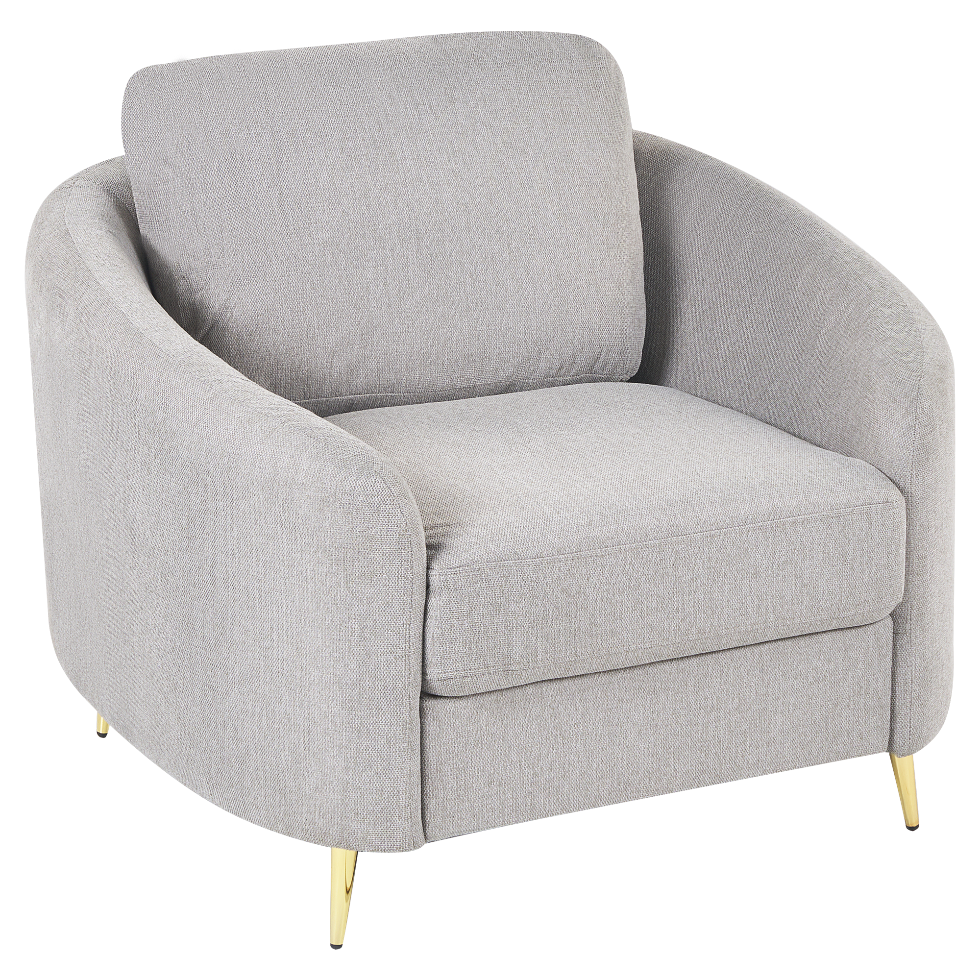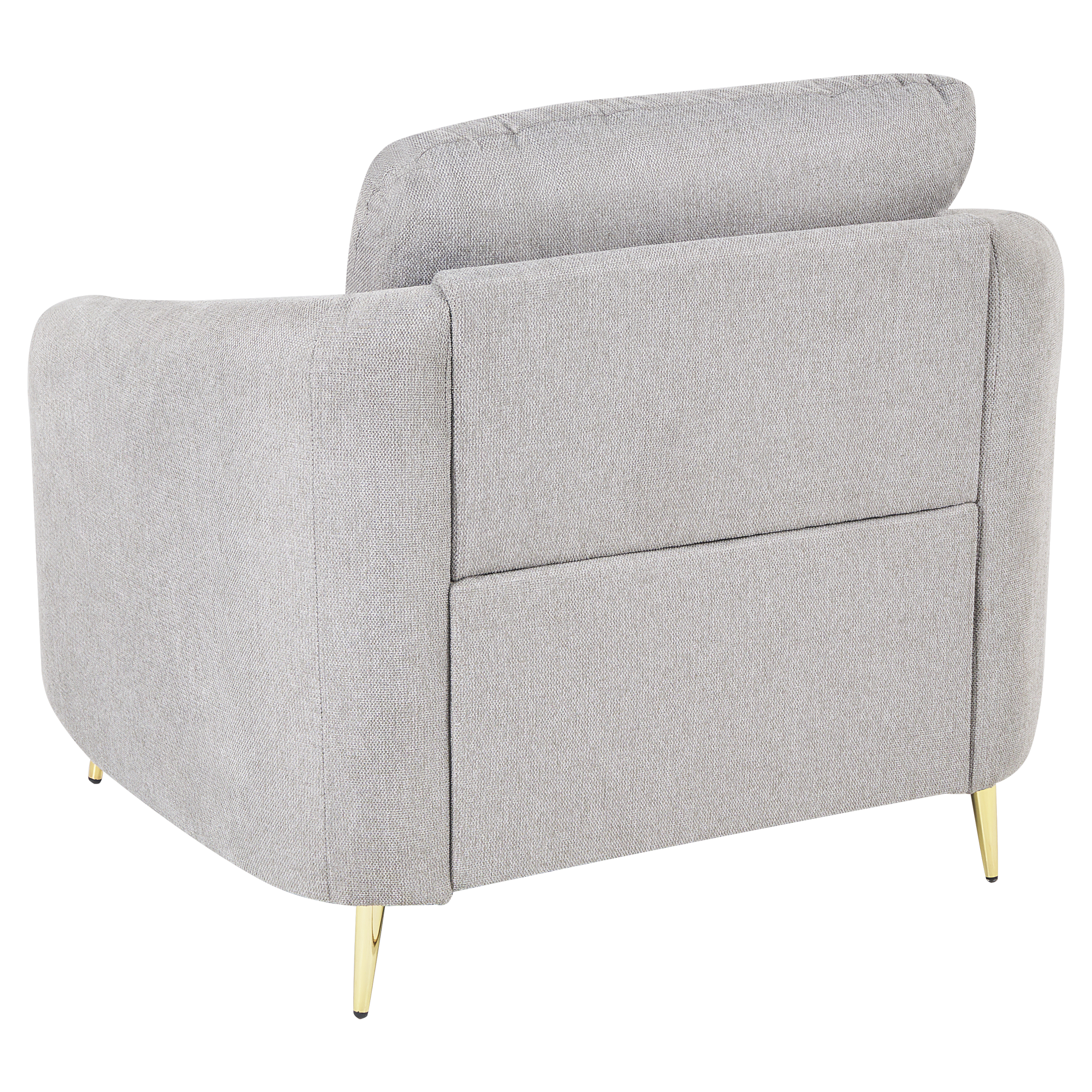 Fotoliu în stil glamour. Relaxează-te într-un fotoliu deosebit, cu o formă curbată, ce va transforma orice spațiu într-un refugiu confortabil. Scaunul gros, cu perne și spătarul moale asigură un confort ridicat. Picioarele metalice pun în valoare culoarea unică a tapițeriei și adaugă o notă de eleganță întregului design. Detalii: Tip de Produs: Fotoliu. Stil: Tradițional. Culoare: Gri. Nuanță: Gri deschis. Material: Țesătură. Material primar: Țesătură. Material secundar: Placaj. Căptușeală: Spumă. Detalii material picioare: Metal. Material scaun: Țesătură. Compoziția materialului: 100% Poliester. Stilul cotierei: Curbat. Cotiere: Da. Protecții pentru picioare incluse: Da. Model: Culoare solidă. Reclinabil: Nu. Structura scaunului: Arcuri ondulate. Densitatea pernei scaunului: 30 kg/m3. Dimensiuni: Înălțimea cotierei: 55 cm. Adâncime: 86 cm. Grosimea scaunului: 18 cm. Înălțimea scaunului: 47 cm. Lățime: 99 cm. Înălțime: 88 cm. Suprafața de ședere: 65x53 cm. Greutate: 26 kg. Capacitatea de greutate: 100 kg. Oferta incude: 1 x Fotoliu. Caracteristici cheie: Confort maxim, Se integrează practic cu orice stil de amenajare, Culori elegante și la modă, Tapițerie din țesătură de înaltă calitate, Ușor de curățat. Asamblare: Necesită asamblare parțială.5-15 min. Informații suplimentare: Pentru o stabilitate și siguranță maximă în utilizare, se recomandă să verificați la aproximativ 2 săptămâni după instalare dacă produsul a fost asamblat corect. De asemenea, se recomandă să verificați dacă șuruburile sunt strânse corect, o dată la 3 luni. Sfaturi de întreținere: Țesătură: 1.Aspirati folosind un accesoriu potrivit. 2.Vă rugăm să curățați cu un șampon uscat și un burete umed sau cu un detergent ușor. Metal: 1.Pentru elementele din cupru sau crom, folosiți un agent de lustruire. 2.Pentru a evita zgârieturile, nu folosiți produse de curățare abrazive. 3.Curățați cu un detergent delicat și o cârpă moale, apoi ștergeți bine.