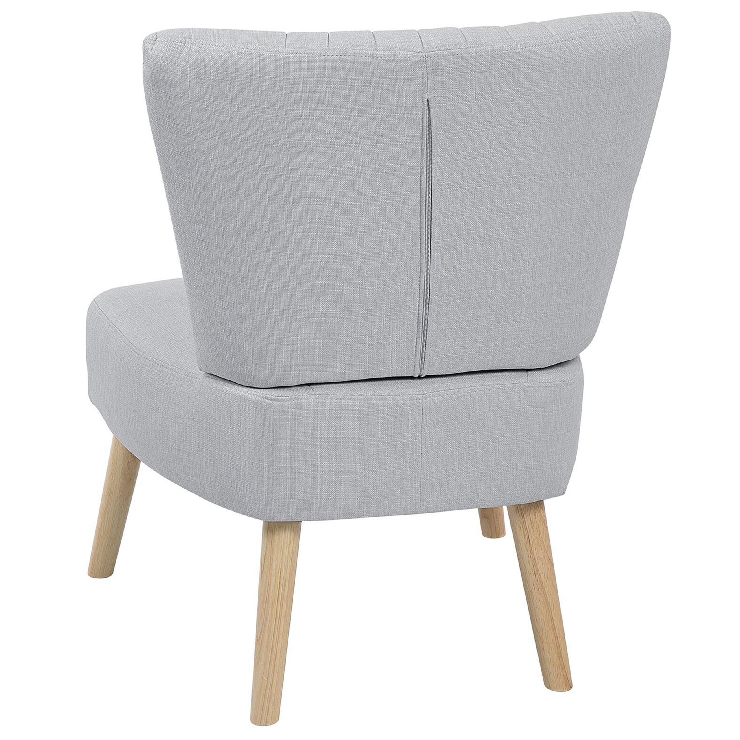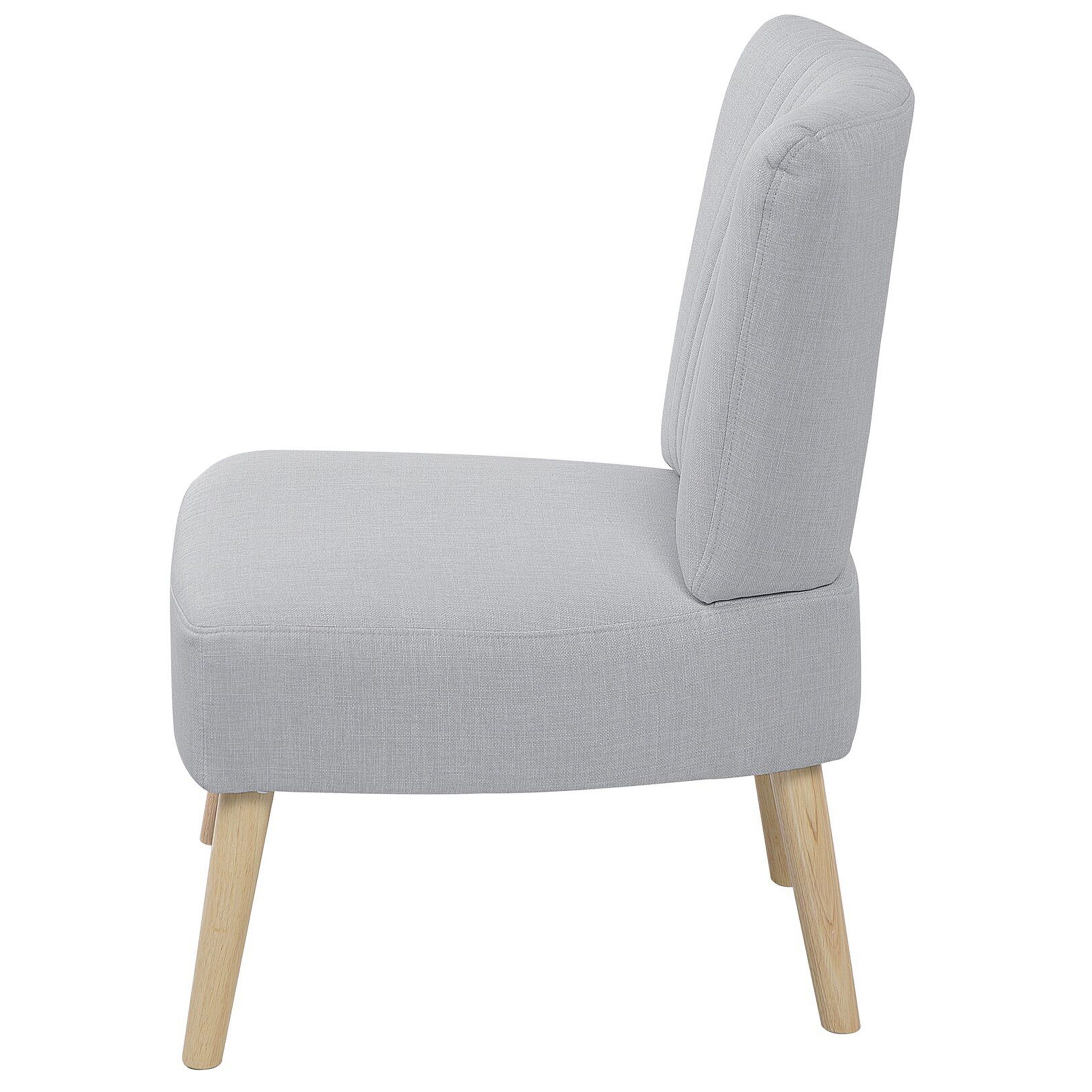 Fotoliu elegant fără cotiere. Descoperă eleganța discretă a acestui fotoliu cu design minimalist, perfect pentru a aduce un plus de rafinament oricărui spațiu din casa ta. Fără brațe și cu picioare scurte, acest model deschis te invită să te relaxezi într-un mod natural și confortabil. Tapițeria din țesătură gri, fină și plăcută la atingere, decorată cu detalii verticale, adaugă o notă de sofisticare, iar structura solidă îi oferă stabilitate și durabilitate. Detalii: Tip de Produs: Fotoliu. Stil: Modern. Culoare: Gri. Nuanță: Gri deschis. Material: Țesătură. Material primar: Țesătură. Material secundar: Lemn de cauciuc. Căptușeală: Spumă. Detalii material picioare: Lemn. Material scaun: Țesătură. Compoziția materialului: 100% Poliester. Stilul cotierei: Fără cotiere. Cotiere: Nu. Protecții pentru picioare incluse: Da. Model: Culoare solidă. Reclinabil: Nu. Structura scaunului: Curea elastică. Densitatea pernei scaunului: 24 kg/m3. Dimensiuni: Adâncime: 60 cm. Grosimea scaunului: 15 cm. Înălțimea scaunului: 40 cm. Lățime: 61 cm. Înălțime: 85 cm. Suprafața de ședere: 60x50 cm. Greutate: 11 kg. Capacitatea de greutate: 150 kg. Oferta incude: 1 x Fotoliu. Caracteristici cheie: Picioare robuste pentru o stabilitate optimă, Scaun gros pentru confort maxim, Design clasic, Cu o țesătură decorativă verticală, Tapițată complet, Capace pentru picioare pentru protecția suprafeței. Asamblare: Necesită asamblare parțială.5-15 min. Informații suplimentare: Pentru o stabilitate și siguranță maximă în utilizare, se recomandă să verificați la aproximativ 2 săptămâni după instalare dacă produsul a fost asamblat corect. De asemenea, se recomandă să verificați dacă șuruburile sunt strânse corect, o dată la 3 luni. Sfaturi de întreținere: Țesătură: 1.Vă rugăm să curățați cu un șampon uscat și un burete umed sau cu un detergent ușor. 2.Aspirati folosind un accesoriu potrivit. Lemn de cauciuc: 1.Curățați cu un detergent delicat și o cârpă moale, urmând direcția fibrelor. 2.Pentru a păstra mobila finisată cu ulei în stare bună, este necesar să o ungeți cu ulei după un timp. 3.Ștergeți imediat după curățare pentru a preveni acumularea apei pe produs.