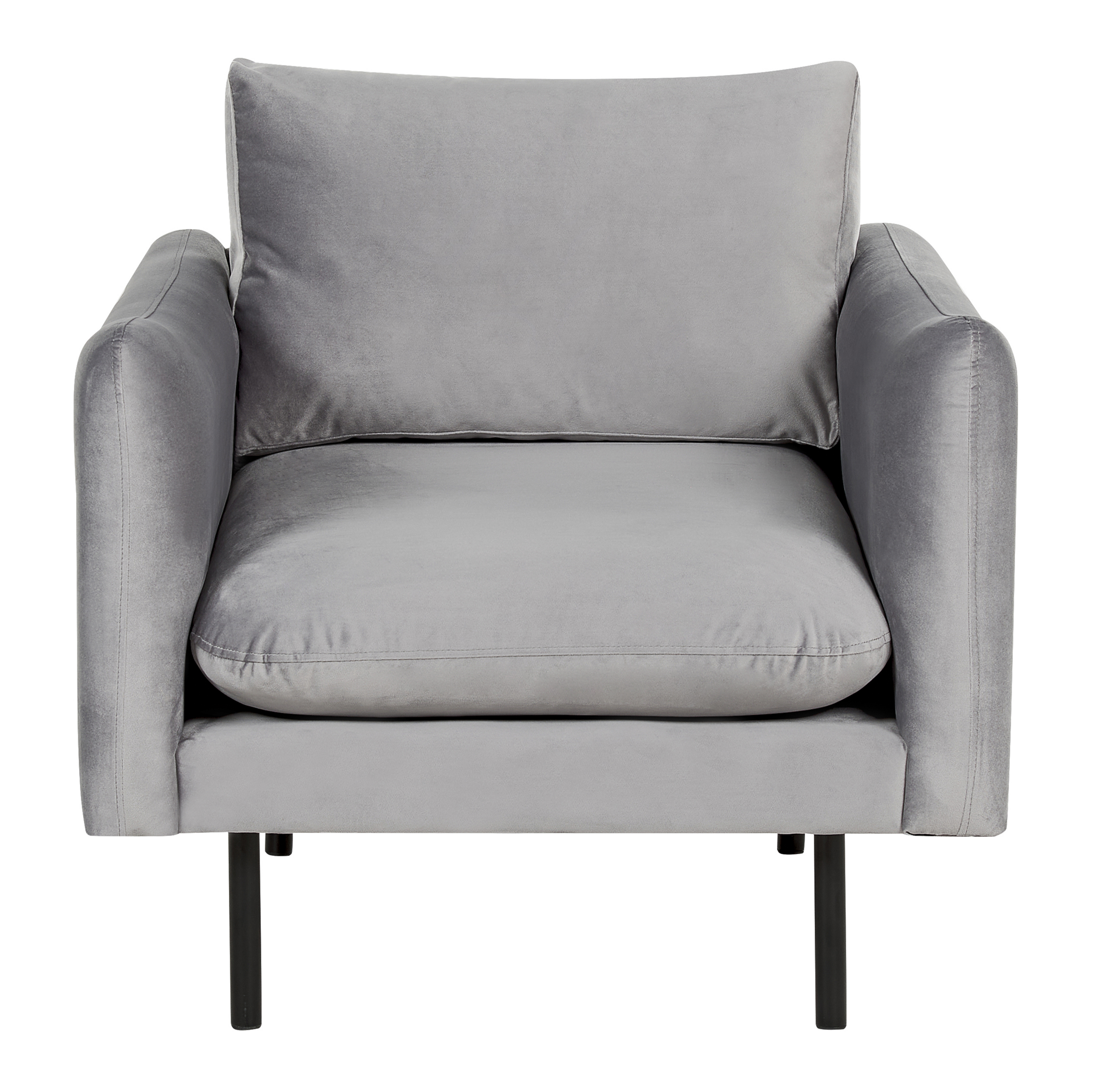 Fotoliu confortabil în stil glam. Acest fotoliu transformă orice living într-un spațiu perfect pentru relaxare și răsfăț. Cu perne generoase, bine căptușite, oferă confort maxim și suficient loc pentru a-ți întinde picioarele și a te bucura de cartea ta preferată. Șezutul are o structură solidă din lemn, care asigură stabilitate, iar tapițeria din catifea moale adaugă un plus de eleganță prin luciul său distinctiv. Indiferent dacă îl alegi pentru un decor modern, clasic sau industrial, devine rapid piesa de rezistență a oricărui interior. Detalii: Tip de Produs: Fotoliu. Stil: Modern. Culoare: Gri. Material: Țesătură. Material primar: Catifea. Material secundar: Aluminiu. Căptușeală: Spumă. Detalii material picioare: Metal. Material scaun: Țesătură. Compoziția materialului: 100% Poliester. Stilul cotierei: Liniar. Cotiere: Da. Protecții pentru picioare incluse: Da. Model: Culoare solidă. Reclinabil: Nu. Structura scaunului: Arcuri ondulate. Densitatea pernei scaunului: 50 kg/m3. Dimensiuni: Înălțimea cotierei: 62 cm. Adâncime: 84 cm. Grosimea scaunului: 16 cm. Înălțimea scaunului: 44 cm. Lățime: 83 cm. Înălțime: 86 cm. Suprafața de ședere: 60x60 cm. Greutate: 25 kg. Capacitatea de greutate: 120 kg. Oferta incude: 1 x Fotoliu. Caracteristici cheie: Scaun gros pentru confort maxim, Adaugă o notă de stil în orice cameră, Țesătură de catifea netedă și mătăsoasă, Structură proiectată pentru a oferi stabilitate maximă, Capace pentru picioare pentru protecția suprafeței. Asamblare: Picioare neasamblate.5-15 min. Informații suplimentare: Pentru o stabilitate și siguranță maximă în utilizare, se recomandă să verificați la aproximativ 2 săptămâni după instalare dacă produsul a fost asamblat corect. De asemenea, se recomandă să verificați dacă șuruburile sunt strânse corect, o dată la 3 luni. Pentru a facilita transportul, picioarele au fost plasate într-un buzunar sub scaun. Rețineți că țesătura de catifea poate avea un aspect puțin diferit atunci când este expusă la lumină; tinde să fie mai strălucitoare și mai luminoasă în lumina soarelui, în timp ce în lumină artificială are un ton diferit, mai închis. Datorită tipului de țesătură, tonul catifelei poate varia, de asemenea, atunci când este atinsă din direcții diferite. Pentru a uniformiza culoarea și a scăpa de lovituri și cute, materialul trebuie mângâiat cu palma deschisă într-o singură direcție, frecat cu o cârpă umedă sau călcat cu abur. Sfaturi de întreținere: Catifea: 1.Aspirati folosind un accesoriu potrivit. 2.Vă rugăm să curățați cu un șampon uscat și un burete umed sau cu un detergent ușor. Aluminiu: 1.Pentru a evita zgârieturile, nu folosiți produse de curățare abrazive. 2.Curățați cu un detergent delicat și o cârpă moale, apoi ștergeți bine. 3.Pentru elementele din cupru sau crom, folosiți un agent de lustruire.