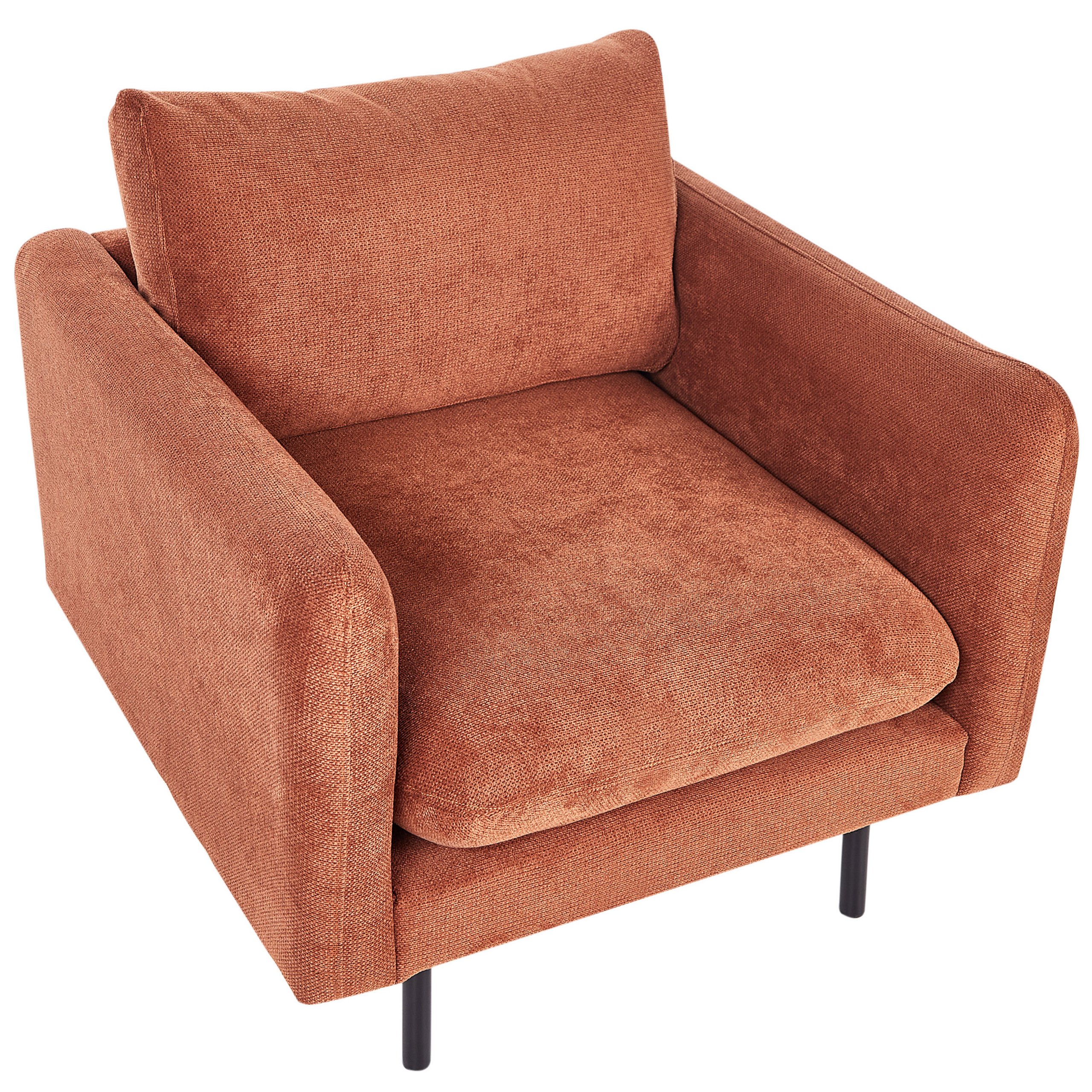 Fotoliu confortabil în stil glam. Acest fotoliu transformă orice living într-un spațiu perfect pentru relaxare și răsfăț. Cu perne generoase, bine căptușite, oferă confort maxim și suficient loc pentru a-ți întinde picioarele și a te bucura de cartea ta preferată. Șezutul are o structură solidă din lemn, care asigură stabilitate, iar tapițeria din chenille moale adaugă un plus de eleganță prin luciul său distinctiv. Indiferent dacă îl alegi pentru un decor modern, clasic sau industrial, devine rapid piesa de rezistență a oricărui interior. Detalii: Tip de Produs: Fotoliu. Stil: Modern. Culoare: Maro. Nuanță: Maro auriu. Material: Țesătură. Material primar: Chenille. Material secundar: Aluminiu. Căptușeală: Spumă. Detalii material picioare: Metal. Material scaun: Țesătură. Compoziția materialului: 100% Poliester. Stilul cotierei: Liniar. Cotiere: Da. Protecții pentru picioare incluse: Da. Model: Culoare solidă. Reclinabil: Nu. Structura scaunului: Arcuri ondulate. Densitatea pernei scaunului: 50 kg/m3. Dimensiuni: Înălțimea cotierei: 62 cm. Adâncime: 84 cm. Grosimea scaunului: 16 cm. Înălțimea scaunului: 44 cm. Lățime: 83 cm. Înălțime: 86 cm. Suprafața de ședere: 60x60 cm. Greutate: 25 kg. Capacitatea de greutate: 120 kg. Oferta incude: 1 x Fotoliu. Caracteristici cheie: Scaun gros pentru confort maxim, Adaugă o notă de stil în orice cameră, Structură proiectată pentru a oferi stabilitate maximă, Materiale de cea mai bună calitate, Capace pentru picioare pentru protecția suprafeței. Asamblare: Picioare neasamblate.5-15 min. Informații suplimentare: Pentru o stabilitate și siguranță maximă în utilizare, se recomandă să verificați la aproximativ 2 săptămâni după instalare dacă produsul a fost asamblat corect. De asemenea, se recomandă să verificați dacă șuruburile sunt strânse corect, o dată la 3 luni. Pentru a facilita transportul, picioarele au fost plasate într-un buzunar sub scaun. Sfaturi de întreținere: Chenille: 1.Aspirati folosind un accesoriu potrivit. 2.Vă rugăm să curățați cu un șampon uscat și un burete umed sau cu un detergent ușor. Aluminiu: 1.Pentru a evita zgârieturile, nu folosiți produse de curățare abrazive. 2.Curățați cu un detergent delicat și o cârpă moale, apoi ștergeți bine. 3.Pentru elementele din cupru sau crom, folosiți un agent de lustruire.